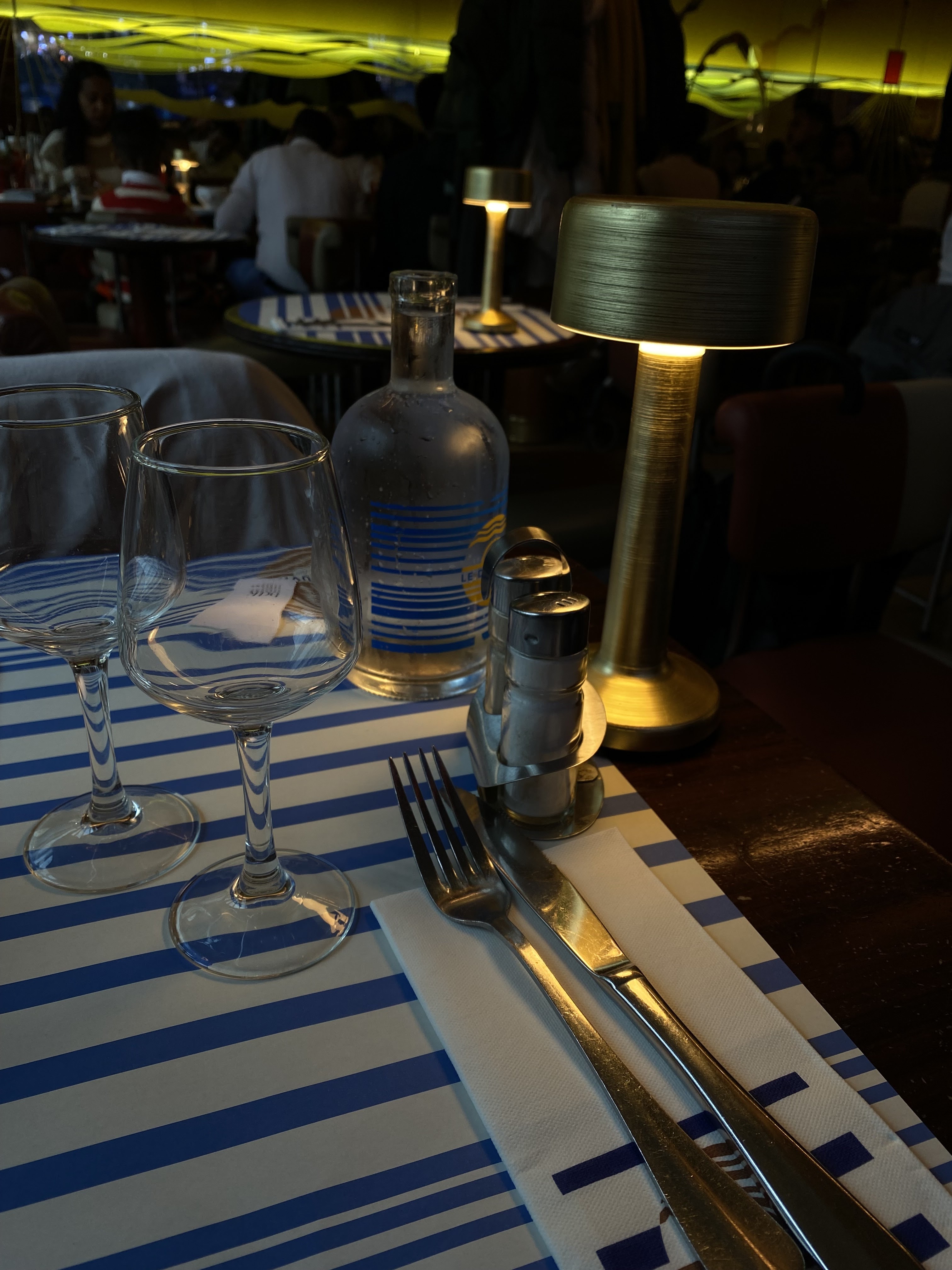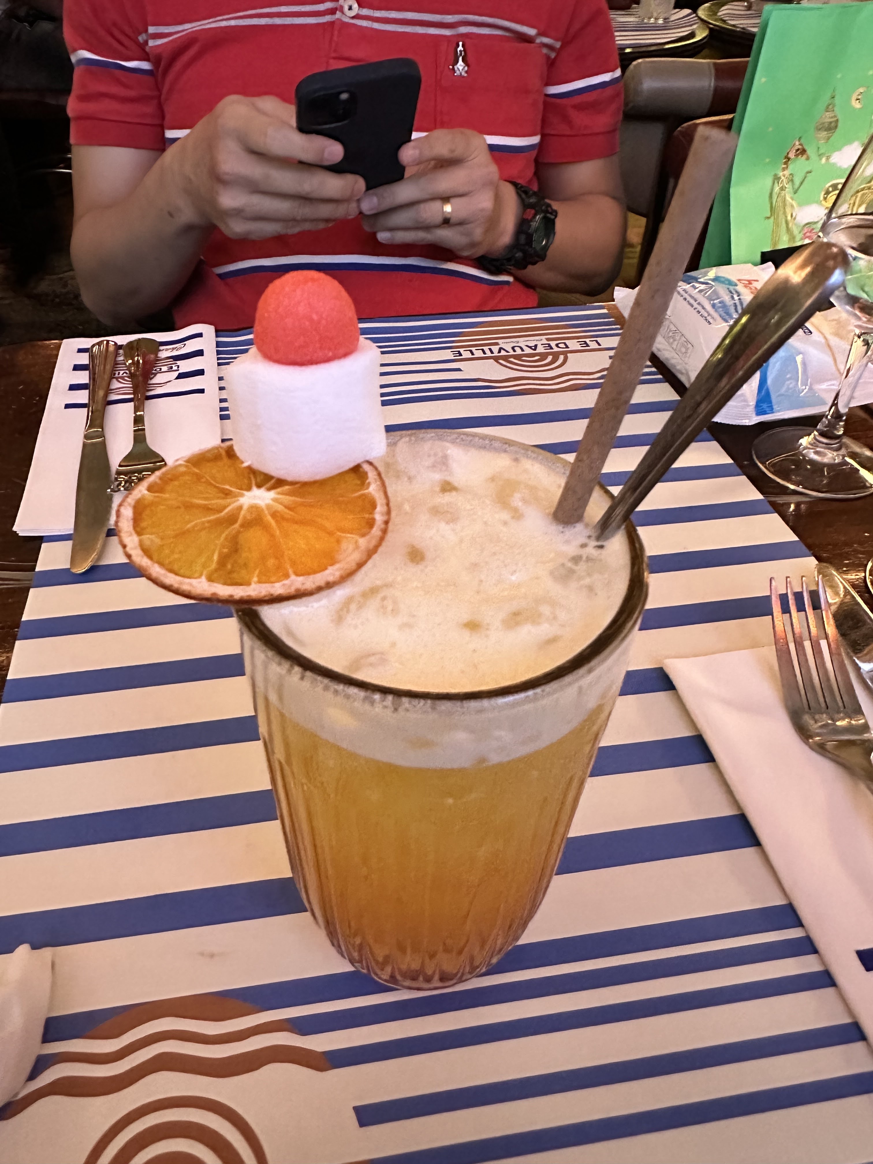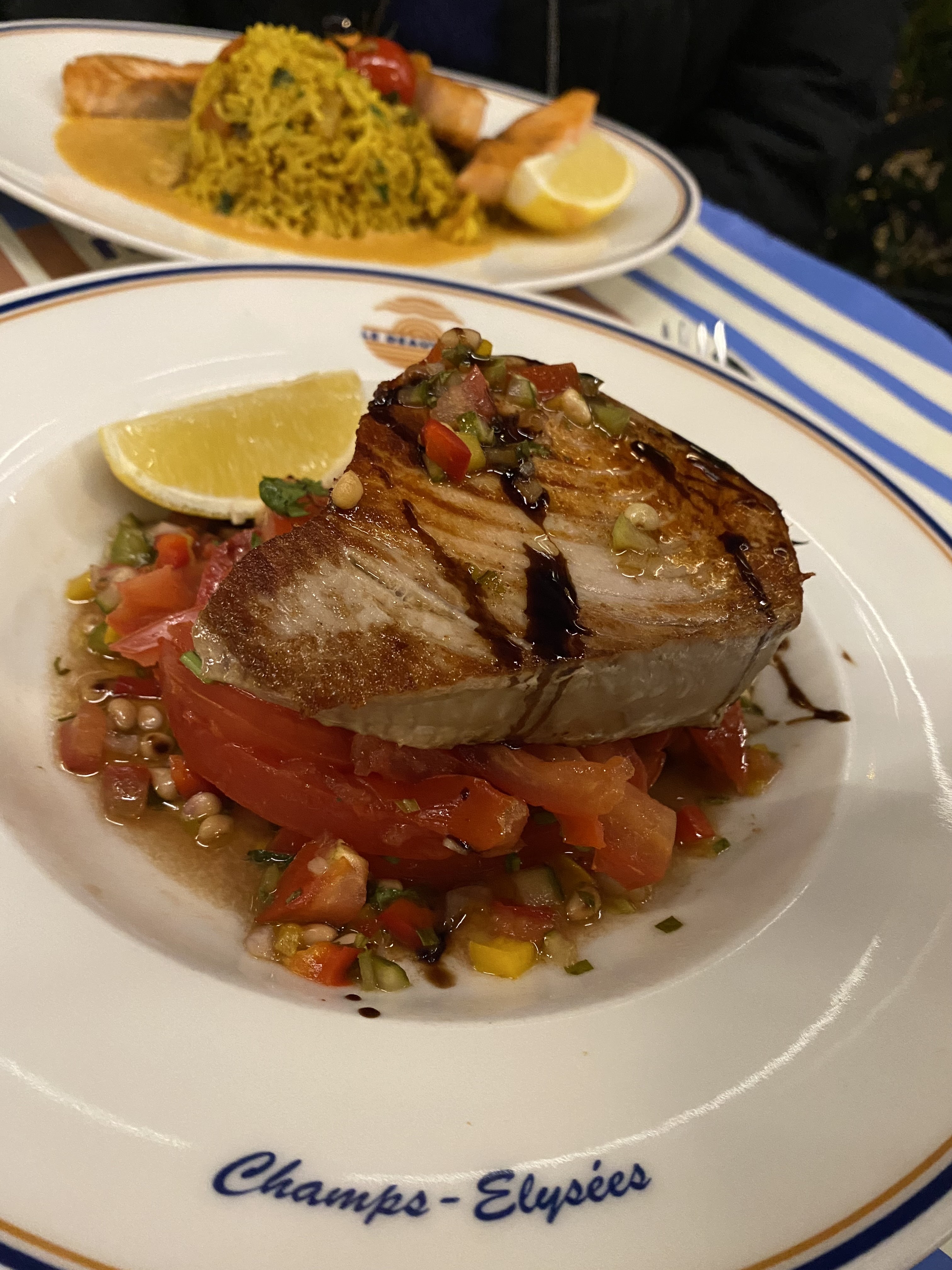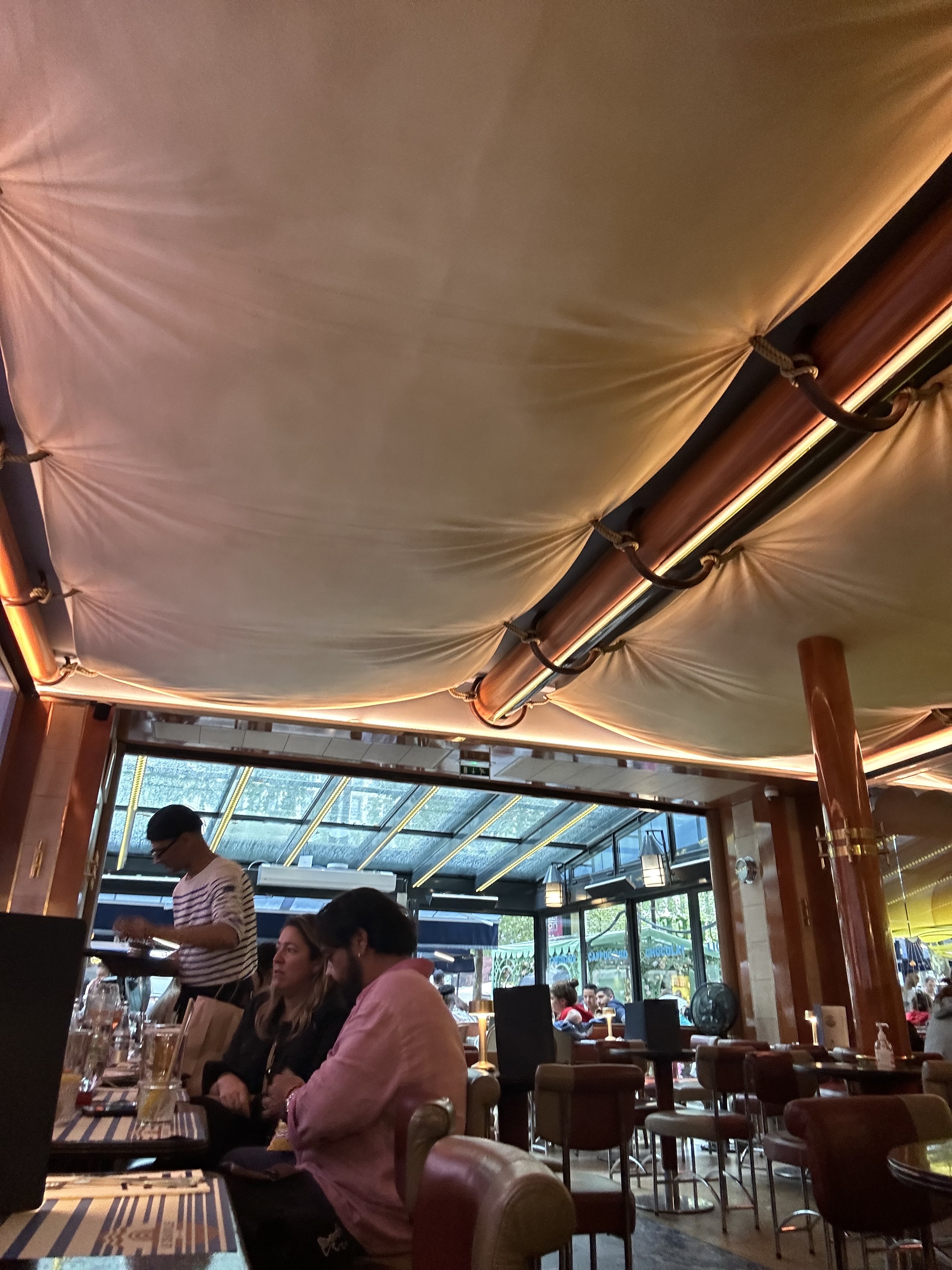 Nous sommes très reconnaissants que ce restaurant joyeux et habillé de style marin ait été ouvert tard avec un menu complet sur les fastueux Champs Elysse 🤩 les serveurs sont très attentifs et la nourriture les options françaises et larges 🍹
