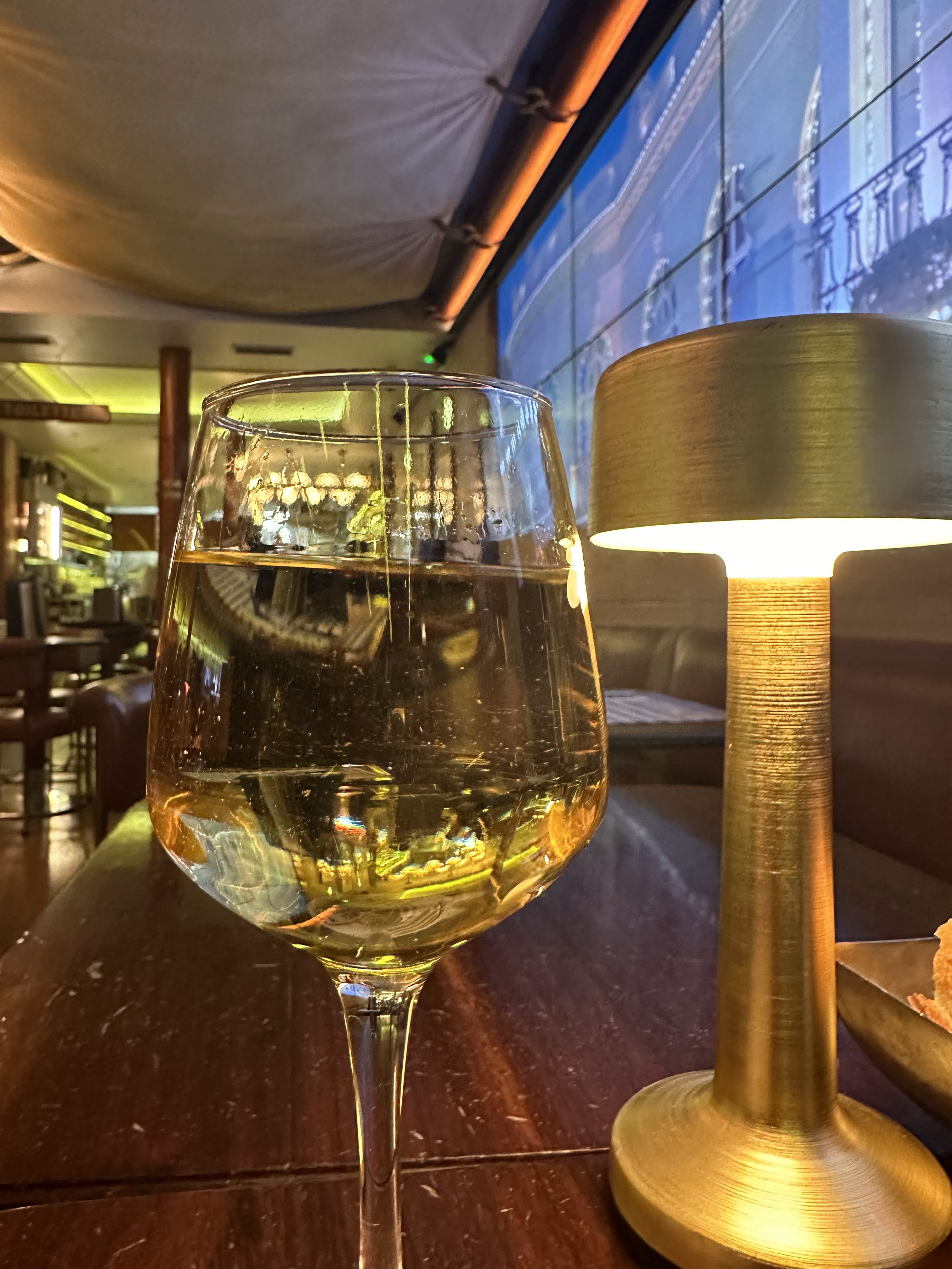Serveur assez sympa mais c'est un piège à touristes. A affirmé qu'un double gin tonic coûtait 46 €. Nous avons également commandé un apérol spritz et un Bloody Mary - l'aperol était bon, le Bloody Mary ne l'était pas du tout. Je ne reviendrai plus jamais