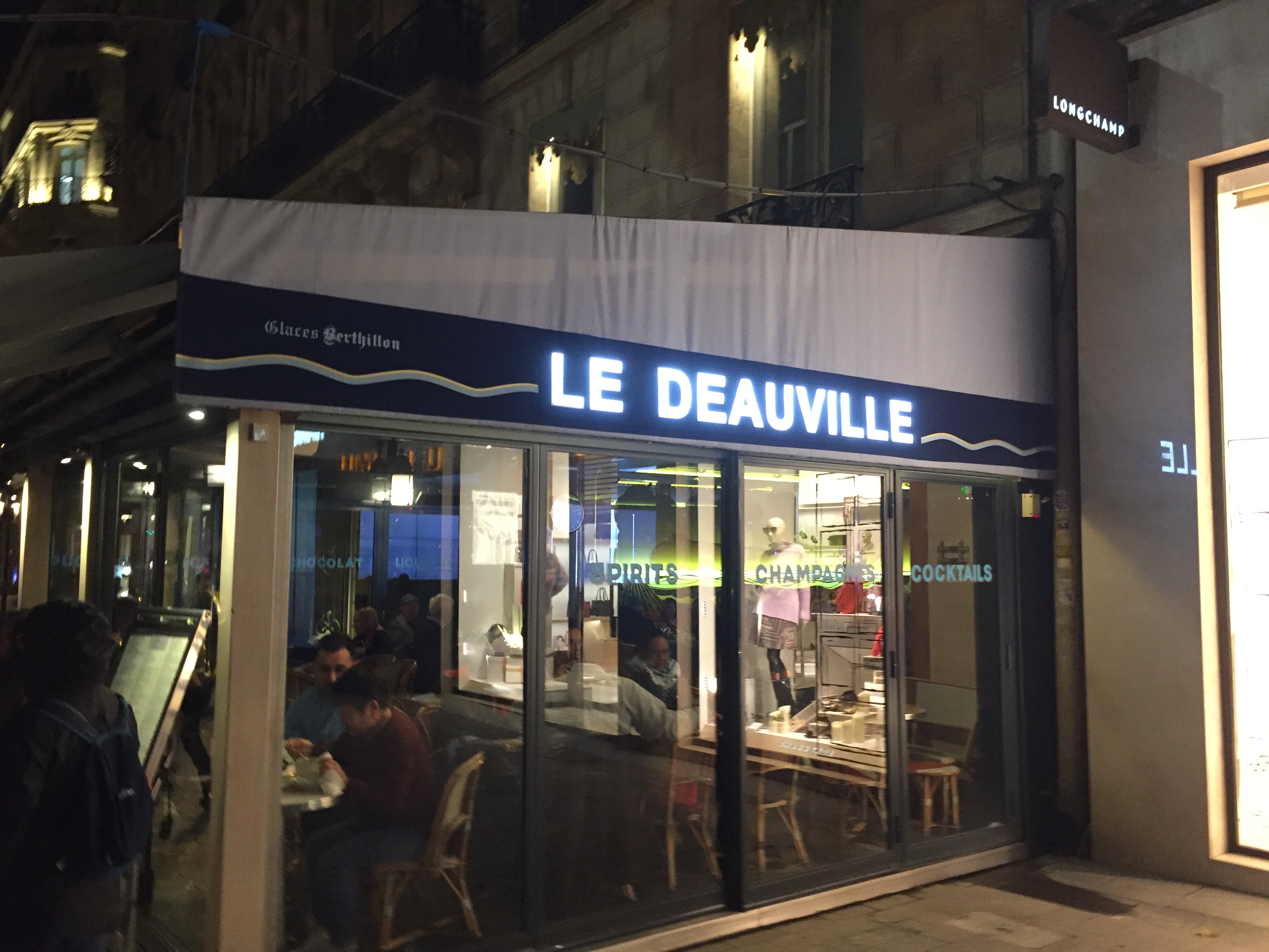 De passage sur Paris pour des vacances, nous nous sommes arrêté boire un verre au Deauville quand nous visitions les Champs Elysée. D'allure sympathique, je fus surprise de la façon dont les serveurs alpaguent les clients. L'un d'entre eux à même clairement dit qu'il ne voulait que la moula (argent). J'ai été egalement surprise quand on a annoncé qu'il était obligatoire d'avoir une consommation par personne. Pour couronner le tout, la note arrive et affiche 23 euros pour 1 ici tea,1 Schweppes et 1 capucinno. De là d'où nous venons, nous payons 12 euros pour la même chose. Terriblement déçue. On ne nous y prendra pas à deux fois.
