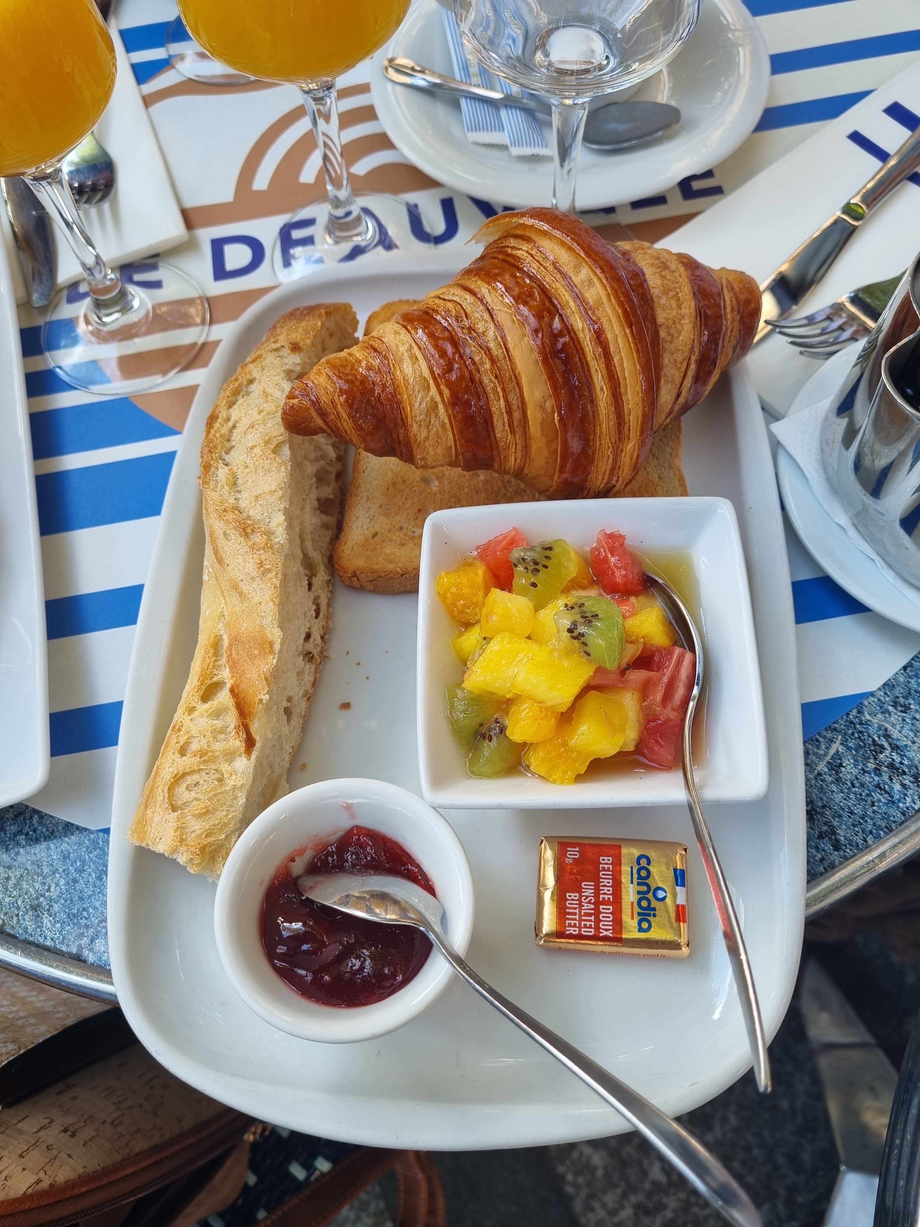 Super petit endroit pour prendre le petit déjeuner ! 🥐 Ou comme disent les Français : le petit déjeuner 🇫🇷 ▪️Ce qui a aimé : un bon petit assortiment de produits pour le petit-déjeuner, mon ami et moi avons partagé le complet (attention, leurs omelettes sont un peu coulantes à l'intérieur, mais quand même délicieuses) 🍳, les fruits étaient frais et parfaitement mûrs ▪️Taille : moyenne intérieure et extérieure ▪️Service : rien à redire ▪️Prix : abordable ▪️ Vue panoramique : vue sur la rue de la ville ▪️ Temps d'attente : aucun lorsque nous y sommes allés, mais nous étions en déplacement vers 9h du matin ▪️ Réservations : incertain ▪️Animation : pas à l'heure ▪️ Promotions : oui ▪️Chiens admis : extérieur oui, intérieur incertain Expérience agréable. 🙃 Rien de fou, mais nous avons été satisfaits et prêts à affronter la journée !