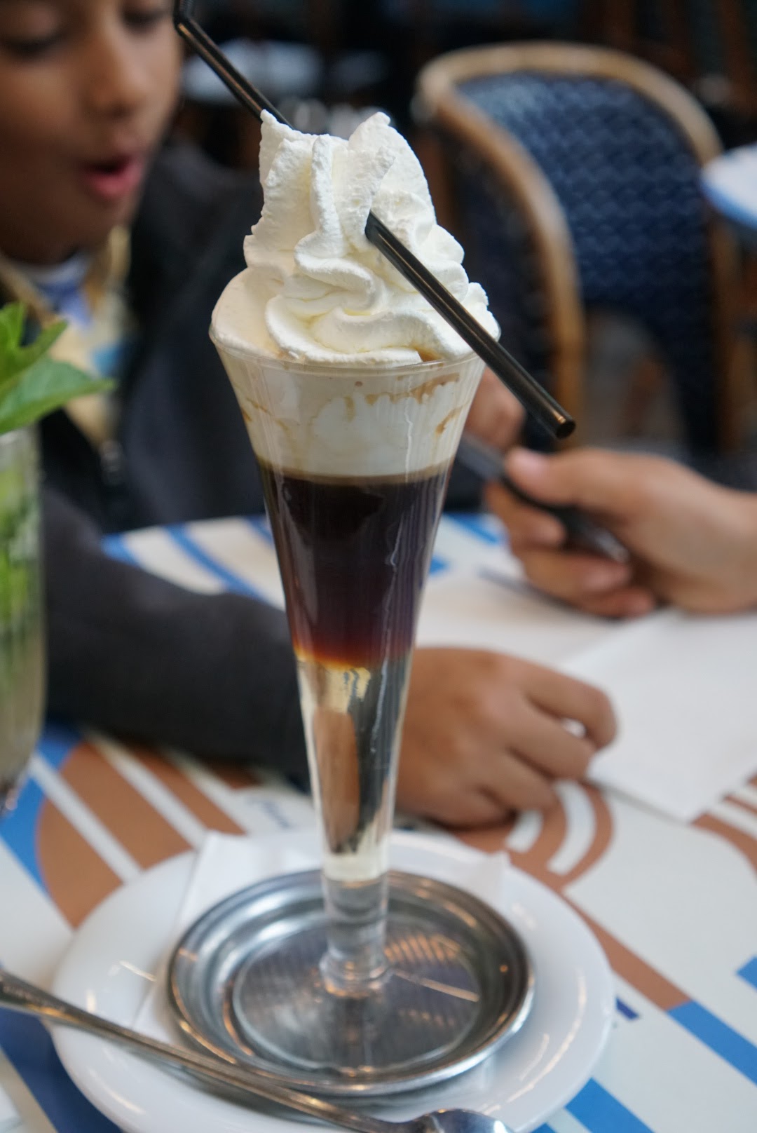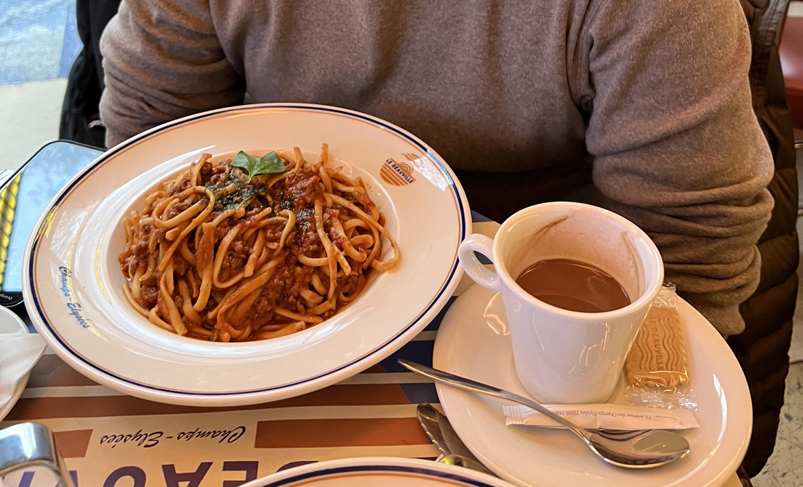 Nous avons eu les spaghettis à la bolognaise et les spaghettis à la crème de champignons. Très délicieux et savoureux !! - la texture des pâtes était al dente. Le chocolat chaud était une trouvaille incroyable. Tellement chocolaté. Le service était rapide et les serveurs sympathiques. Belle trouvaille sur les Champs-Elysées !