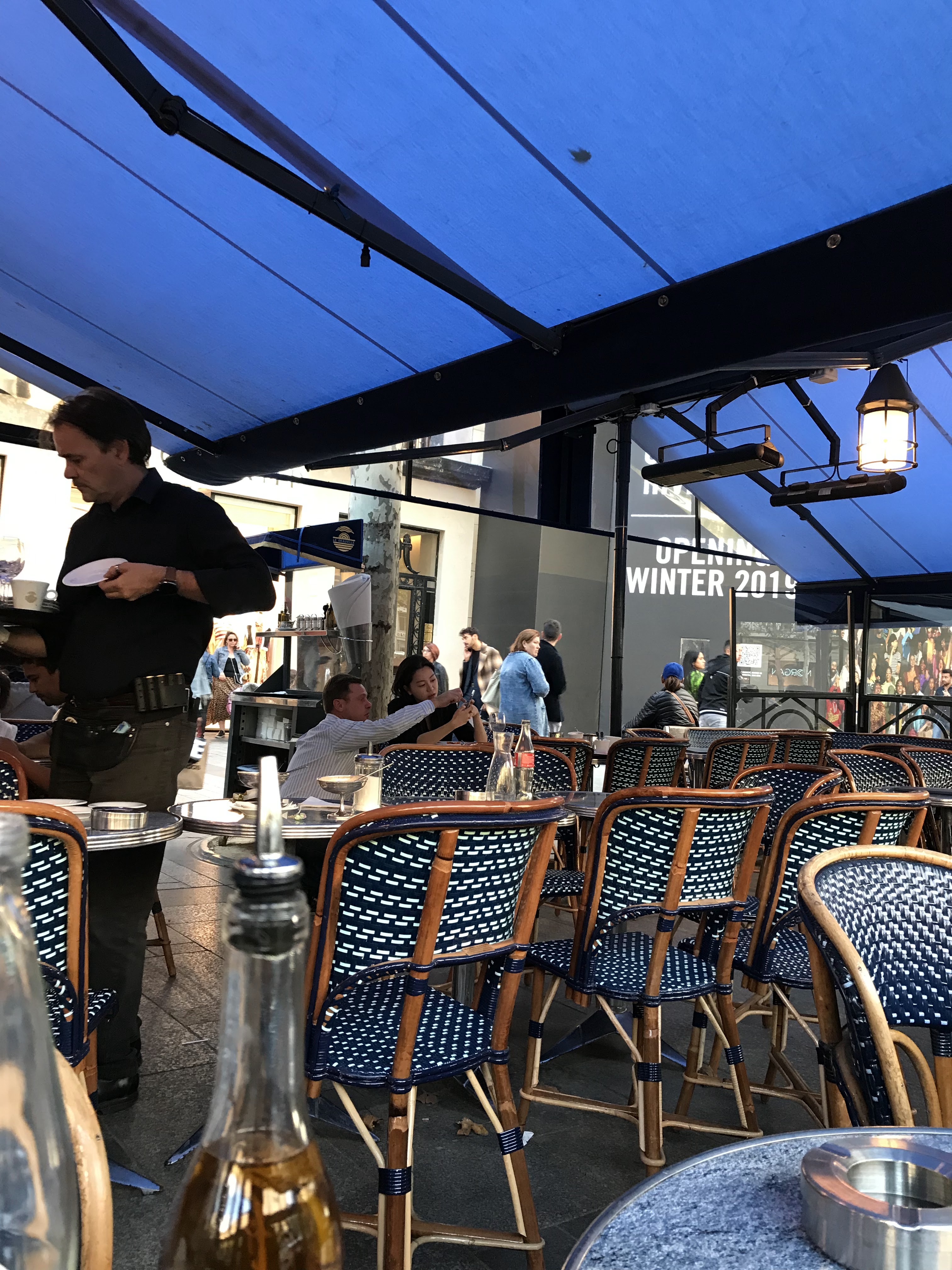 Un bel endroit, une cuisine de brasserie qui mériterait d'être un peu plus ambitieuse et de mieux sourcer ses produits. Indispensable quand on est sur les Champs. Et l'équipe de serveurs pêche par un excès de confiance, un peu d'humilité c'est bien aussi dans un métier de service ^^