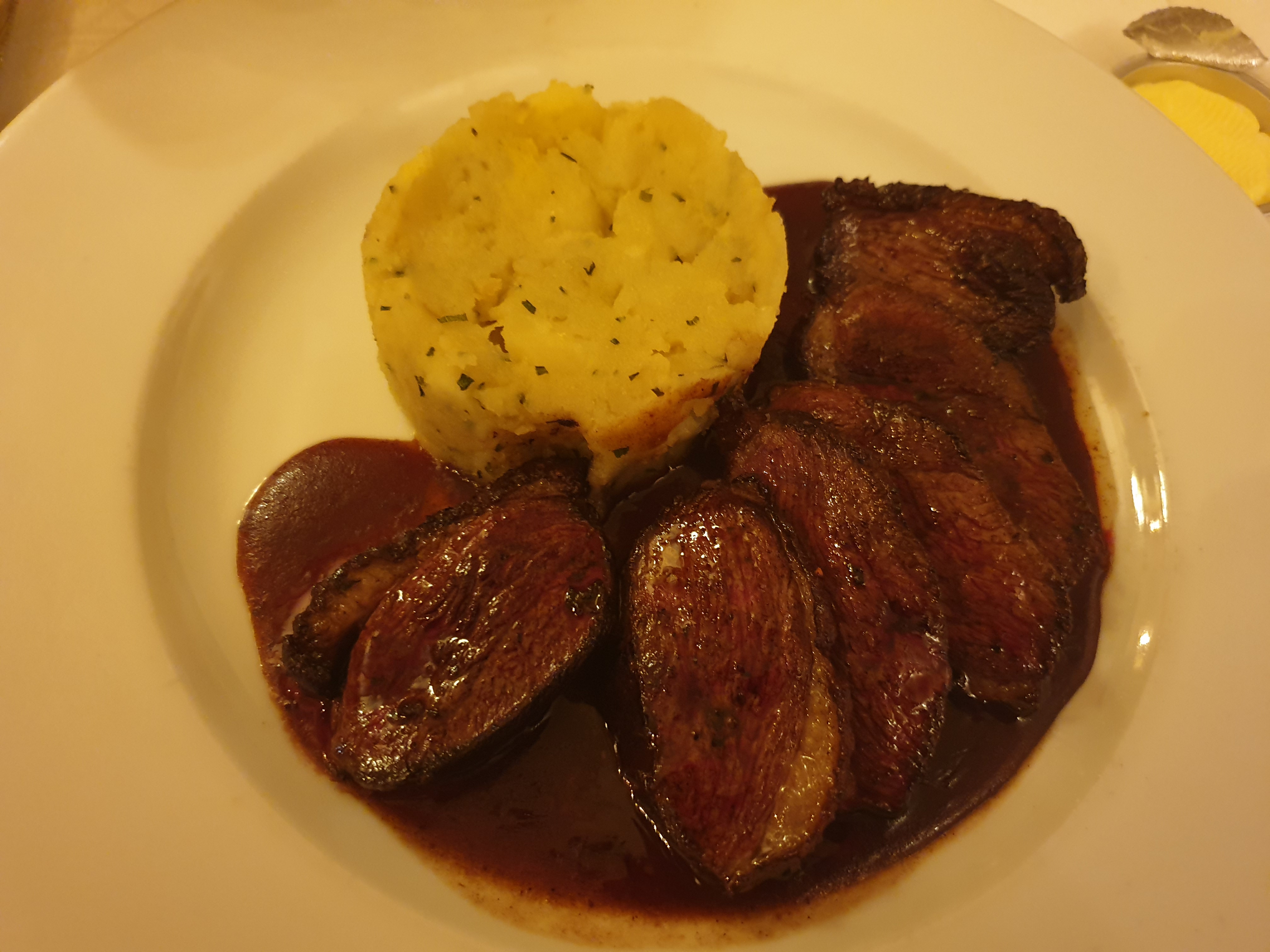 La première partie de ce restaurant est le personnel d'accueil amical. Nous étions assis près de Leonell. 1 : Canard rôti 2 : Sphagetti Bolognese 3 : Irish Coffee 4 : Virgin Mojito x2 5 : Crème Brûlée Total 95€ Tout était délicieux et servi dans un bon moment. Nous avons passé un bon dîner. Crème brûlée - Une discussion gastronomique très sérieuse sur qui fait le mieux. Nous avons essayé partout. Je donnerais à cela une note de 8 sur 10. Quelque chose n’allait pas, je ne peux vraiment pas identifier ce que c’était. Mais c’était l’un des rares bons que nous ayons essayés.
