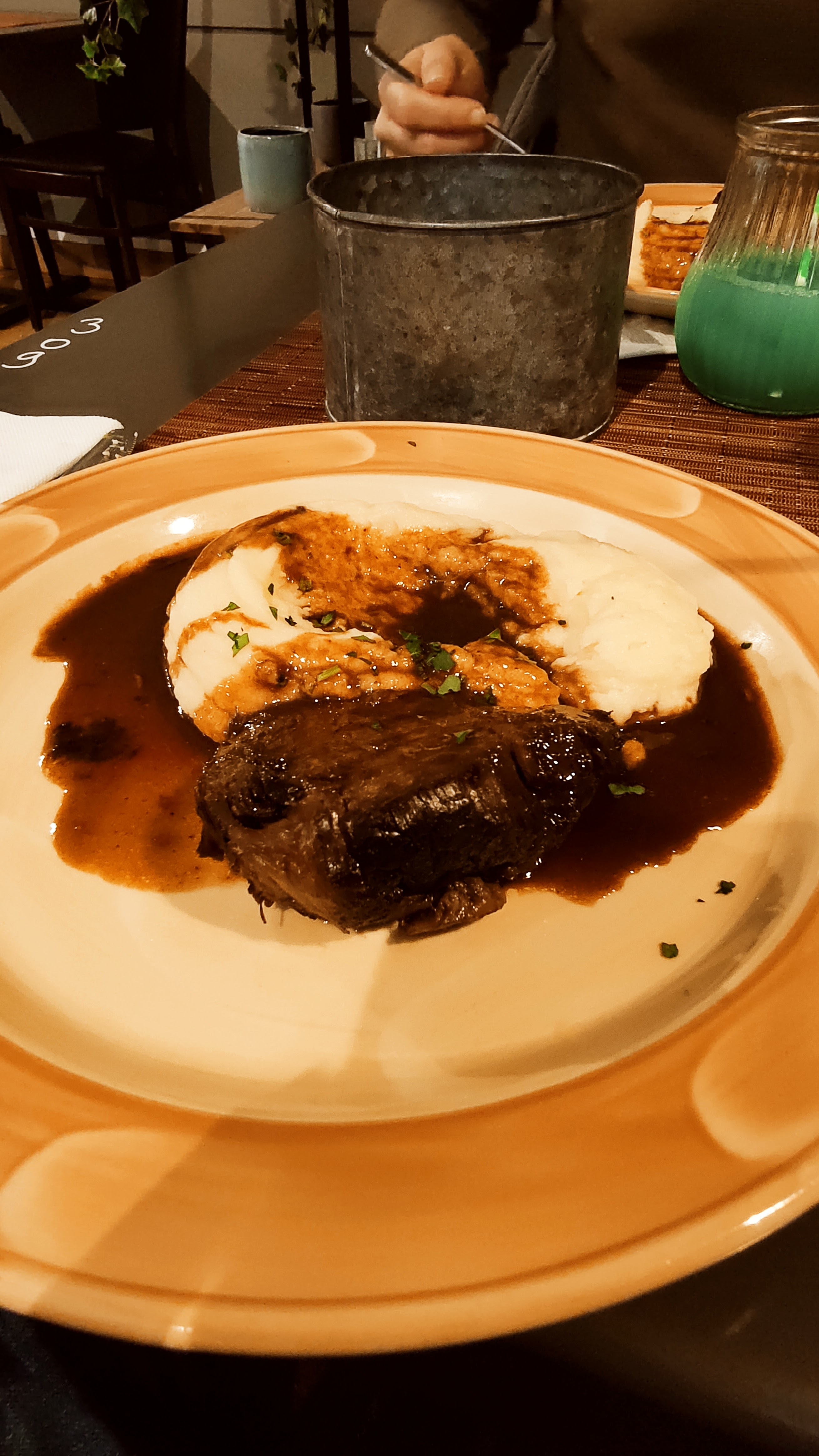 Restaurant bien placé en ville haute avec une façade aguichante mais avec une décoration assez pauvre et triste en intérieur. Jour de marché de Noël oblige, nous avons attendu au moins 45min avant d'être installé. La serveuse etait chaleureuse avec un service assez rapide. Le cocktail au curaçao était délicieux et bien dosé, un très bon Blue Lagoon ! En revanche la tartelette en entrée avait une pâte bien trop sec et trop croquante, peu agréable en bouche Le plat principal avec le paleron de boeuf etait incroyablement tendre et fin, il pouvait se découper simplement a la fourchette. Un régal ! Le dessert était un fondant au chocolat avec de la glace mangue, deux parfums qui ne vont pas vraiment ensemble. C'était assez bon mais les saveurs etaient plutôt brouillées. Une adresse correcte mais un peu surcôtée dû au fait de son excellente localisation.