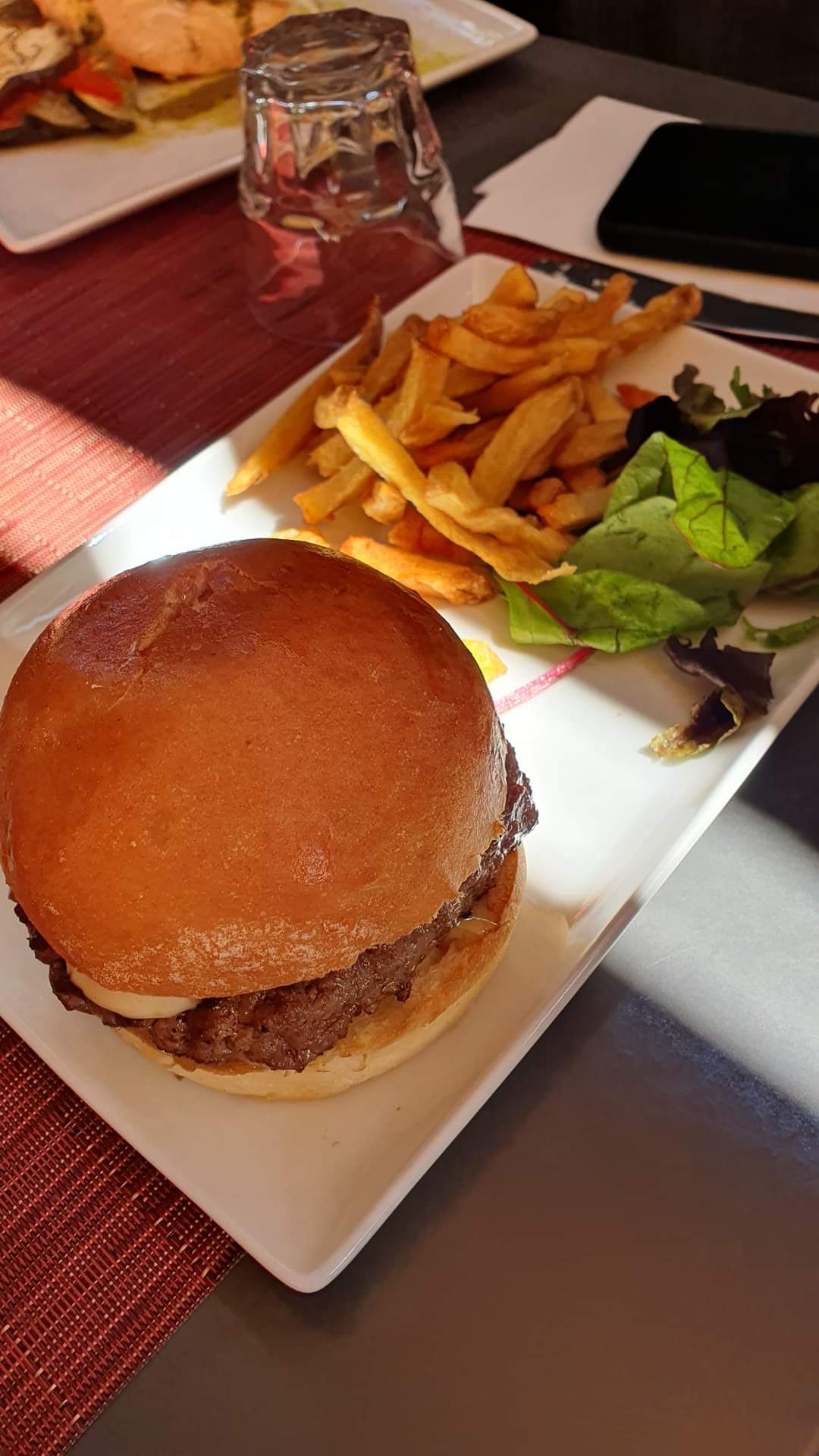 Très bonne soirée. Mes enfants ados et jeune enfant ont mangé super burger maison demande sans sauce car à la moutarde avec des frites incurvées. Burger servi avec la sauce moutarde au miel à part et finalementadorépar mes loulous. C'était une très bonne idée car plus facile å manger. Très copieux.Très bons et belle présentation . Pour moi salade de la mer très copieuse et très bonne. Dommage qu'il pleuvait sinon on aurait pu profiter de la terrasse. Très bon accueil et service parfait.