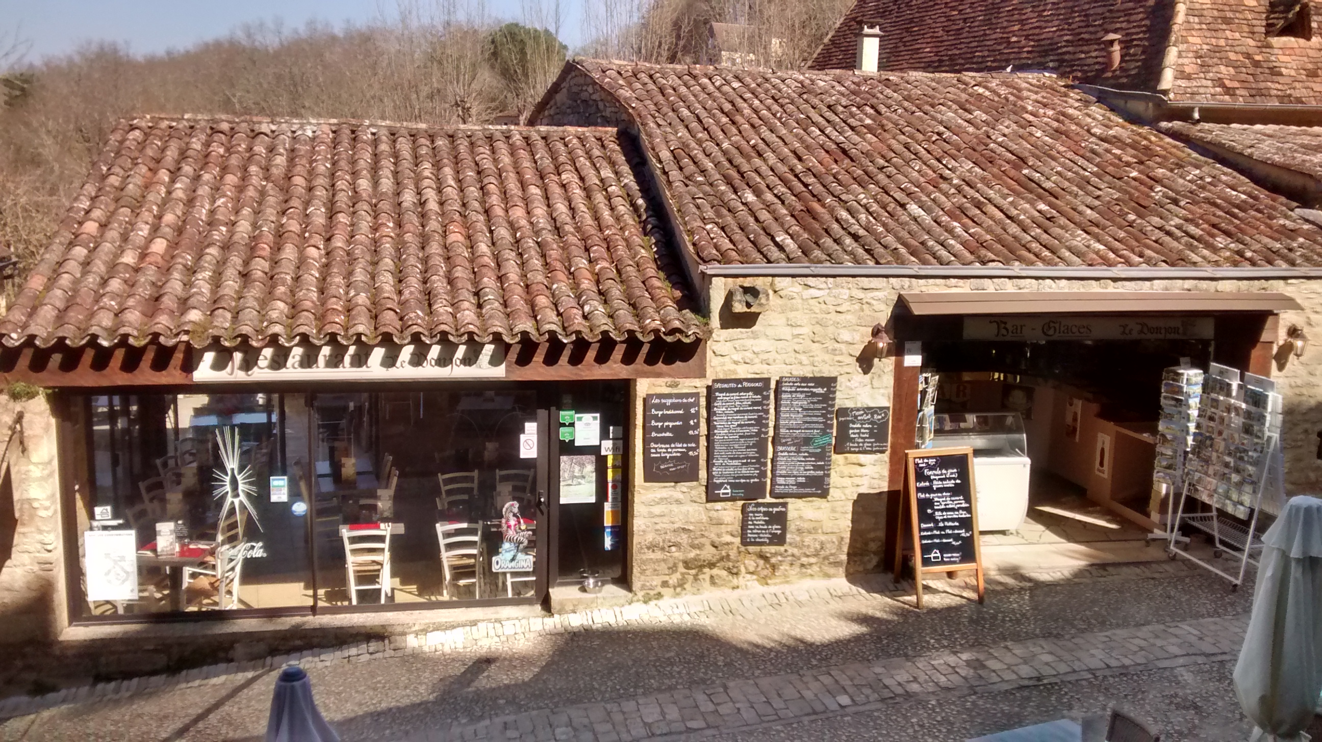 Juste à la sortie du château de Beynac. Une excellente adresse avec des prix raisonnables. Les plats sont délicieux (magret de canard et salade du berger 😊). Les glaces très bonnes. Le menu enfant parfait. Le personnel est très gentil. Je recommande !