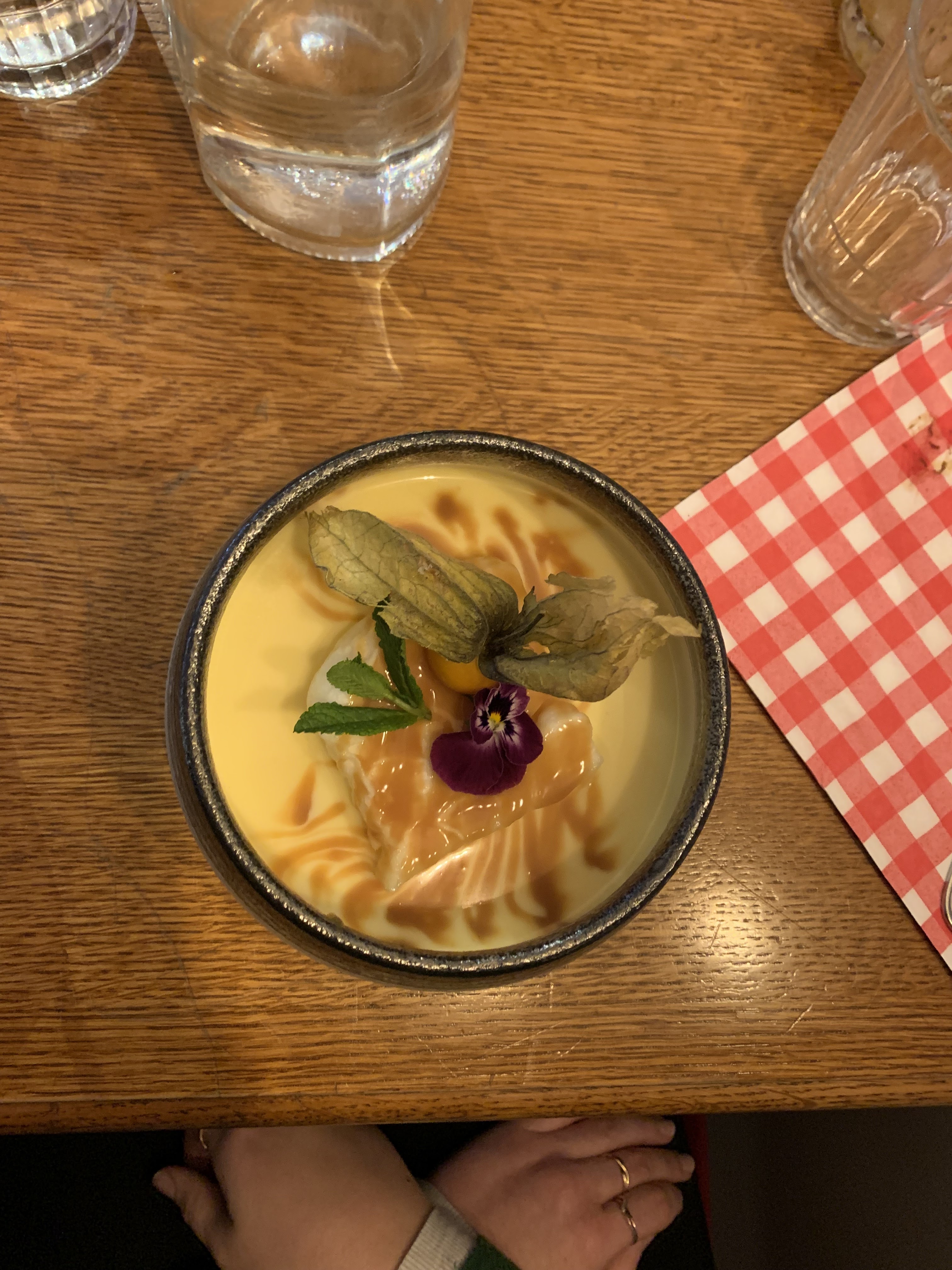 Moyen dans l'ensemble, même si le personnel est très sympa. Prise de commande et service dans un temps acceptable, placement selon notre convenance. Plat bon et copieux pour moi, mais les deux cuissons n'ont pas été respectée, viande trop saignante, limite bleue dans les 2 cas. Le problème majeur a été le dessert, café gourmand, une escroquerie. Minis desserts, que dis je micro dessert, avec verre de fruits coupés (ou plutôt verre de pommes tranchées) oxydés, pas terrible. Ajouté à ça, une crotte de chantilly, un micro macaron, un gâteau en sachet et un chamalow, 7e50 ça fait vraiment vraiment cher. Ce n'était pas la première fois que nous venions et déjà les fois précédentes le dessert était médiocre, et assez cher..