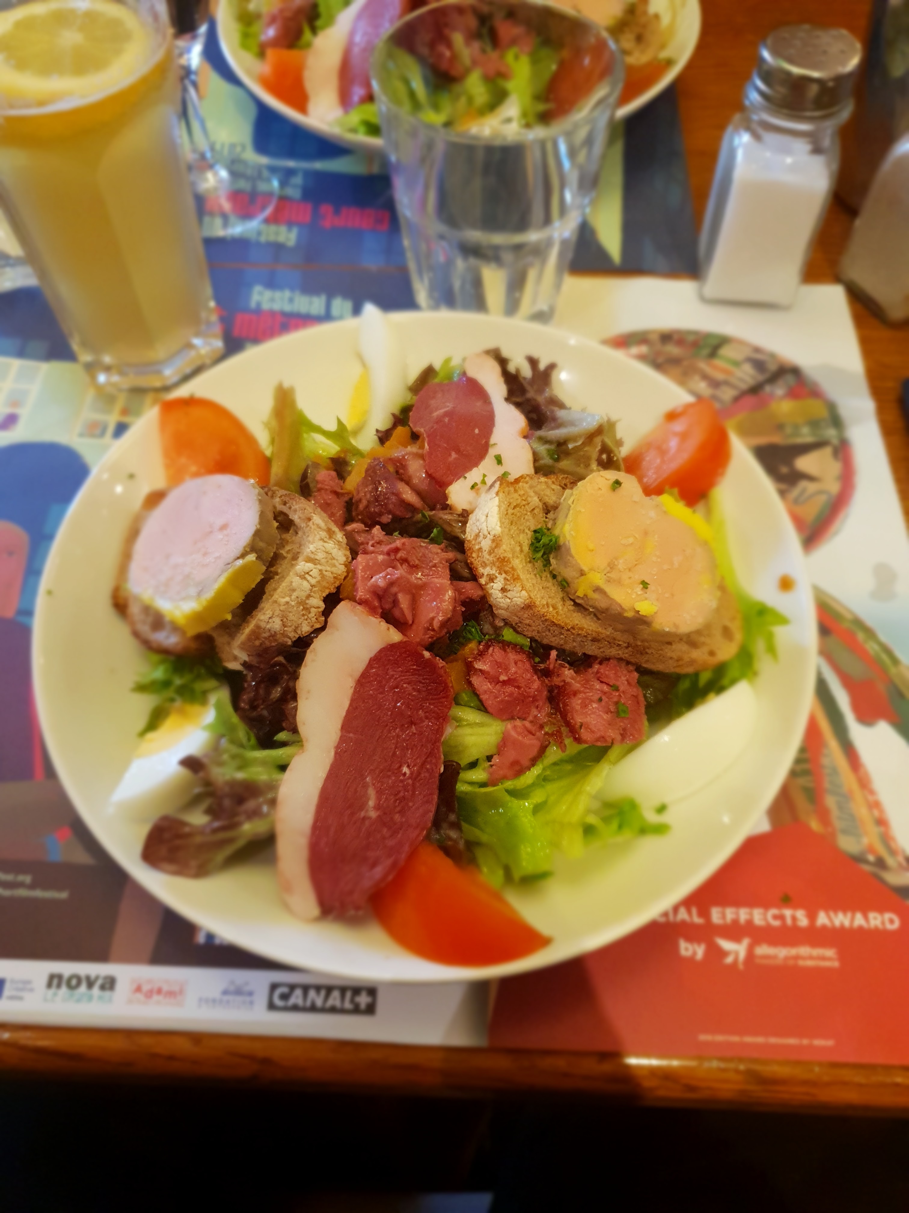 Nous sommes venus déjeuner en famille. Au menu, trois salades : - la salade césar et la salade auvergnate étaient bien copieuses ; - la salade du puy (lentilles, saumon, oeuf) était en revanche chère pour le contenu avec un oeuf poché qui n'était pas si poché que cela. Sinon, dans l'ensemble, nous avons passé un très bon moment. Les serveurs étaient agréables et disponibles