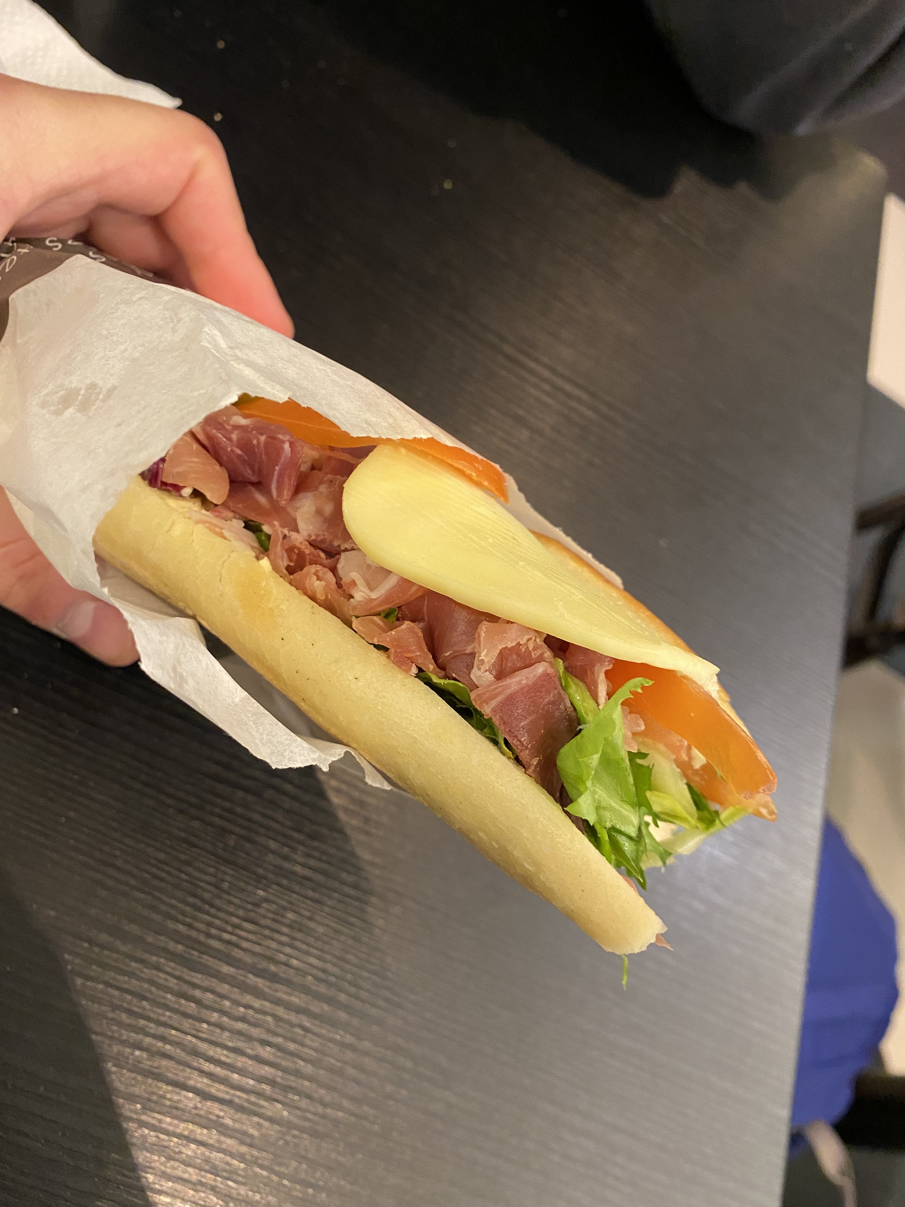 Ne mangez pas là-bas. La baguette que j'ai achetée est arrivée pourrie et je suis malade depuis presque 5 jours. Cela a presque mis fin à mon voyage en Europe. Restez à l'écart de cet endroit. Au moins le service est bon. Trop cher.