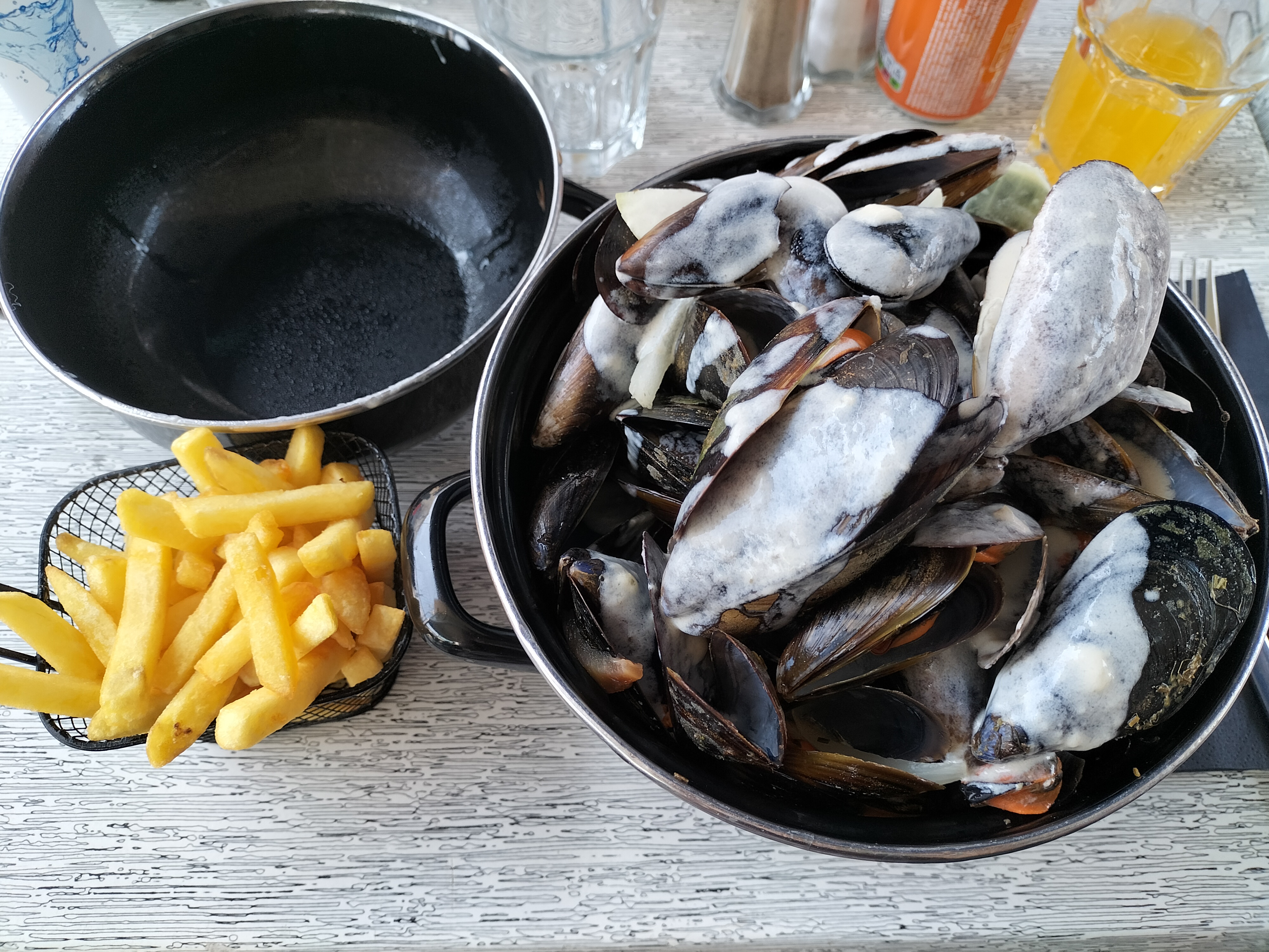 Visite du lundi 26.07 midi :Très bon restaurant, nous avons été servis rapidement (eu peu trop rapidement) nous avons à peine eu le temps de commencer notre apéritif que les plats sont arrivés mais les moules étaient délicieuses. Serveur très sympathique et à l’écoute. Visite du mercredi 28.07 soir : nous décidons de revenir avec nos amis car nous avons été ravis des moules et là grosse déception.. certes nous sommes arrivés en retard mais se prendre une réflexion même si nous étions en retard.. j’apprécie moyennement le ton qui a été employée. La serveuse se fait bousculer par un passant et le dessert de la table voisine fini par terre en plein milieu de la rue, elle ne daigne pas ramasser les nombreux morceaux de verres et le dessert malgré le passage très intense (aussi bien adultes, qu’enfants et chiens auraient pu se blesser) mais ouvertement elle a dit ne pas vouloir ramasser.. la serveuse n’a pas dutout été agréable ni aimable, elle a même dit à un de nos enfants qui est bien portant (même si elle plaisantait) qu’il ne devait pas manger tout le pain.. même si c’était de l’humour il y a des choses à ne pas dire.. elle a bien essayé de se rattraper mais quand on est accueillie et servi comme ça c’est plus que décevant et ça ne donne plus envie de revenir.. une chose est sur nous ne reviendrons pas