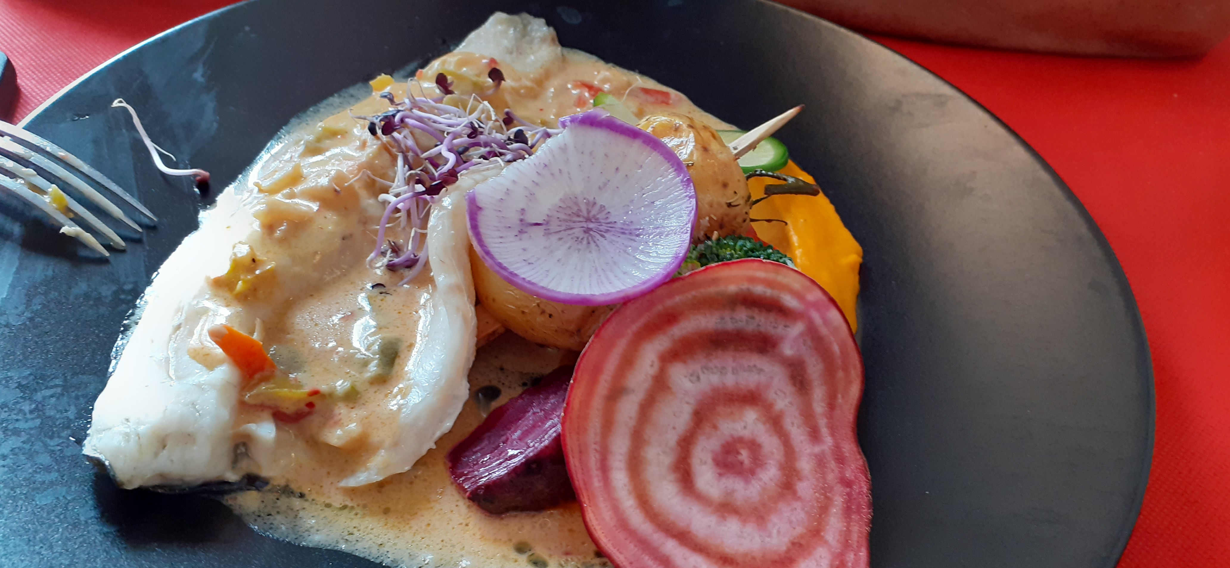 Agréablement surprise ! Le cadre est très sympathique, l’accueil est très bon et la cuisine excellente. ( le filet de bar aux trois poivrons est divin). Prix très raisonnable, je vous le recommande……
