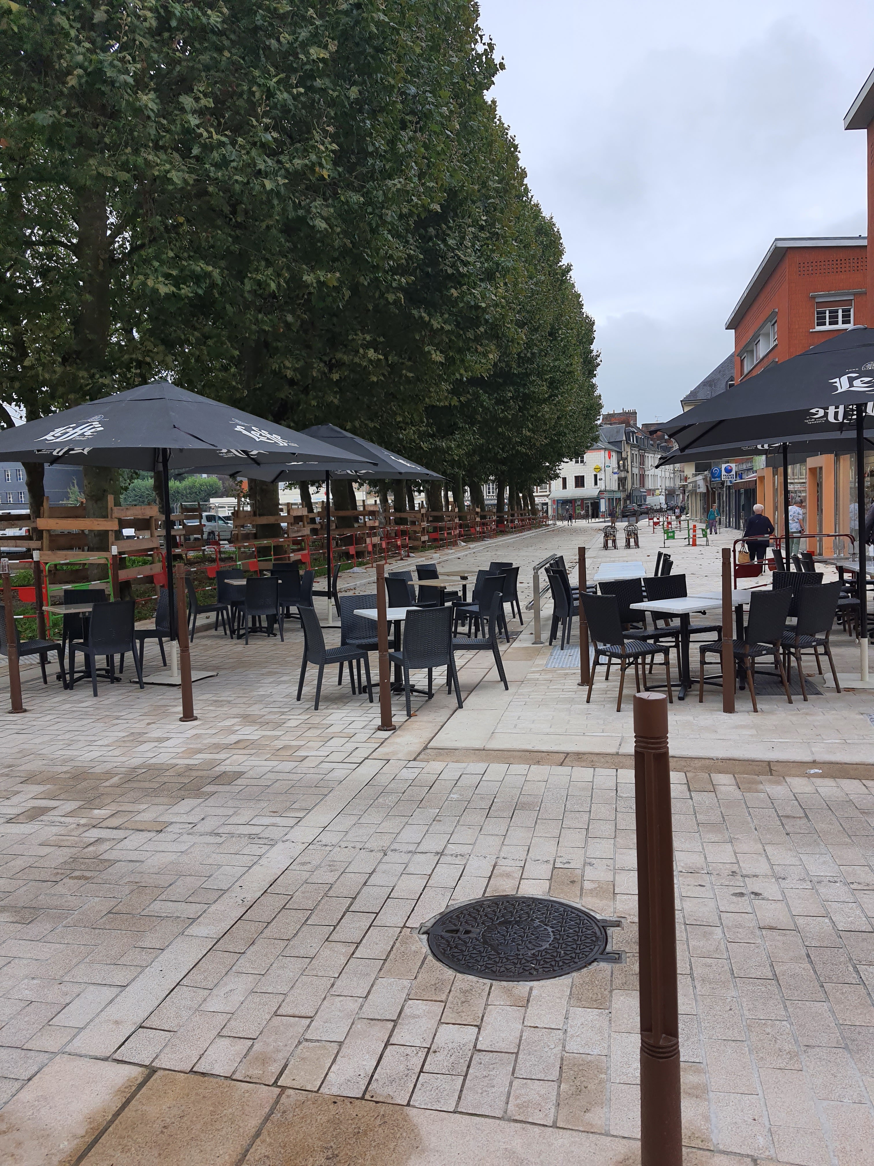 Patron agressif Après lui avoir signalé que sa terrasse prend trop de place sur le nouveau trottoir Empêchant les piétons, velos,poussettes de se croiser sans être obligés de slalomer entre les tables