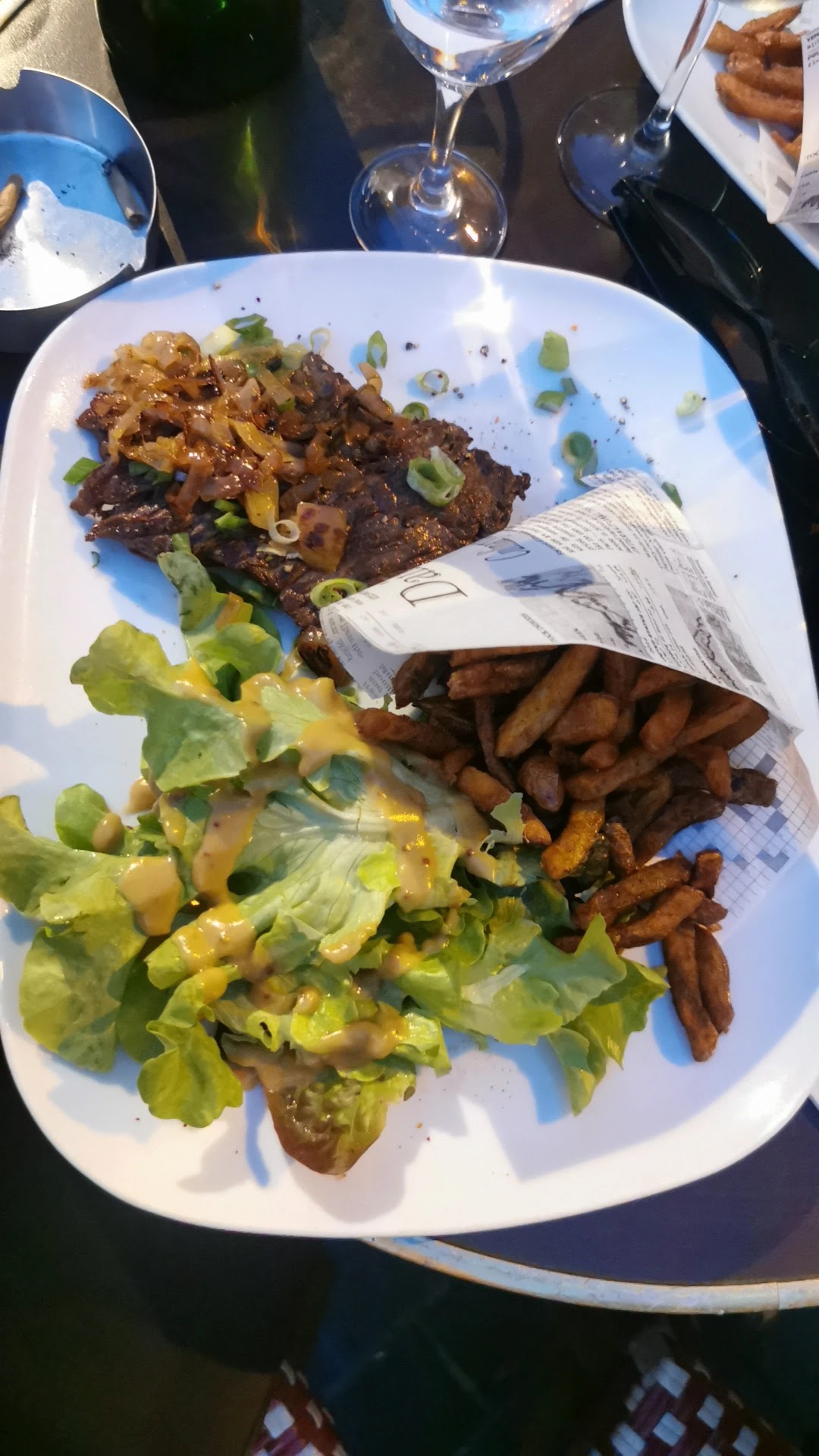 J'avais des visions plus proches de la gastronomie lorsque je venais ici déguster un Confit du Canard avec un verre de rouge de Graves. La réalité est que le confit a été servi dans une assiette avec un sachet de chips façon kebab et non avec de la sauce comme je m'y attendais. Le rouge de la maison était tellement. En regardant autour de moi, je réalise que je suis dans le quartier arabe de Bordeaux. La nourriture était agréable et c'était de ma faute si l'ambiance était assez différente de mes attentes.