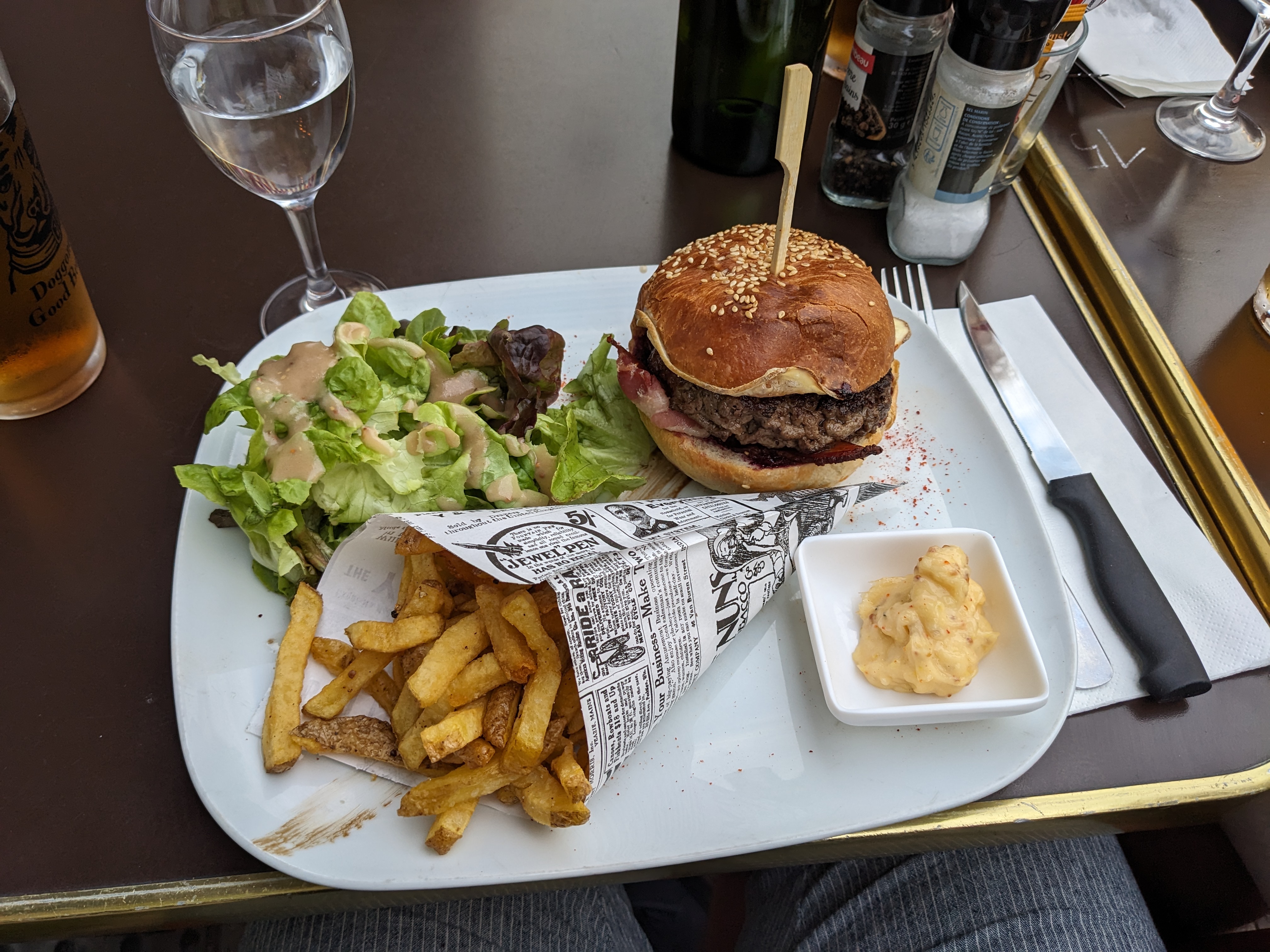 ce n’est plus ce que c’était . Un des serveurs est plutôt désagréable. peu de place pour circuler; clairement vous le gênez et vous le sentez bien; si par malheur vous croisez son chemin. Sa cadence et son manque de courtoisie lui font vous porter, en dehors de sa route; une ignorance la plus totale. Quand à la nourriture ce n’est plus à la hauteur de ce que c’était J’étais venus ici il y a un an environs; le burger était très bien . Quel n’a pas été ma surprise de voir arriver en guise de steak haché; un reste de bœuf bourguignon en effiloché gorgé d’eau . Je tiens a dire que c’était précisé sur la carte. je n’ai pas porté mon attention là dessus cela me paraissait tellement invraisemblable.. Entre le service et la déclinaison de la cuisine; je pense qu’on peu trouver mieux sur bordeaux.