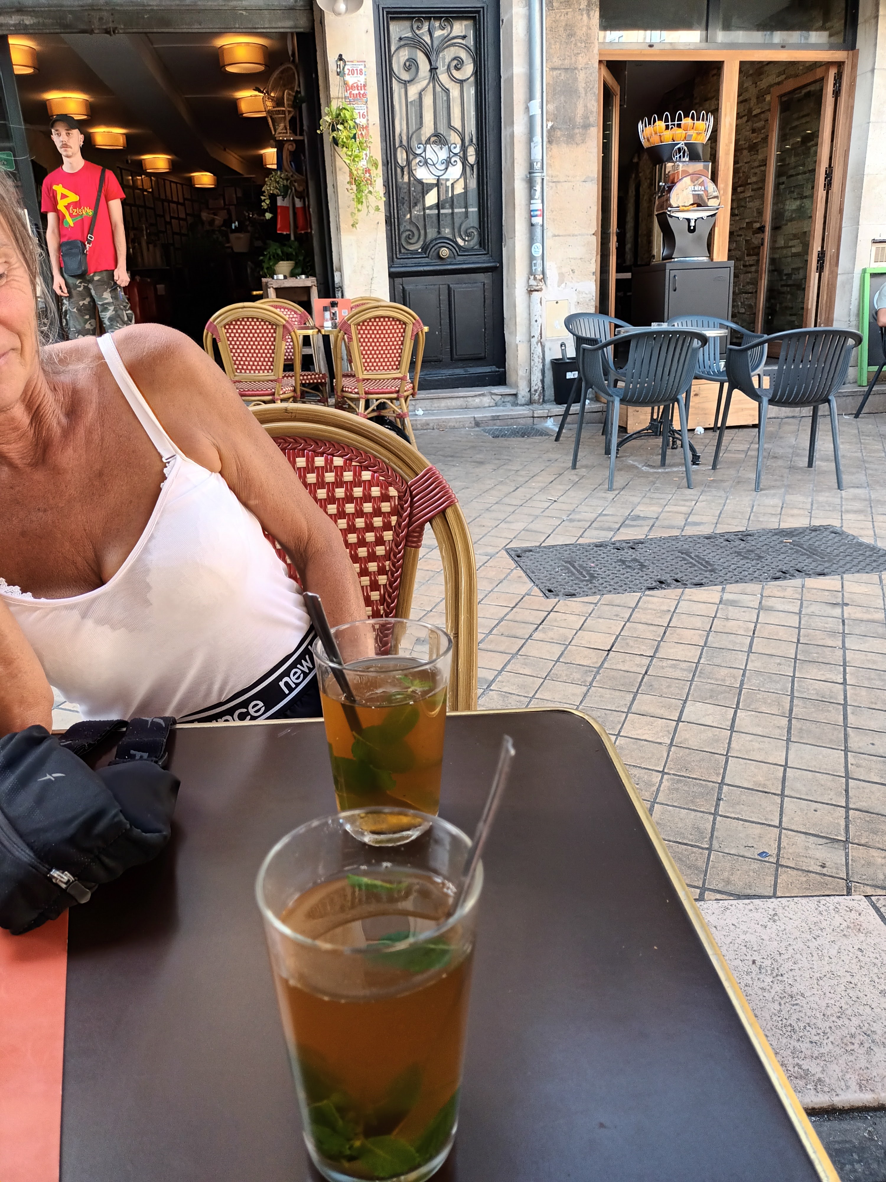 Sympa ! Un moment agréable en terrasse… thé vert à la menthe rafraîchissant 😄