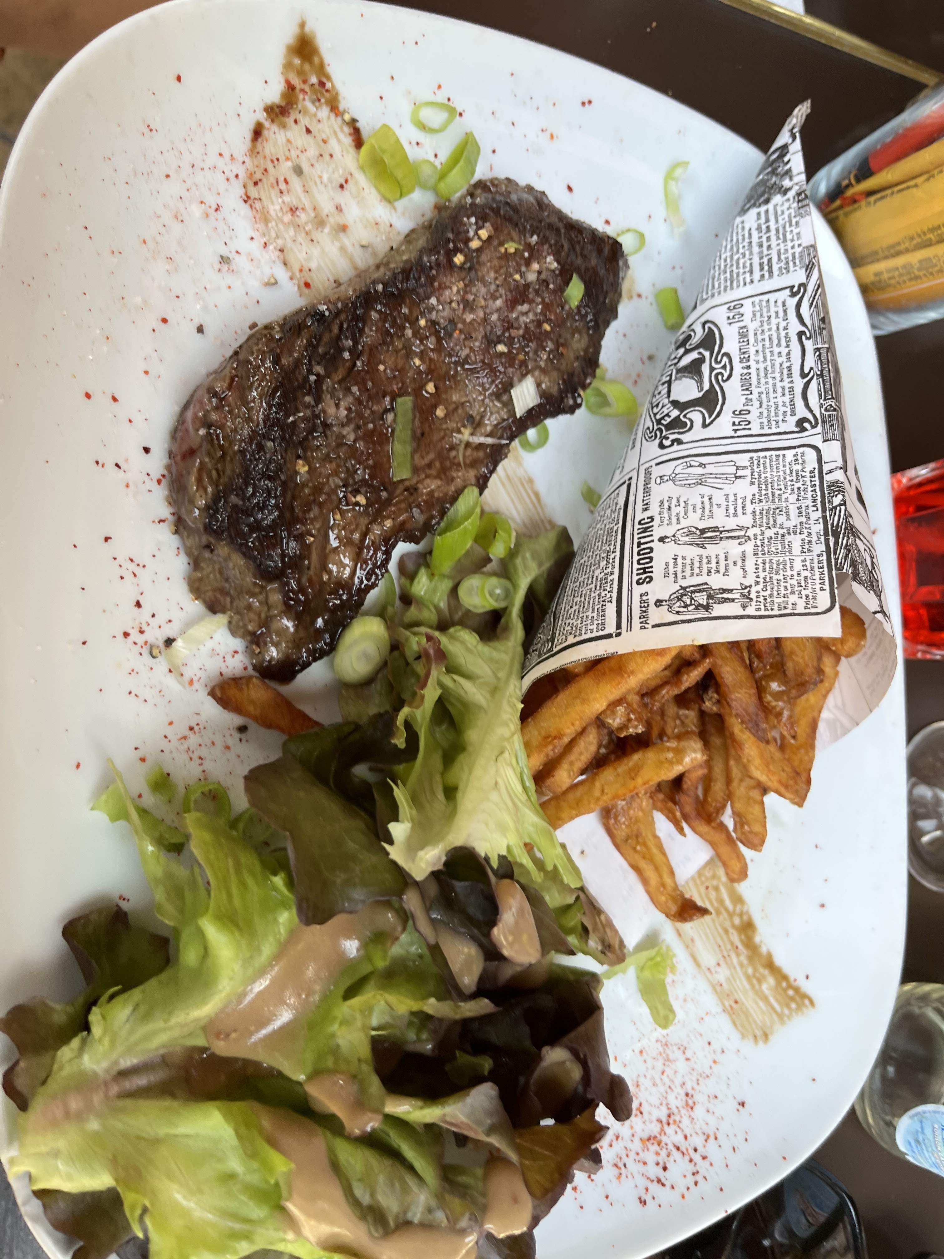 Steak de veau incroyable ! Personnel sympathique et formidable. Je me sens si bien accueilli. Super endroit pour se détendre près de la place de la basilique et boire le vin de la maison jusqu'à la tombée de la nuit. C'est notre première nuit à Bordeaux - c'était un choix aléatoire - et quel événement fortuit ! Nous reviendrons avant de partir 😊👍🏻👍🏻👍🏻