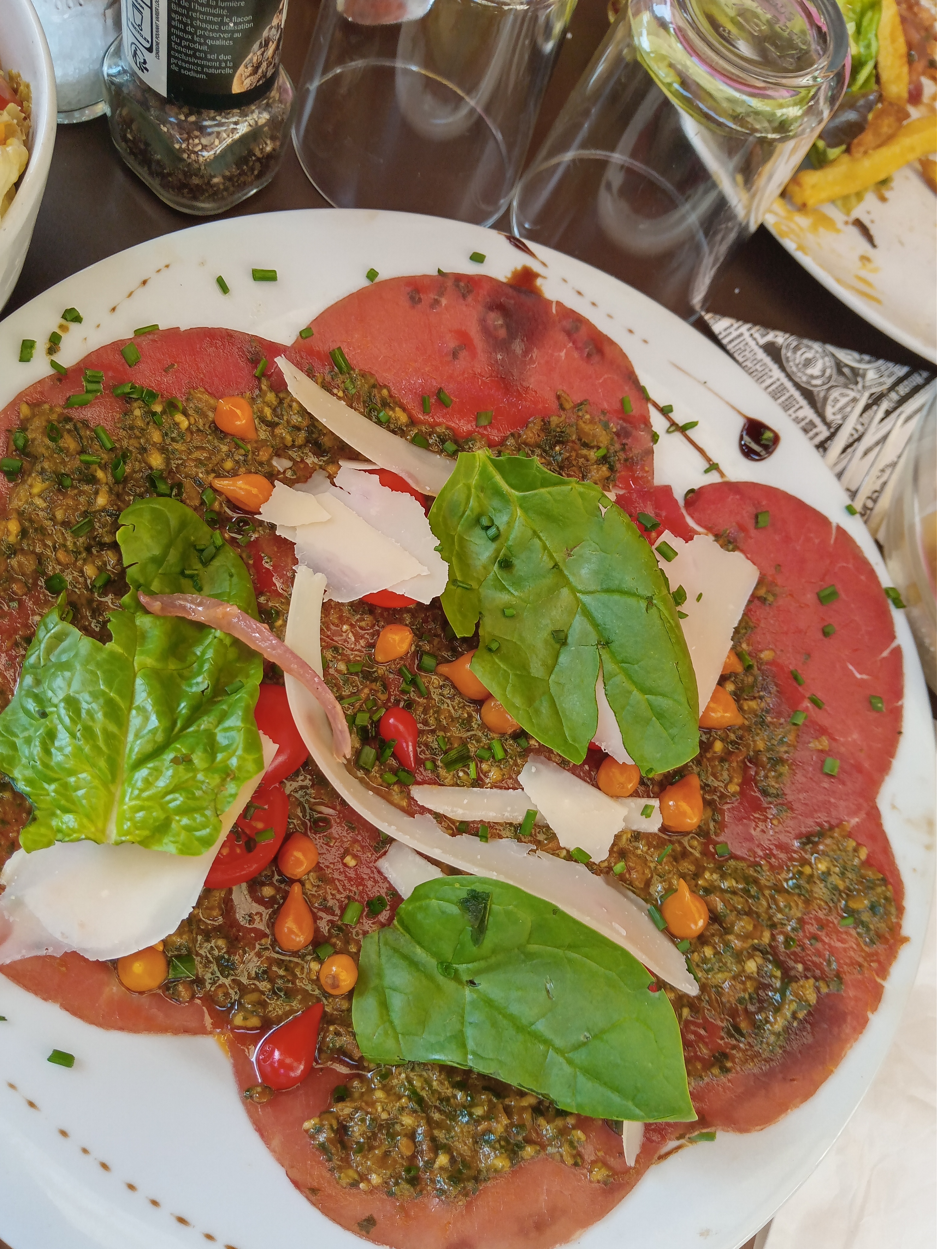 Nous avons aperçu leur petite terrasse au loin, sans trop d’attentes, et c’était un super déjeuner ! Le saumon en entrée était délicieux, et le plat du jour était tout bonnement excellent. Les saveurs étaient inattendues et pourtant parfaitement équilibrées.
