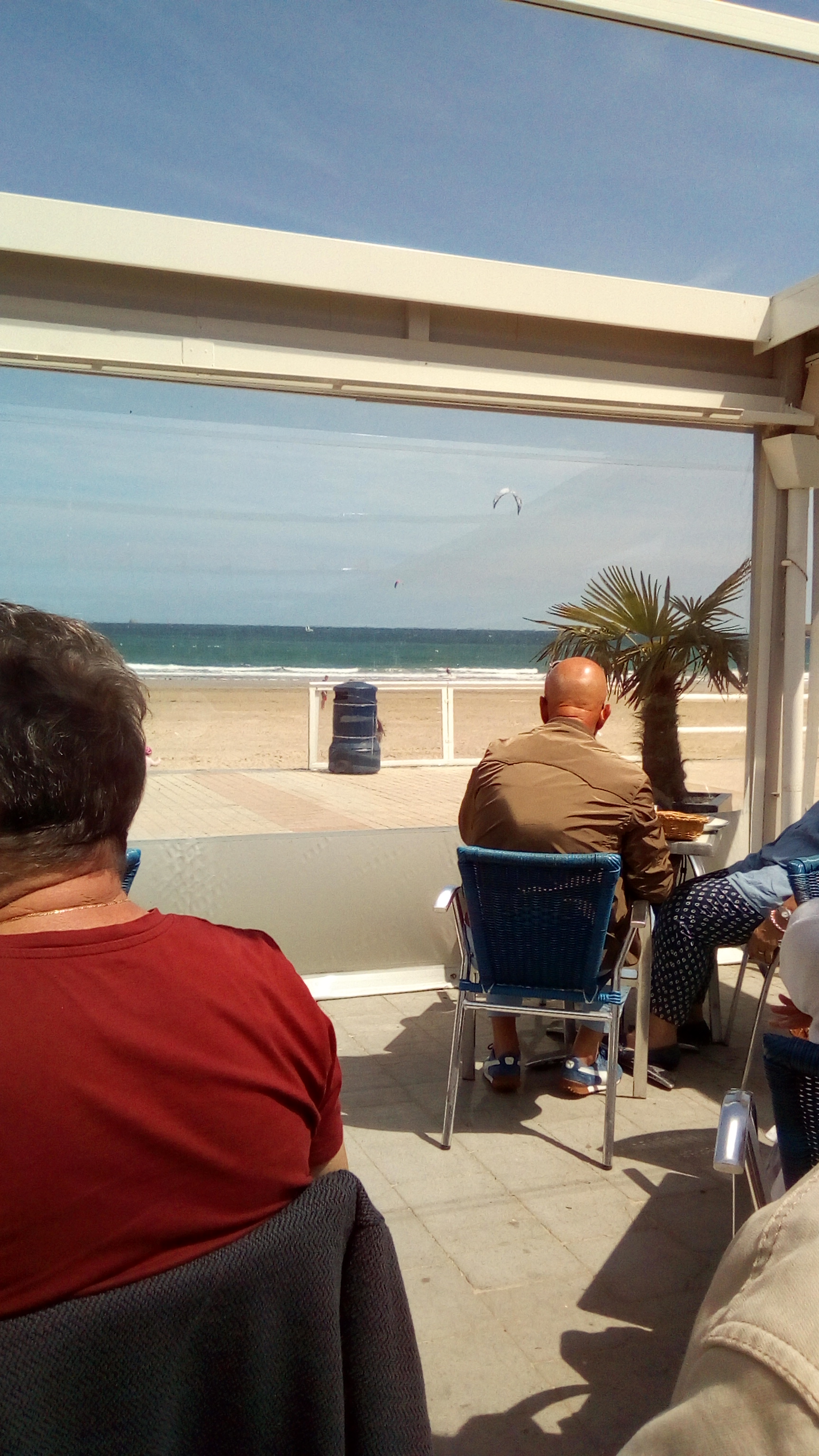Parfait pour prendre un café ou un verre avec une belle vue sur la plage, mais c'est tout. La terrasse entierement ouverte laisse malheureusement aux prises de la moindre bourrasque qui fait s'envoler des cendres de cigarettes de la table voisine, aux verres vides des clients précédents.