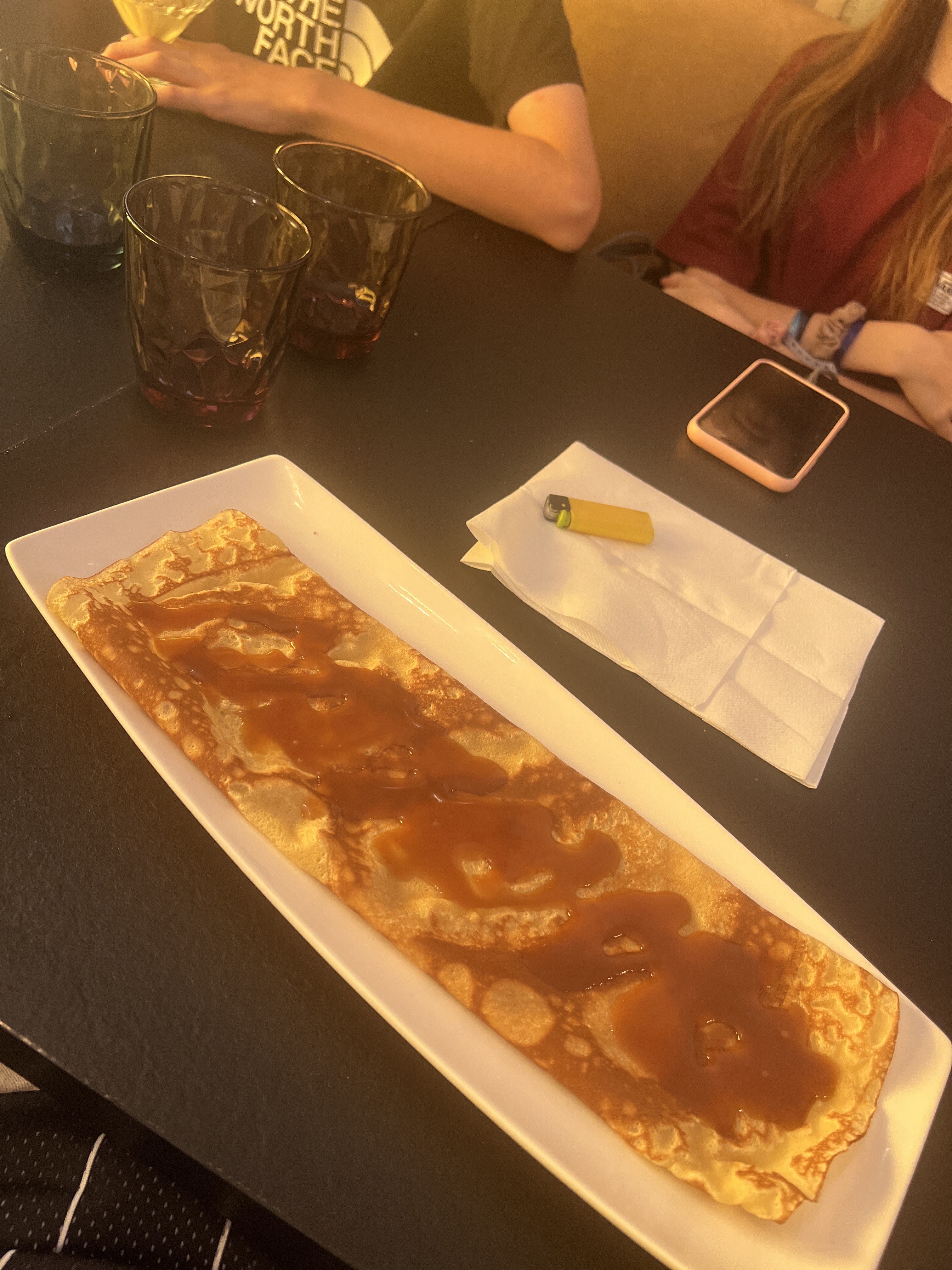 burger pas surprenant et sans garniture, frites ok, assiette 3 viandes bonnes mais les wings ne sont pas croustillants dommage car très bon sinon. crêpes sucré extra mais celle aux poire n'est que trop peu généreuse en poire malheureusement ! déco sympa et serveurs super