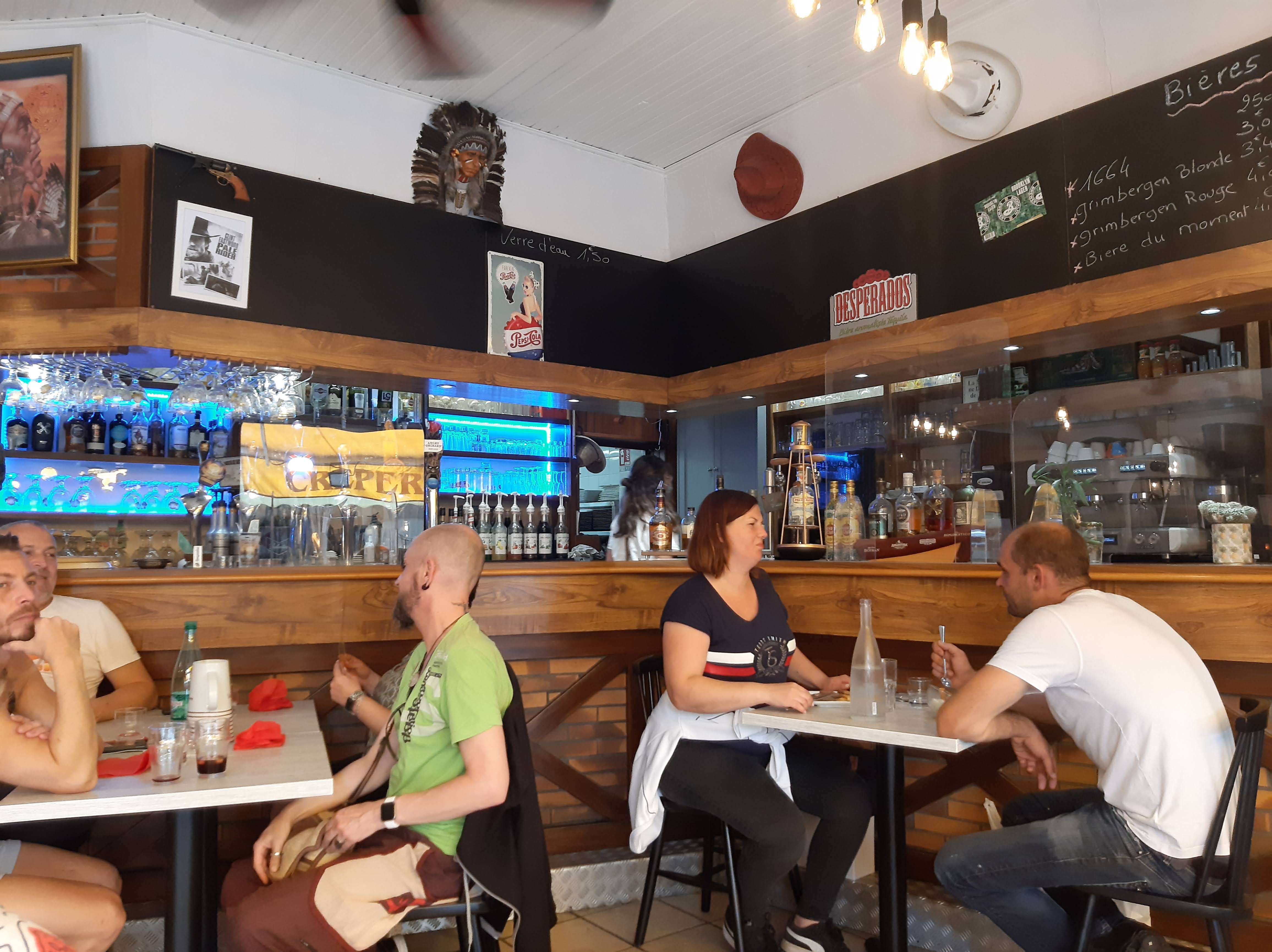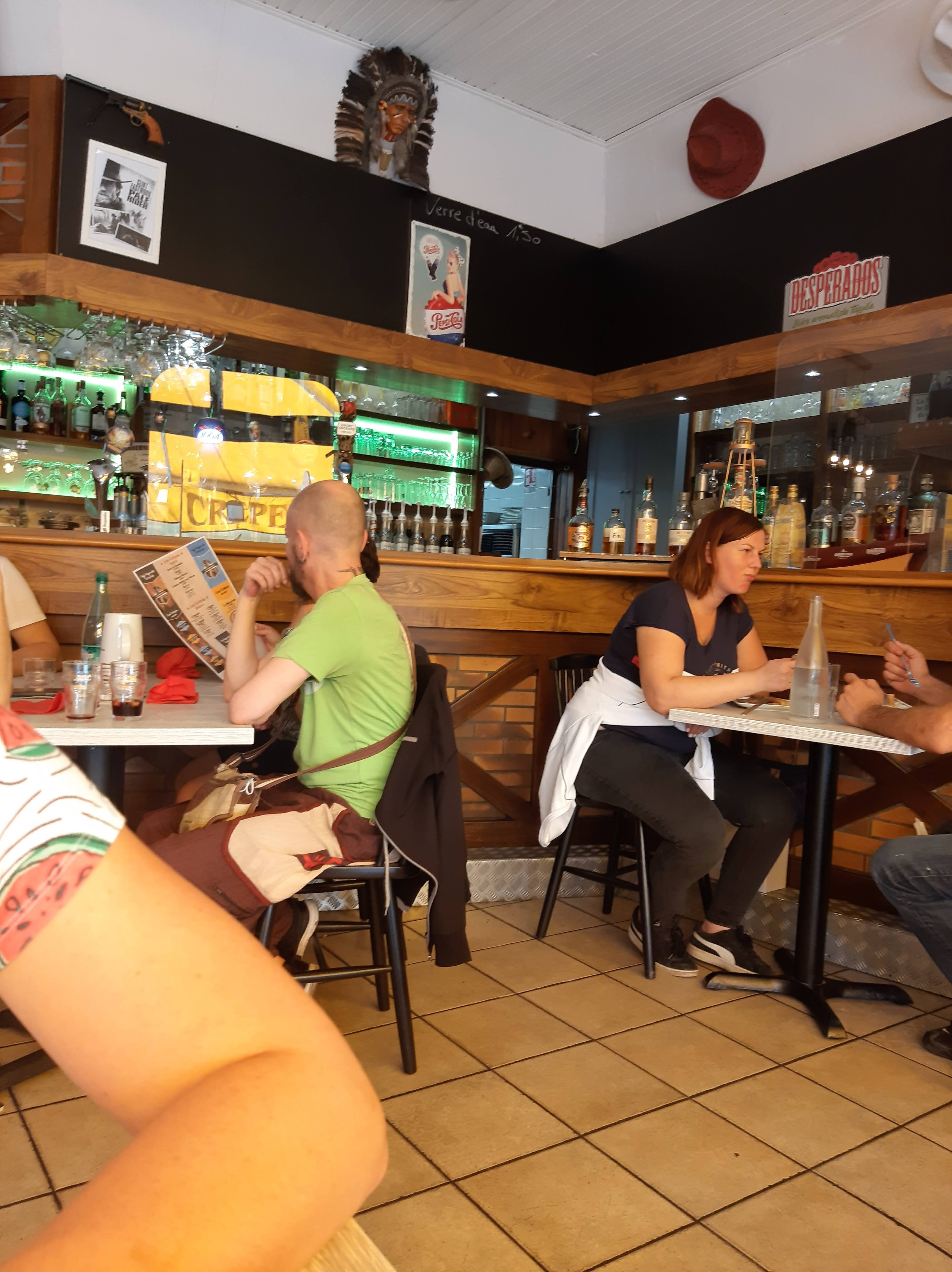 Service et plats satisfaisants. Personnellement, j'ai pris une salade composée et mise à part un peu trop de sauce à mon goût, j'ai apprécié mon repas. Prix abordables et raisonnables. Même peu cher sur les crêpes simples. Prix un peu élevés pour les cocktails et apéritifs. Cadre western sans excès. Peu être qu'une touche de modernité serai appréciable.