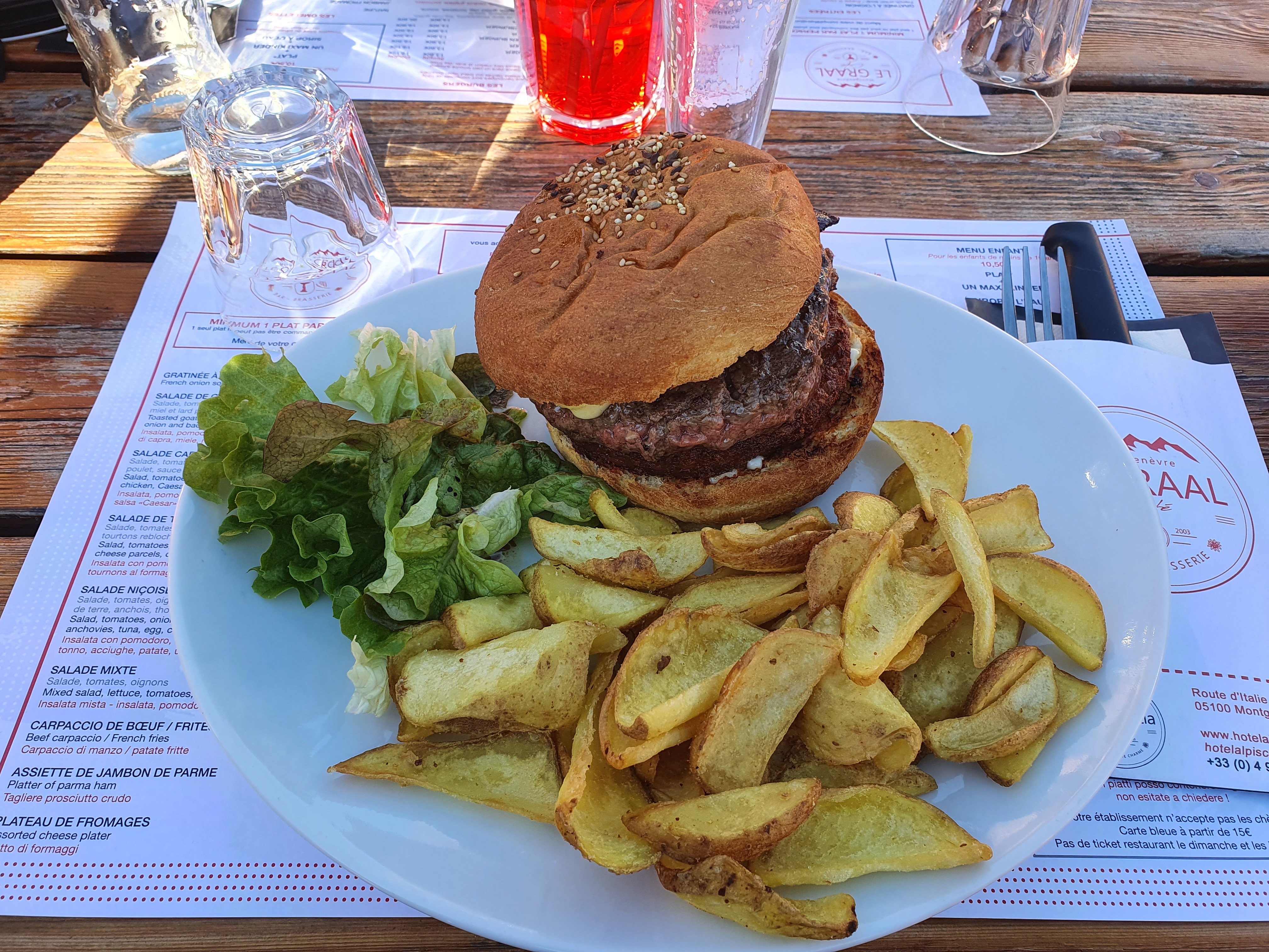 Le restaurant se trouve à Montgenevre, la vue sur le domaine skiable, serveur et serveuse souriants, assiettes copieuses, les hamburgers🍔 maison excellents ainsi que les frites 🍟... Pas trop la cohue fin juin, parcontre pour les grandes vacances, il faudra avoir de la patience.. Allez-y, sans hésité.. 😉