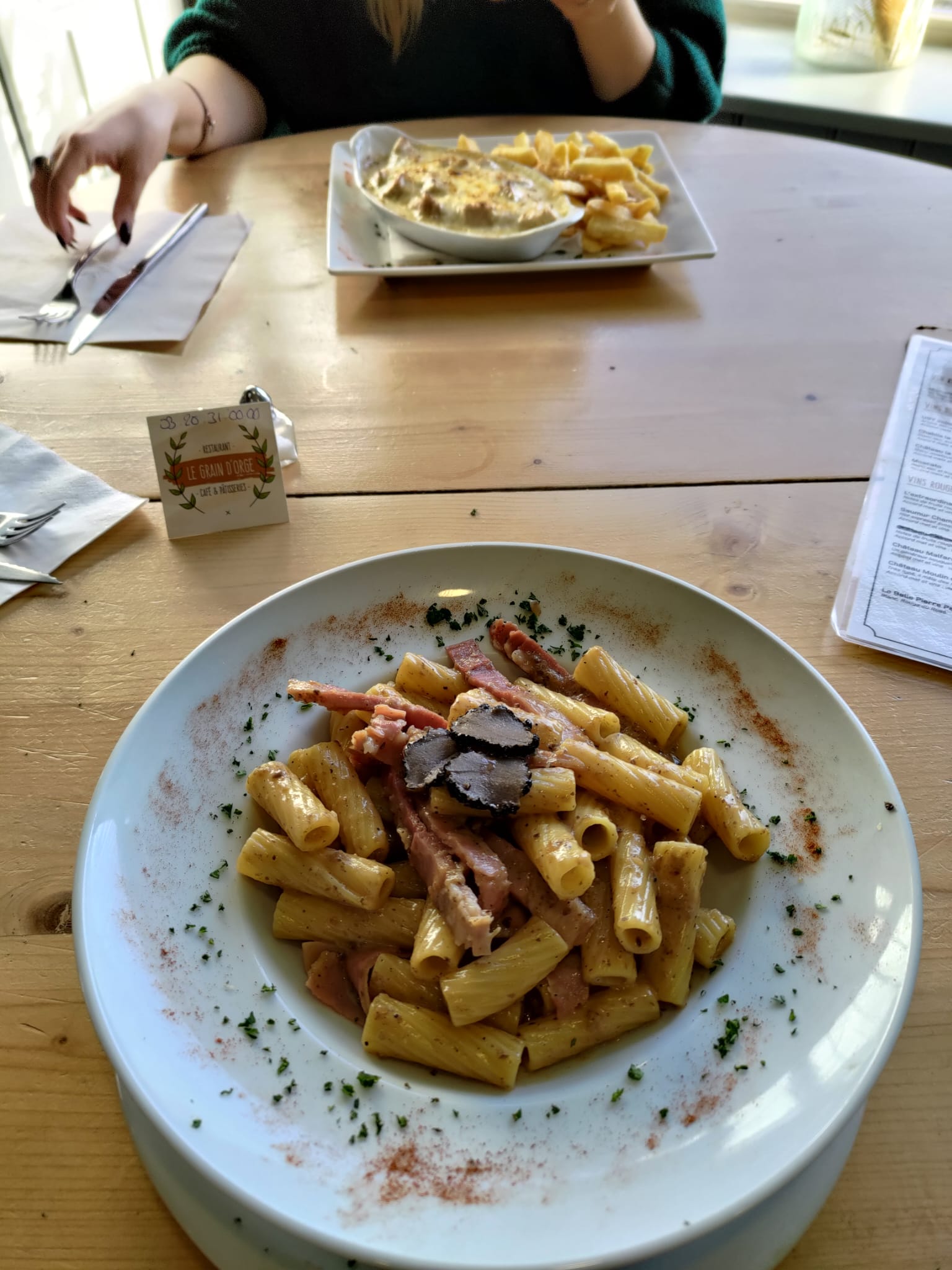Petite découverte sur Leers petite brasserie sympa, on y mange très bien waterzoï de poulet pour ma part et rigatoni jambon cru truffe pour monsieur, serveuse sympa cadre jolie, nous sommes tranquillement dans notre coin, je recommande bon moment.