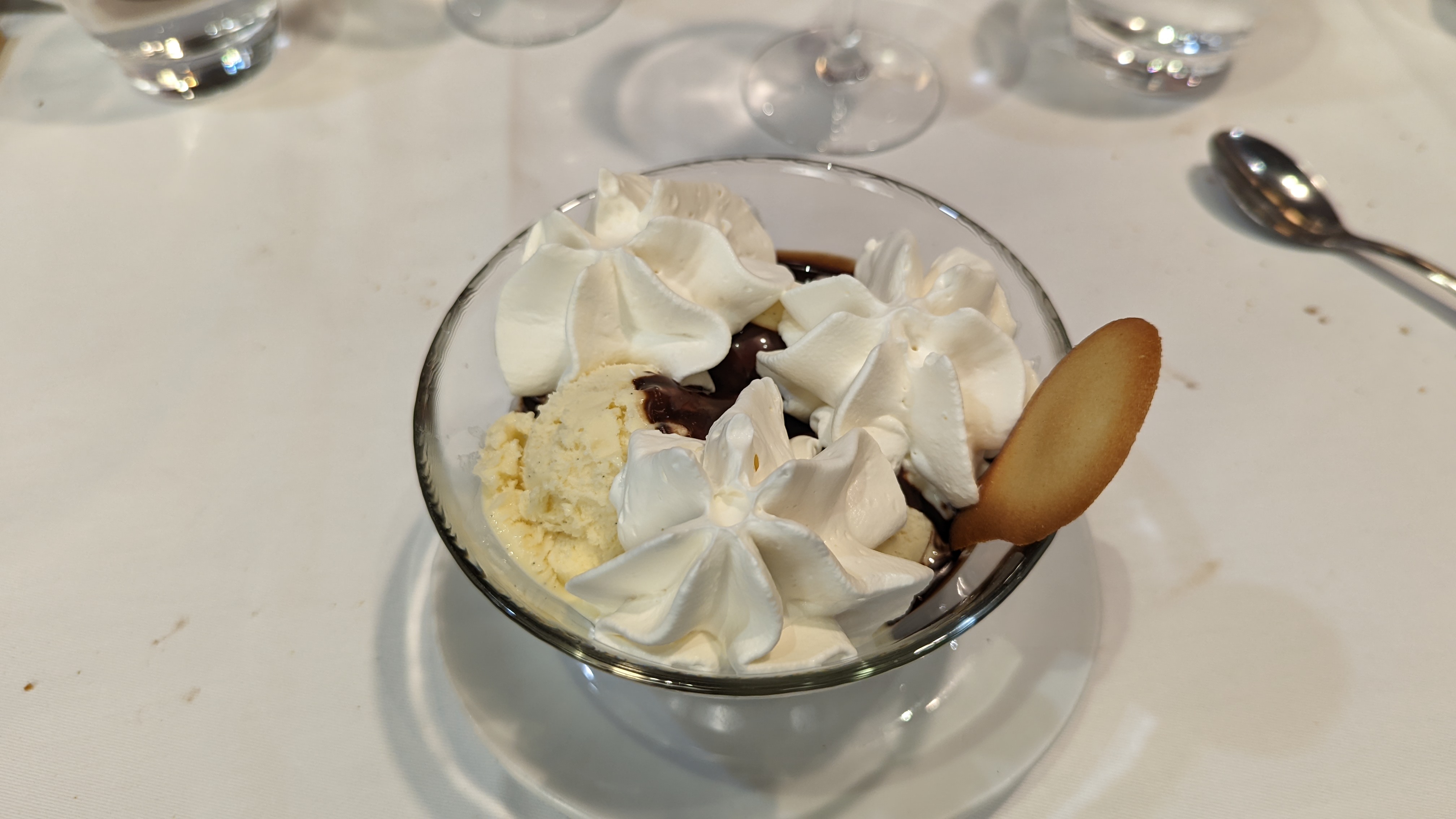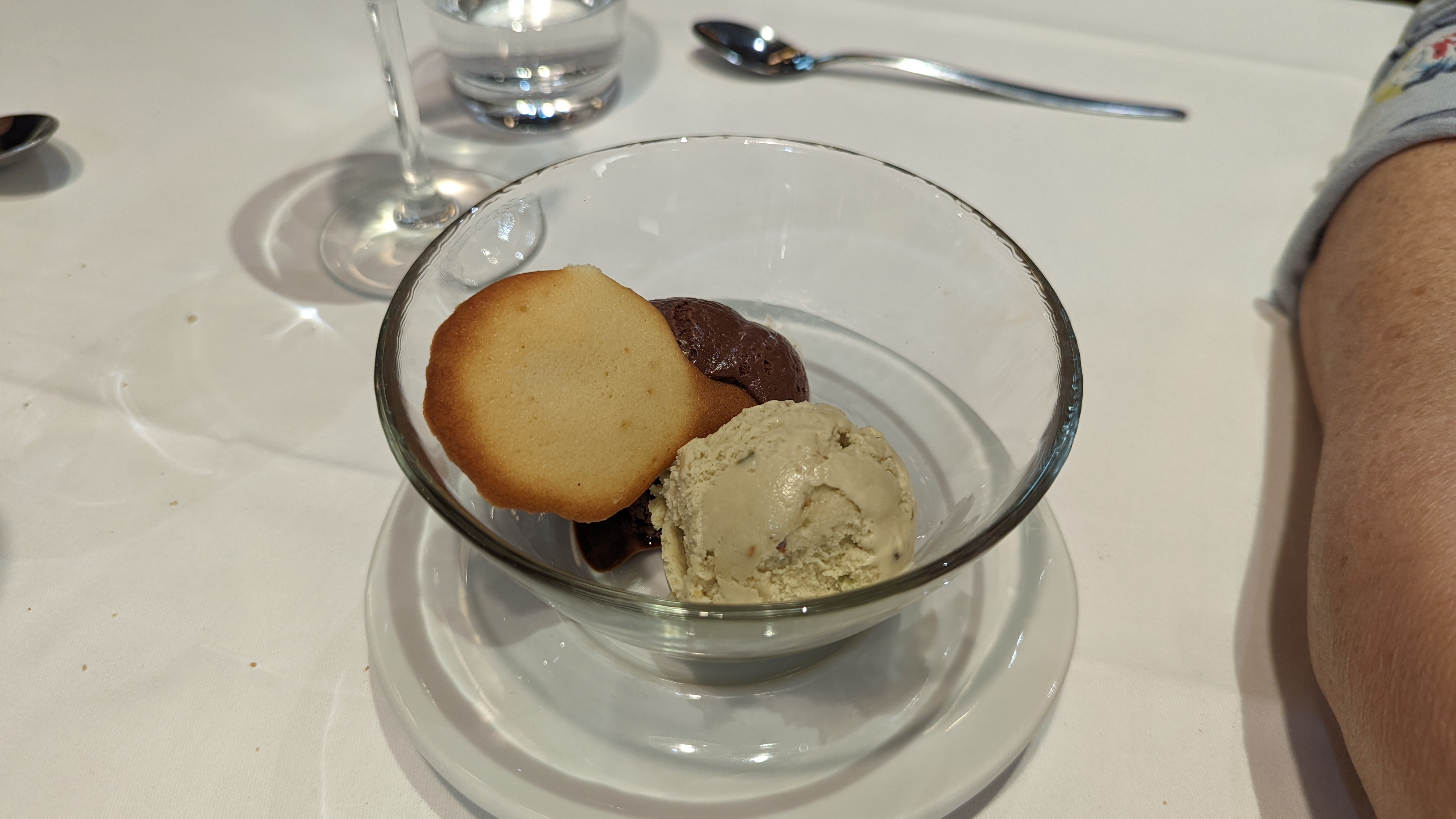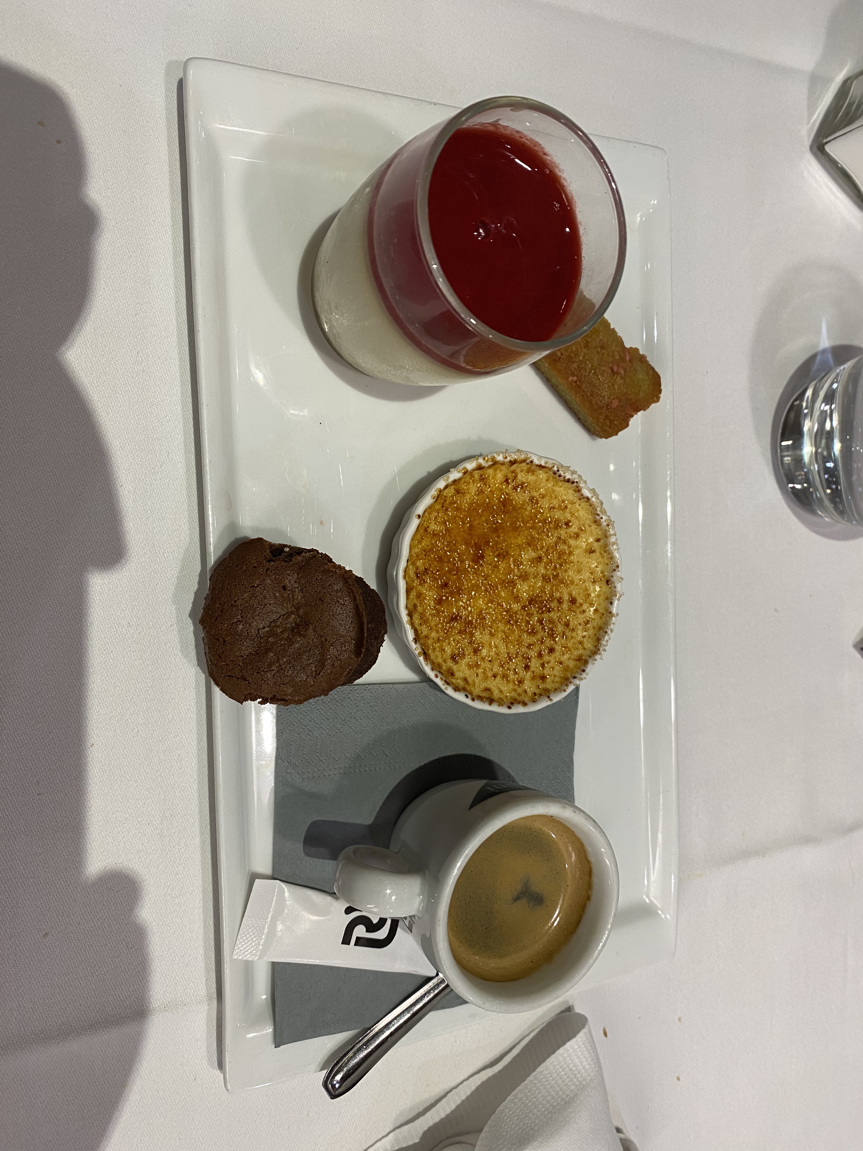 Serveurs sympathiques et souriants. Nourriture très bonne et portions suffisantes. (pile ce qu'il faut pour un bon mangeur et pas trop pour les plus raisonnables). Joli cadre et belles tables. Pensez à réserver. A bientôt et bonjour de Bruxelles ! Photo : Café gourmand