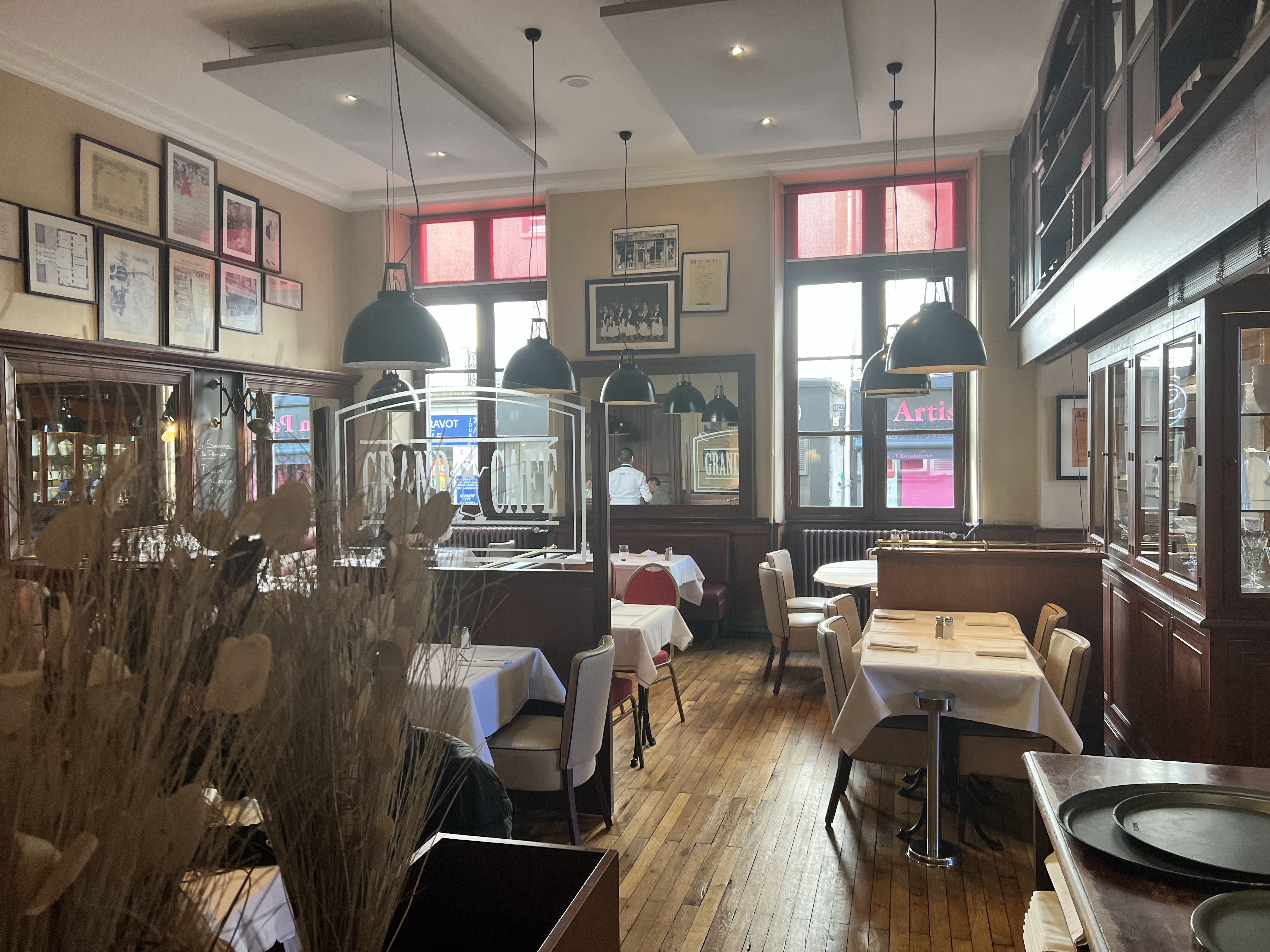 Pour fêter le passage en quatrième d'un de mes enfants et fêter le brevet avec mention très bien de mon autre enfant ☺. Et pour un passage de 2 jours au Puy du Fou. Très bien. Les + : Acceuil. Service. Cadre. Qualité cuisine. Beauté intérieur du Grand café. Situation géographique dans le centre ville de chalet. Les - : assiettes pas assez garnies/Prix élevés. Le serveur oubli facilement les demandes... attente d'une sauce (arrivé de la sauce après plat terminé..) et d'un café durant 1/2h (Du coup café pas pris) Humour serveur un peu décalé... Mais bon sympathique tout de même. Table en bordure de route s'abstenir... Trop de bruit et odeur du diesel pendant le repas boff... Trop proche de la route... dommage.