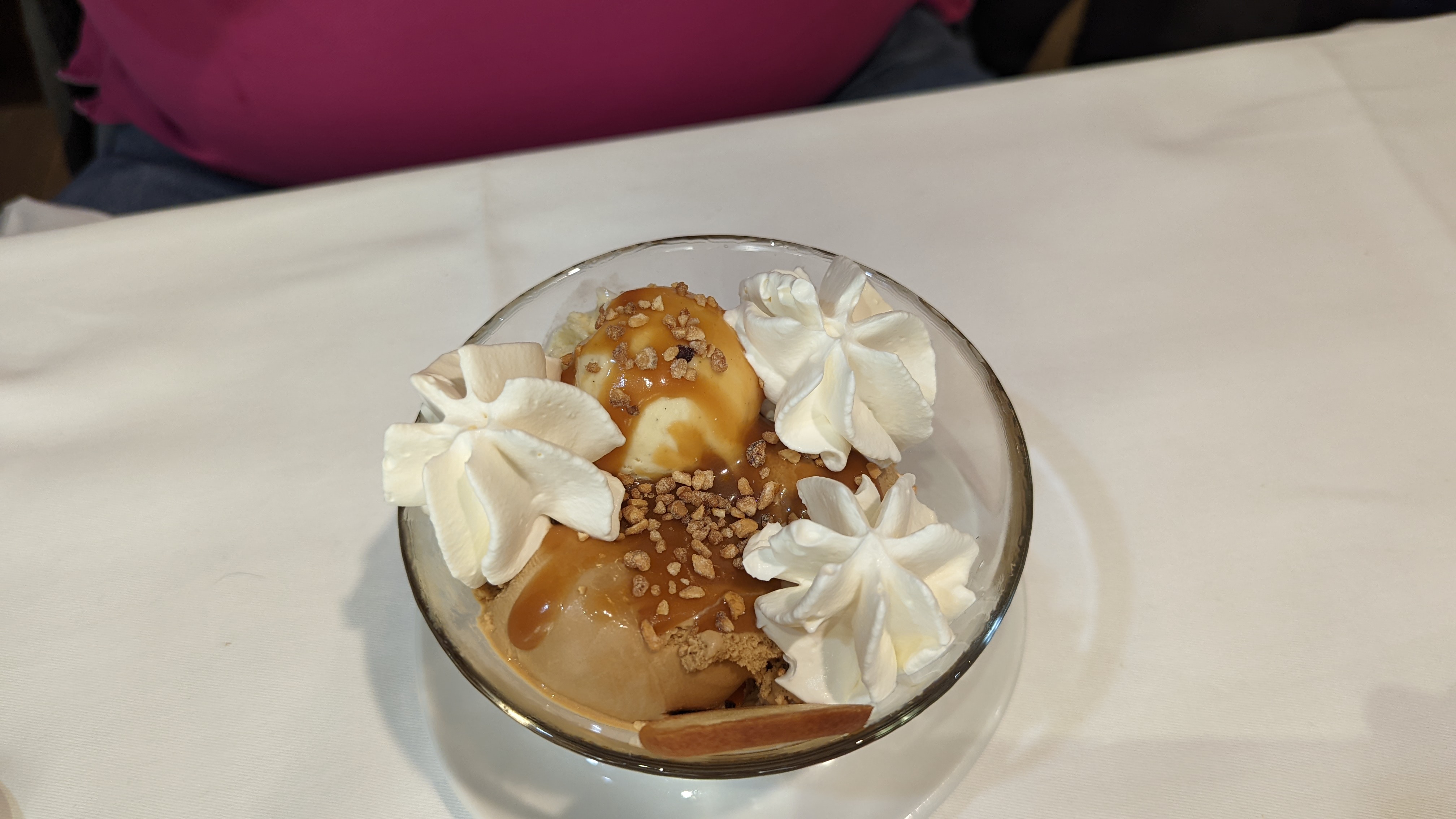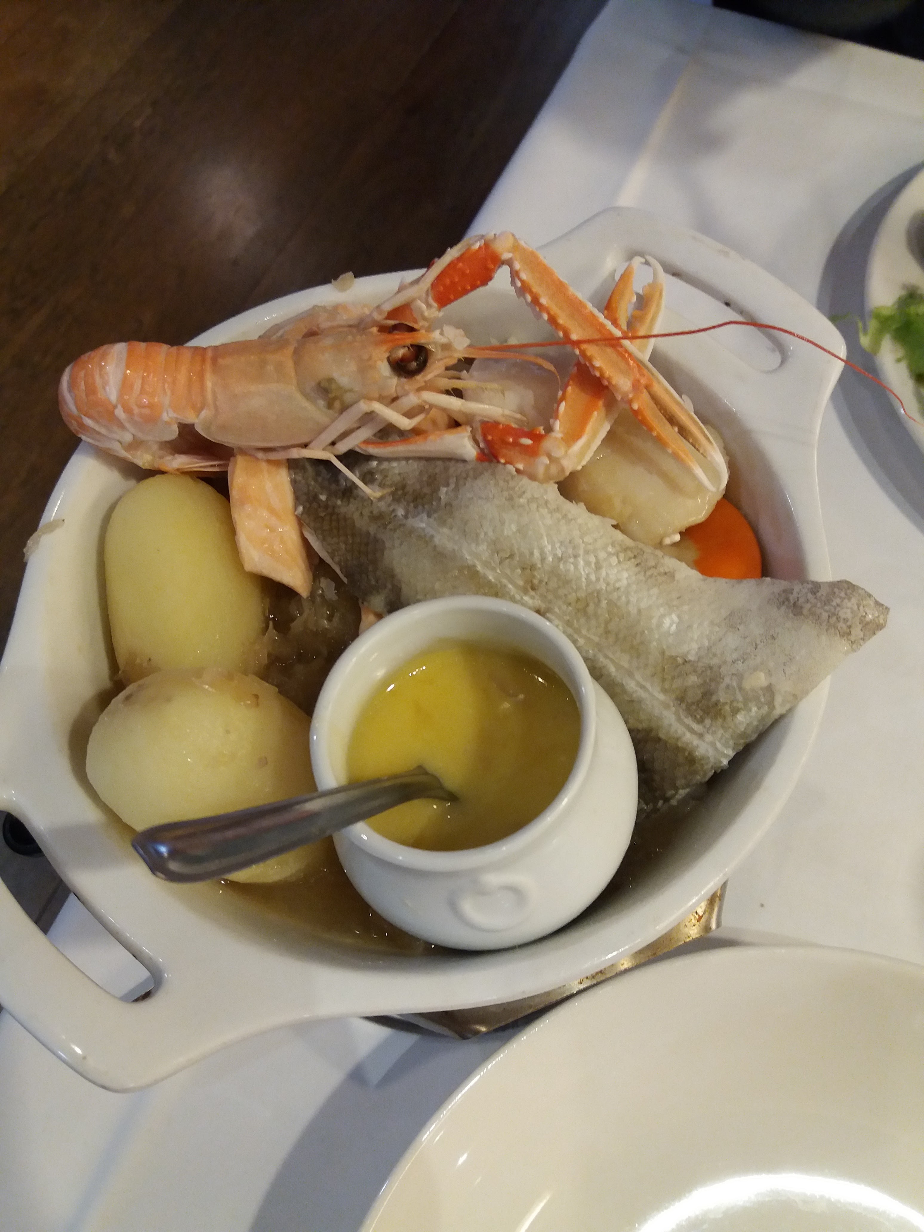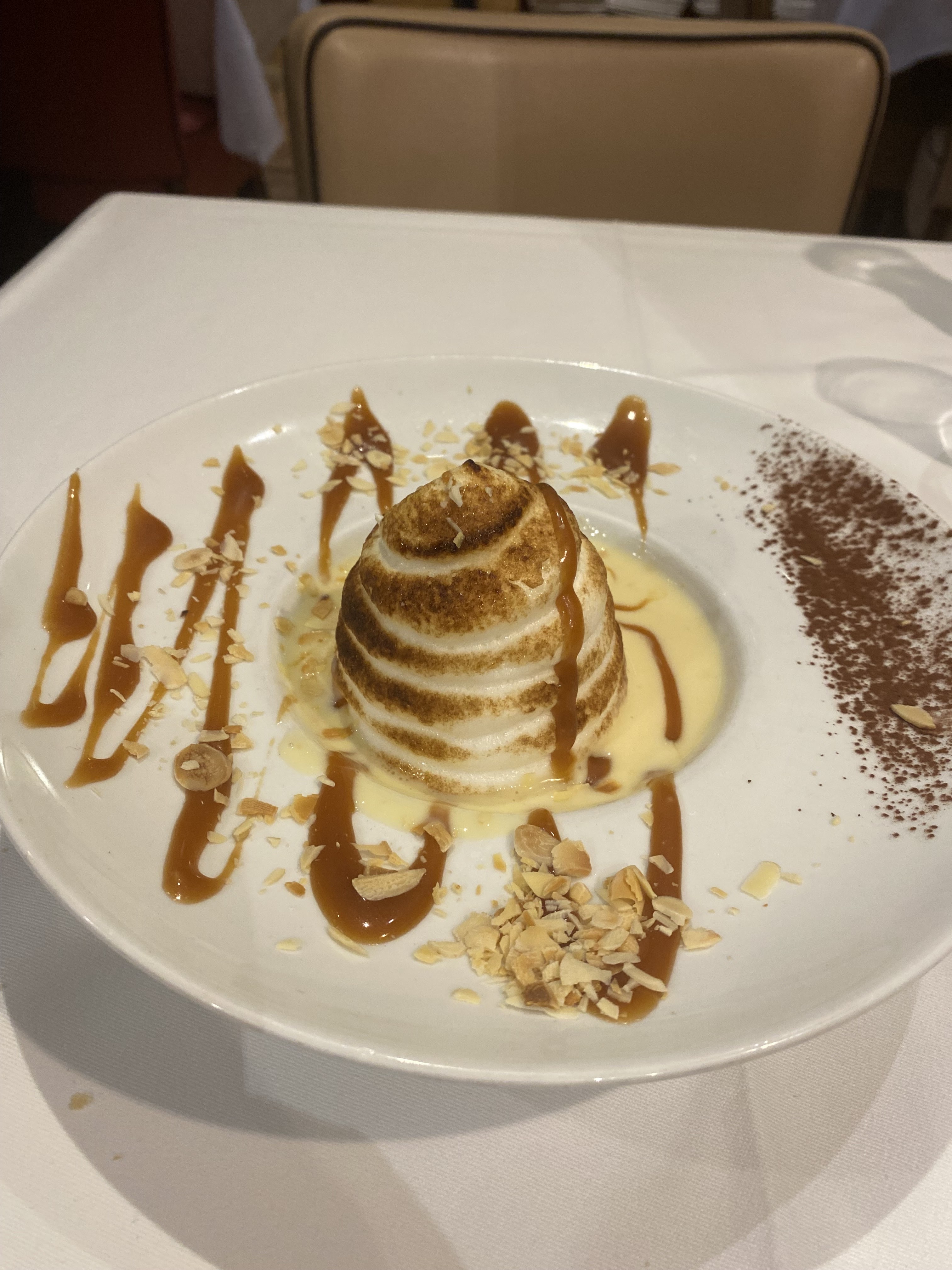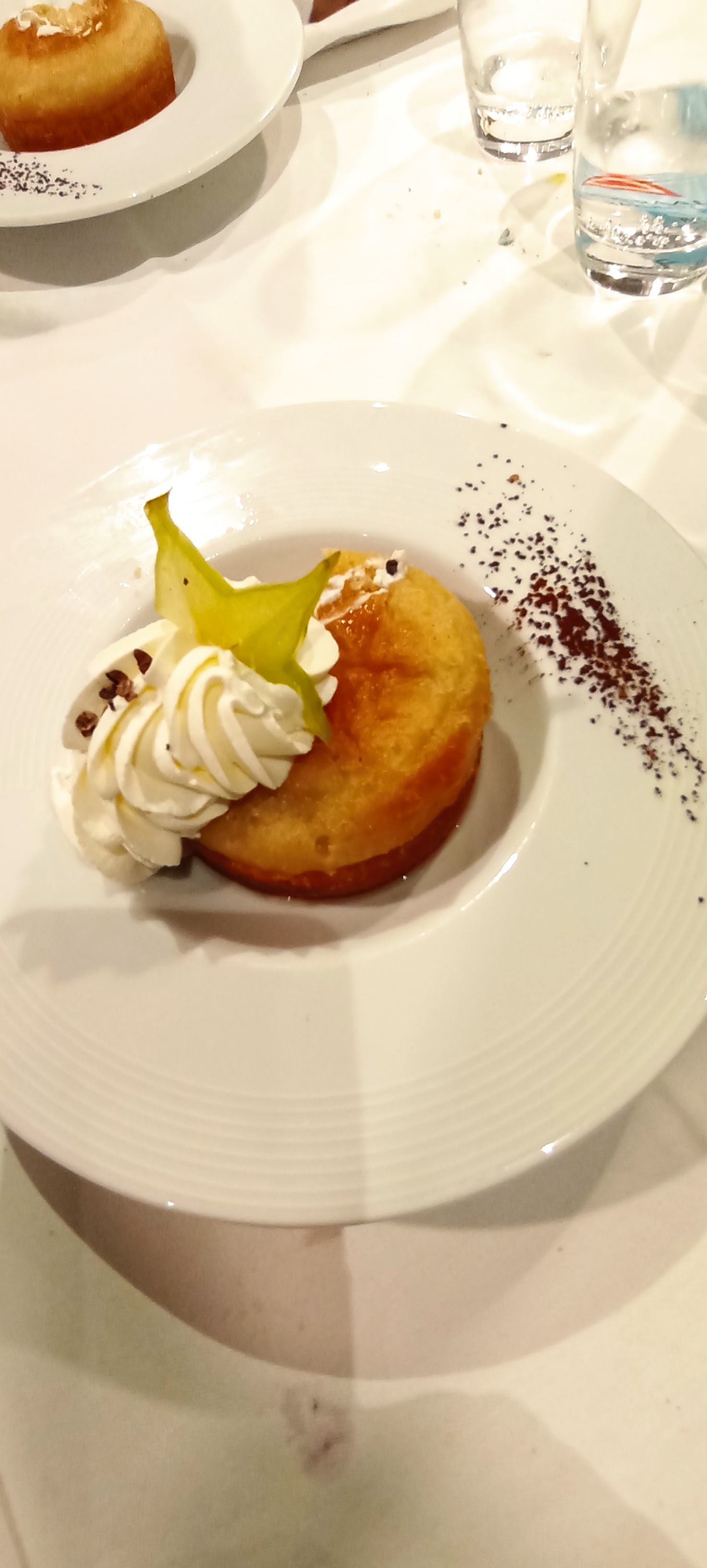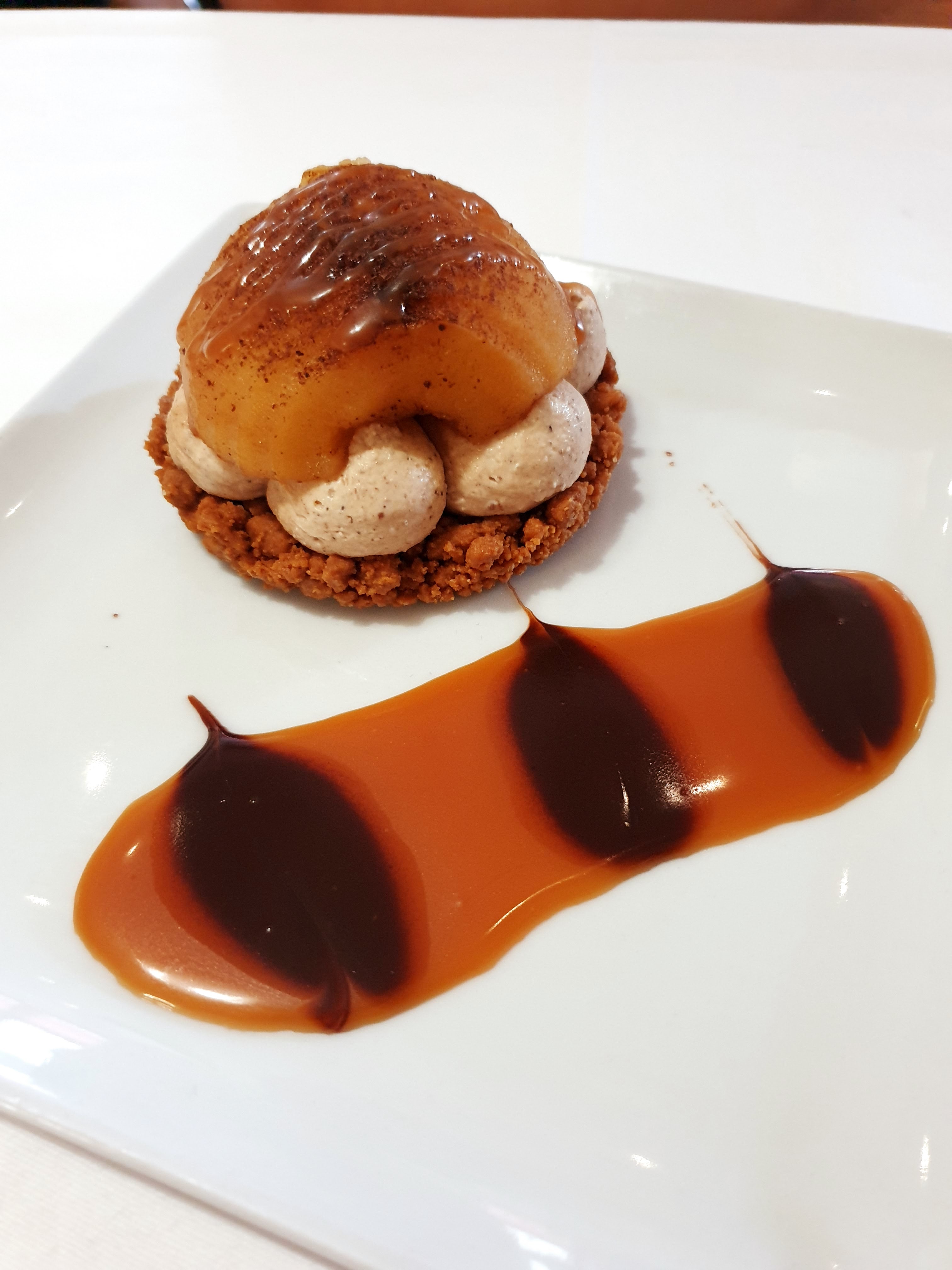 Très bon repas ( ~30€).... Un baba au rhum a essayé car il est excellent. Personnel agréable. Je mets pas 5 étoiles pour 2 choses les tables sont trop proches les unes des autres donc pas trop d'intimité et la vaisselle vieillotte de mon Plat principal..voir photo. Présentation du plat était bien faites mais aurait été plus chic avec une simple assiette blanche. Mais je recommande pour le cadre