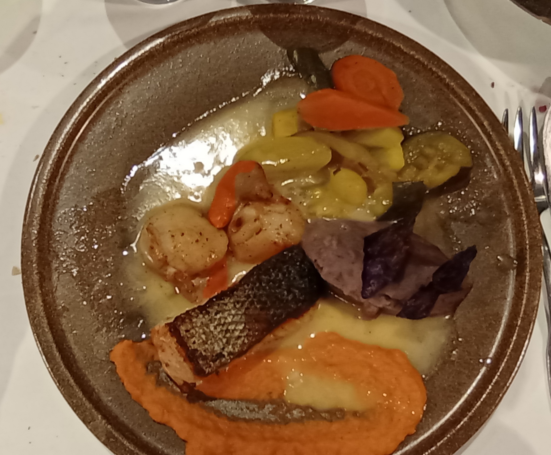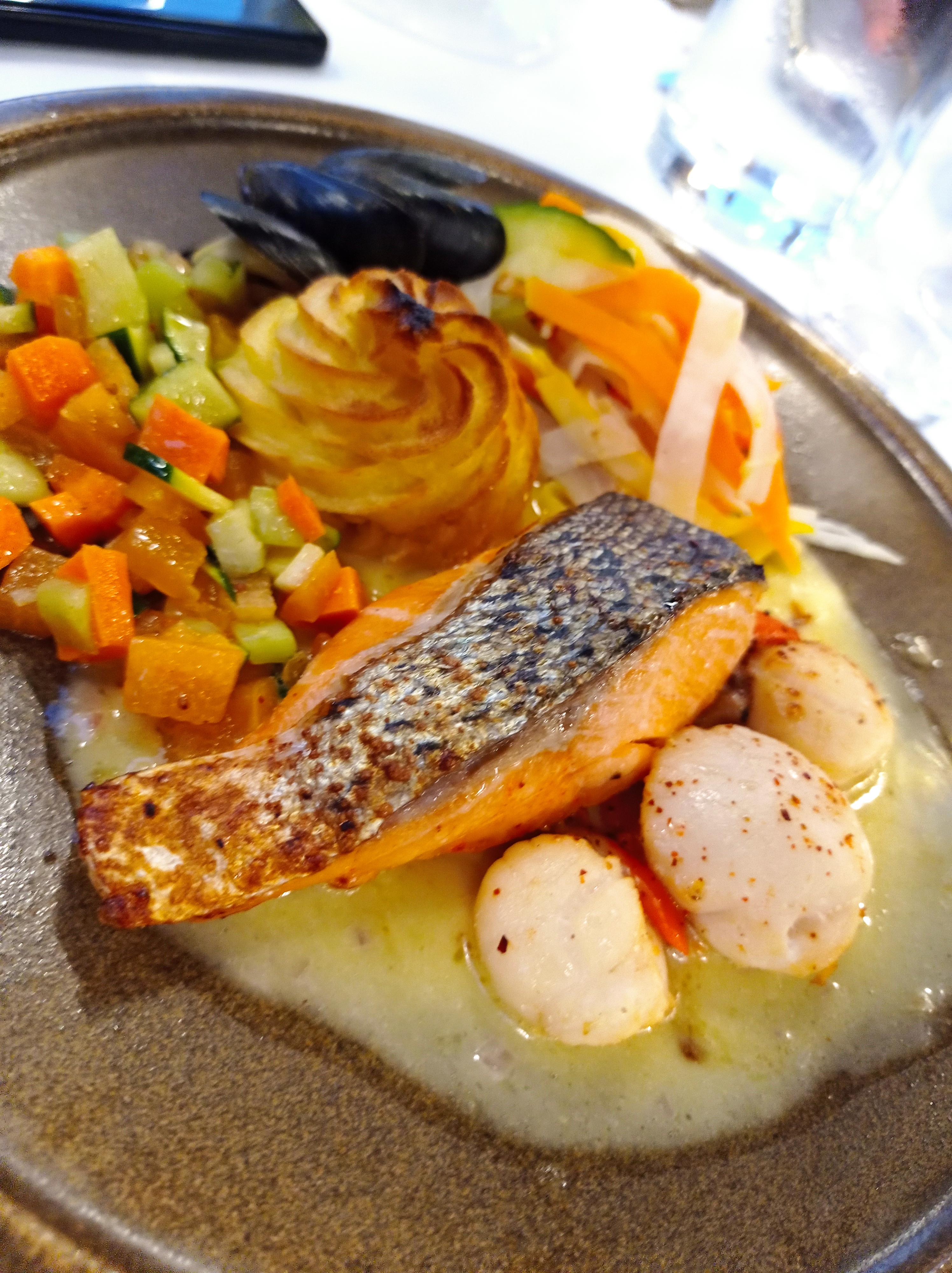 Pas à la hauteur qualité et prix; vins, pain et frites...! Assiette terre mer à améliorer, l'etouffe chrétiens de pain n'est pas conseillé. Champagne Perier bien mais servi suffisamment frais. Service ok. Rapport prix / Qualité trop élevé !!! Dommage...