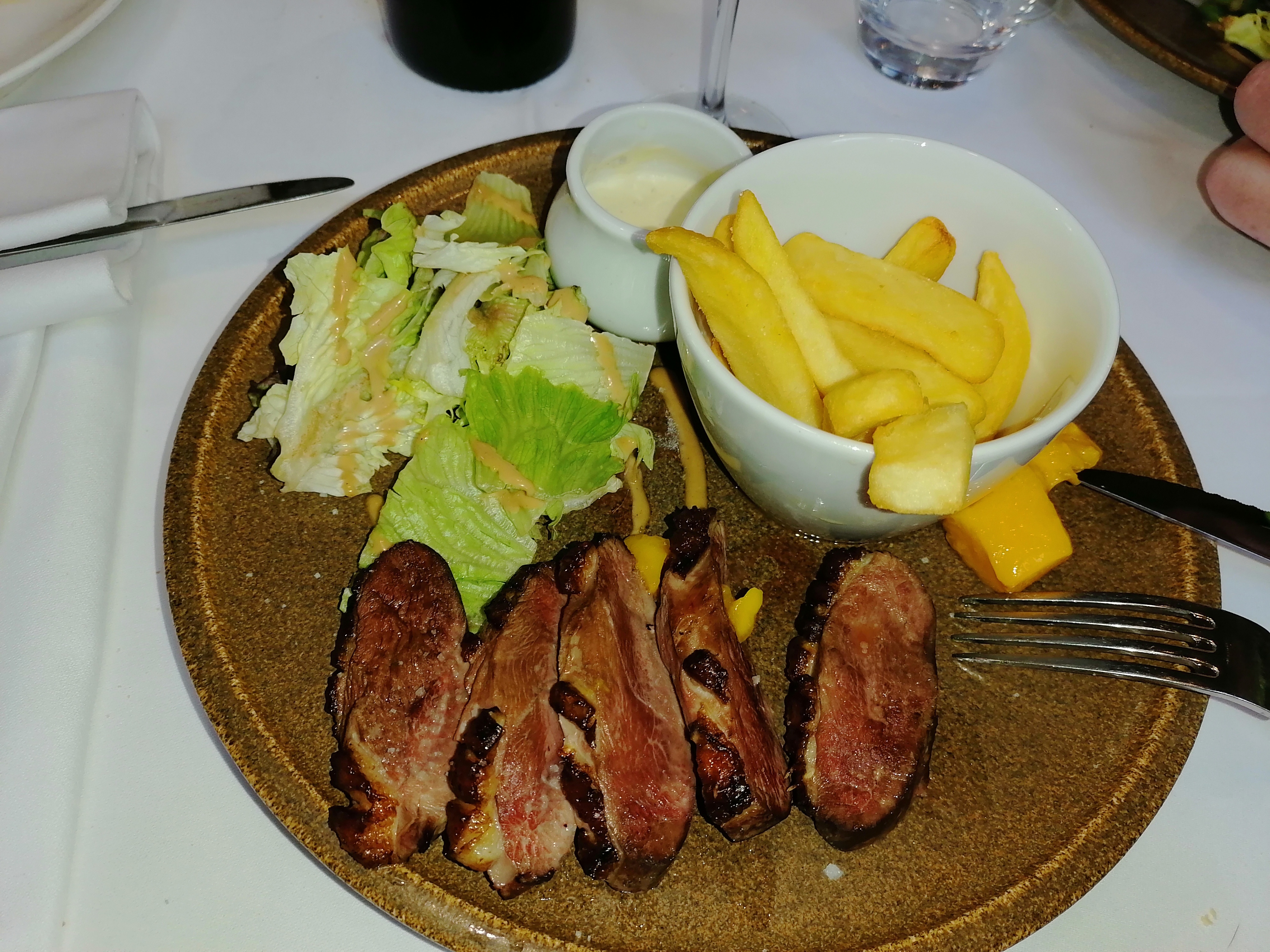 Très bien mangé👍 Leur viande, très tendre et goûteuse ! Personnel très disponible et sympathique... J'ai pu consommer mon vin sans alcool, sans problème, puisque non proposé à la carte... (Après 1 très bon cocktail sans alcool, préparé par leur soin) Cadre et terrasse très agréable...