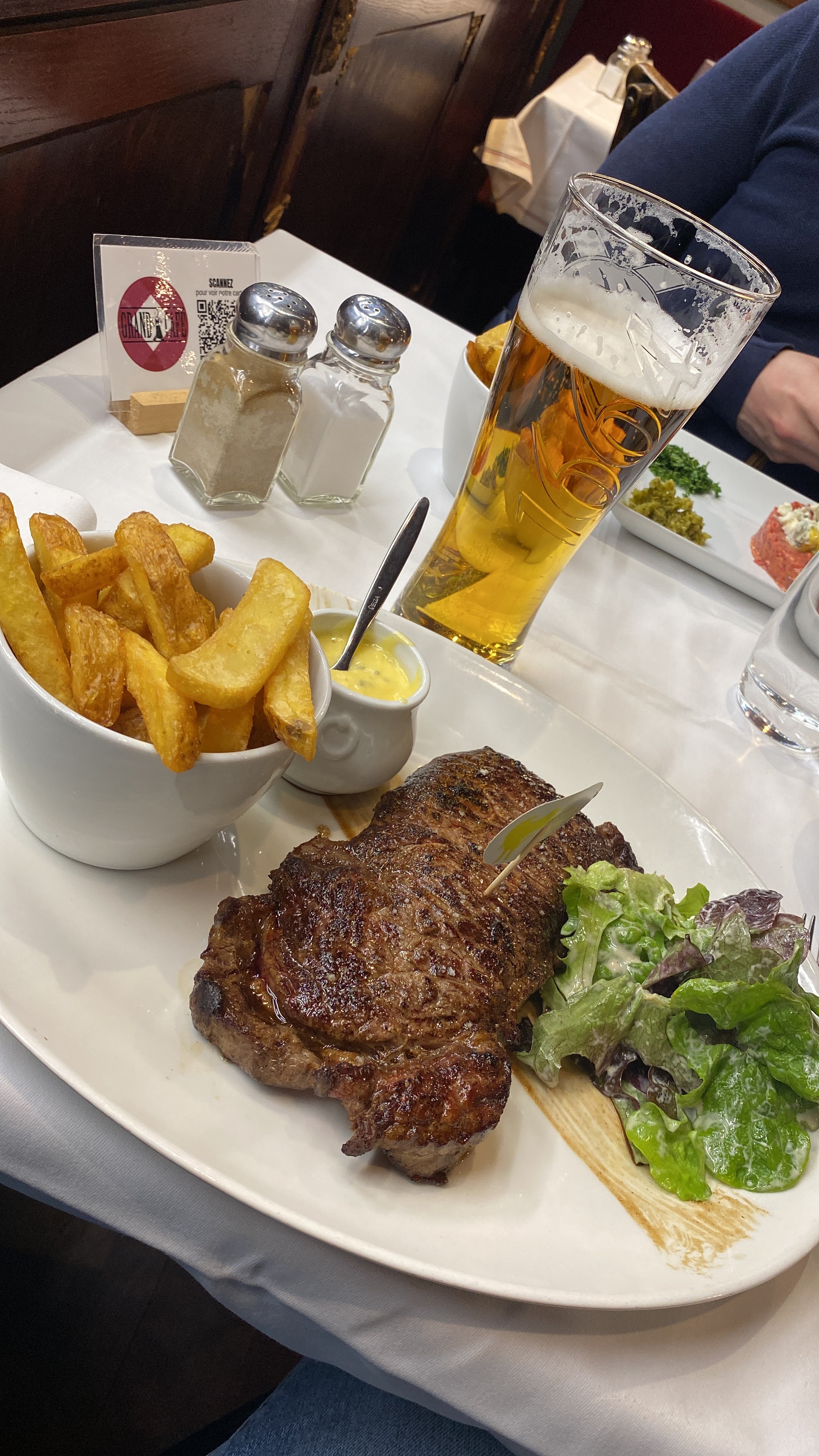 Super moments avec mon ami au grand café, excellente côté de bœuf et frites à volonté, très bon Saumur pour arroser ça. Service super, hormis le coup de pression à 14h pour choisir son dessert (du coup pas de dessert mais un bon rhum)