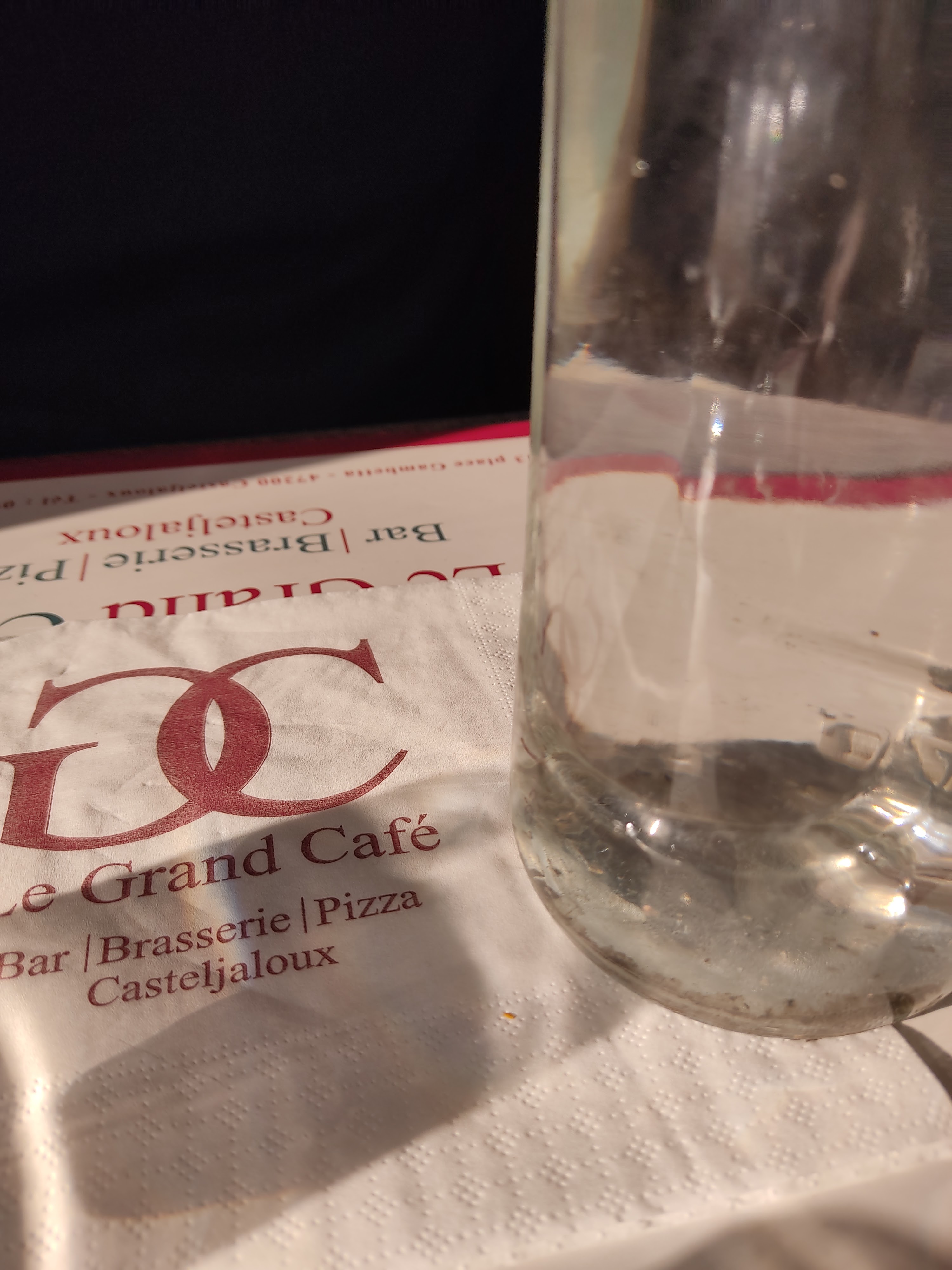 Samedi soir, 22h20 encore pas mal de tables en terrasse qui finissent leurs dîners, j'y suis allé la veille à la même heure... 'Désolé on ne sert plus ! Mais je souhaite un verre de vin! Ah ben non, je suis tout seul en salle/terrasse et j'ai 1 personne en cuisine. A priori, pas d'efforts, pas envie de faire du chiffre d'affaire, Casteljaloux, 19 août, c'est pas Biscarrosse plage ou Ibiza... Les concurrents ont été très contents de m'accueillir et j'ai pris 3 verres. Faudra pas vous plaindre, et dommage pour les équipes du matin et du vendredi soir qui étaient plus avenantes