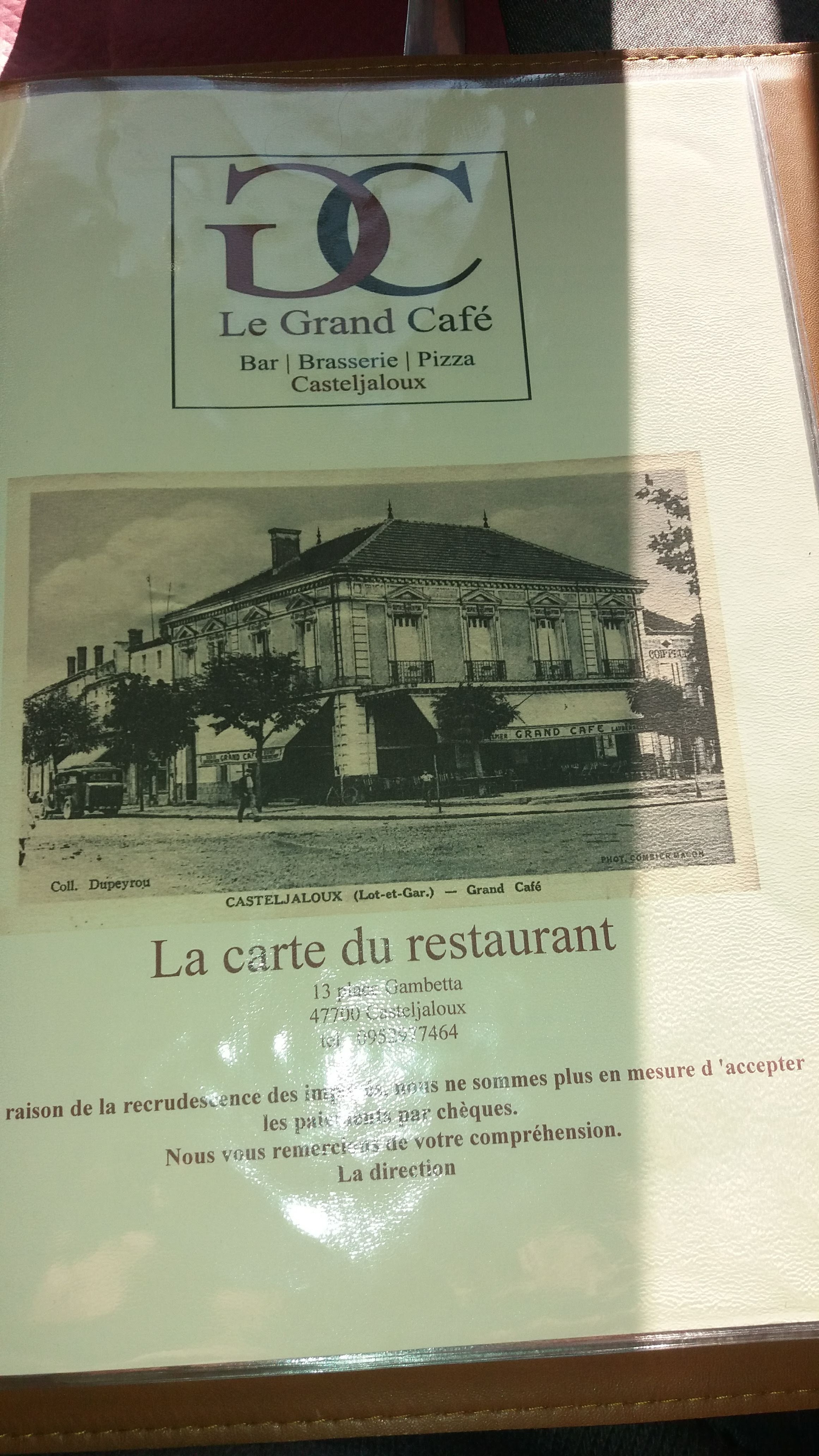 Voici toutes les informations sur le Brasserie LE GRAND CAFE qui ce trouve au 13 Pl. Gambetta, 47700 Casteljaloux (47). Sur cette fiche vous trouverez les photos, l'adresse, les horaires d'ouverture, le numero de téléphone et les avis clients.Vous pouvez églement rédiger un avis si vous le souhaitez en bas de page.