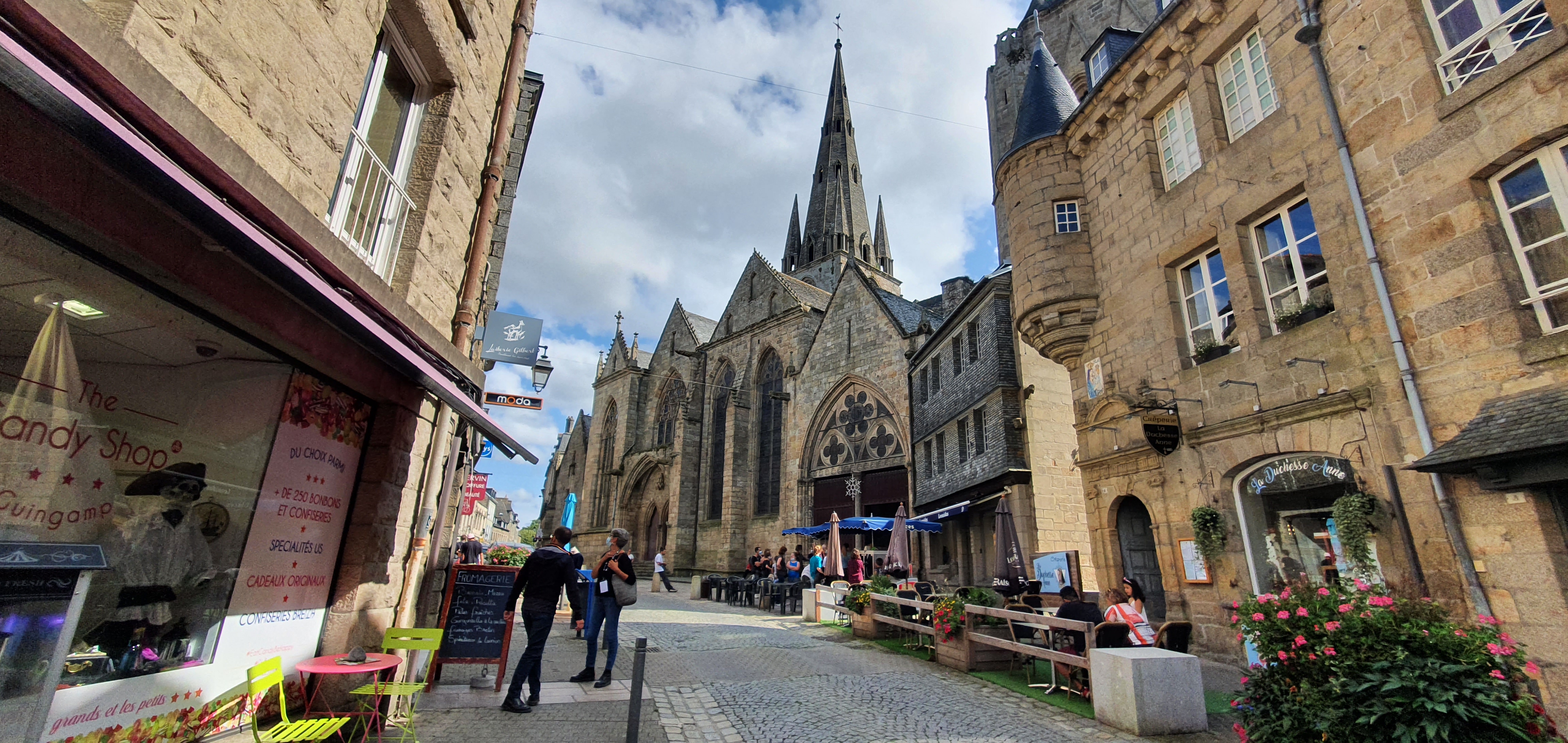Guingamp est fortement recommandé avec son ancienne prison et son église. Le Grand Café nous a reçu avec hospitalité même si nous n'avions pas réservé. Les employés et autres touristes ont dégusté un confit de canard spécialement préparé avec de la purée de pommes de terre.
