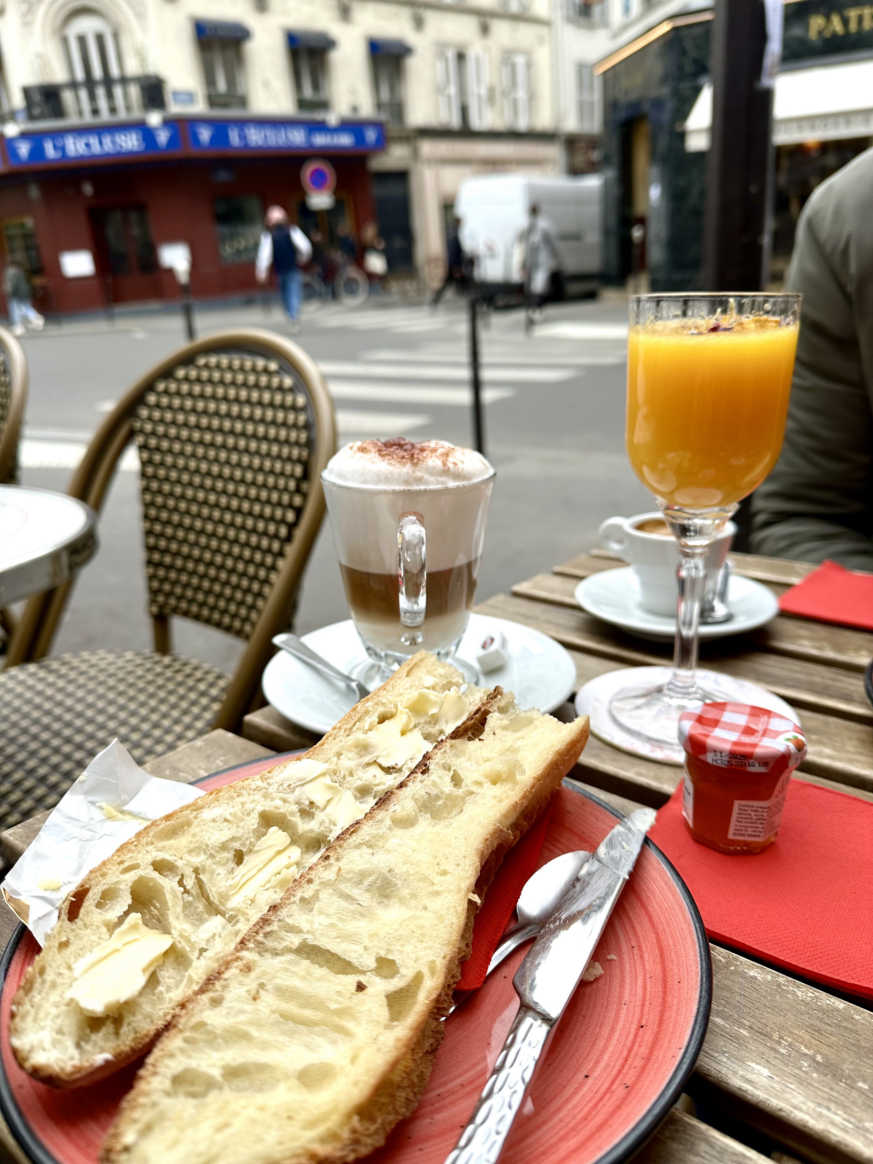 Excellent petit déjeuner/brunch a 21€, très bonne portion avec pain, croissant, confiture beurre, chaucolat chaud, jus d'orange pressé, omelette salade, fromage blanc muesli, tout ça en bonne quantité ! Je suis jamais rassasié dans les restos a Paris mais pour une fois j'ai vraiment été repu ! C'était vraiment Parfait, l'accueil très bien, le cadre très bon... bref j'ai juste hâte d'y retourner
