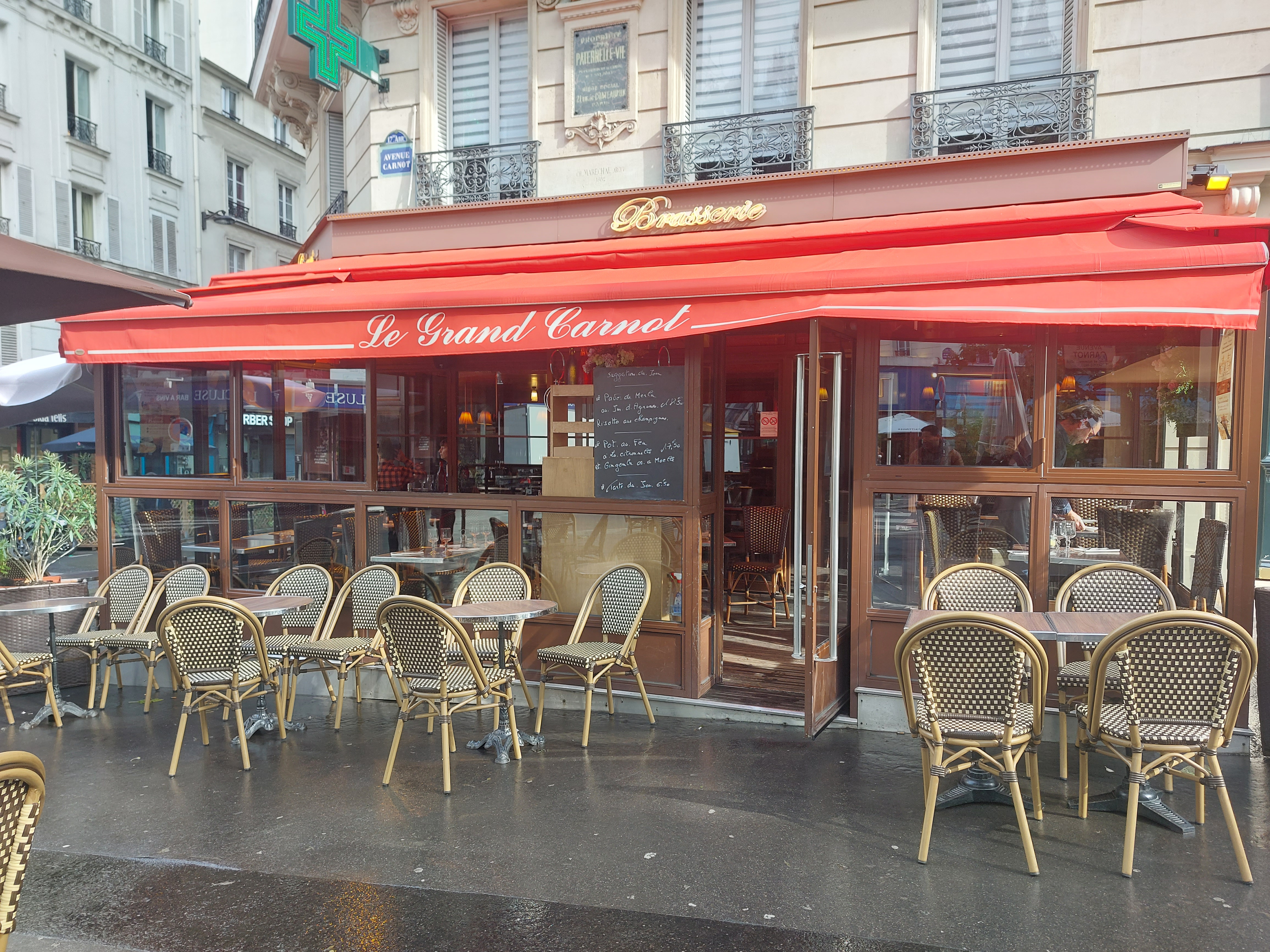 Voici toutes les informations sur le Brasserie Le Grand Carnot qui ce trouve au 32 Av. Carnot, 75017 Paris (75). Sur cette fiche vous trouverez les photos, l'adresse, les horaires d'ouverture, le numero de téléphone et les avis clients.Vous pouvez églement rédiger un avis si vous le souhaitez en bas de page.