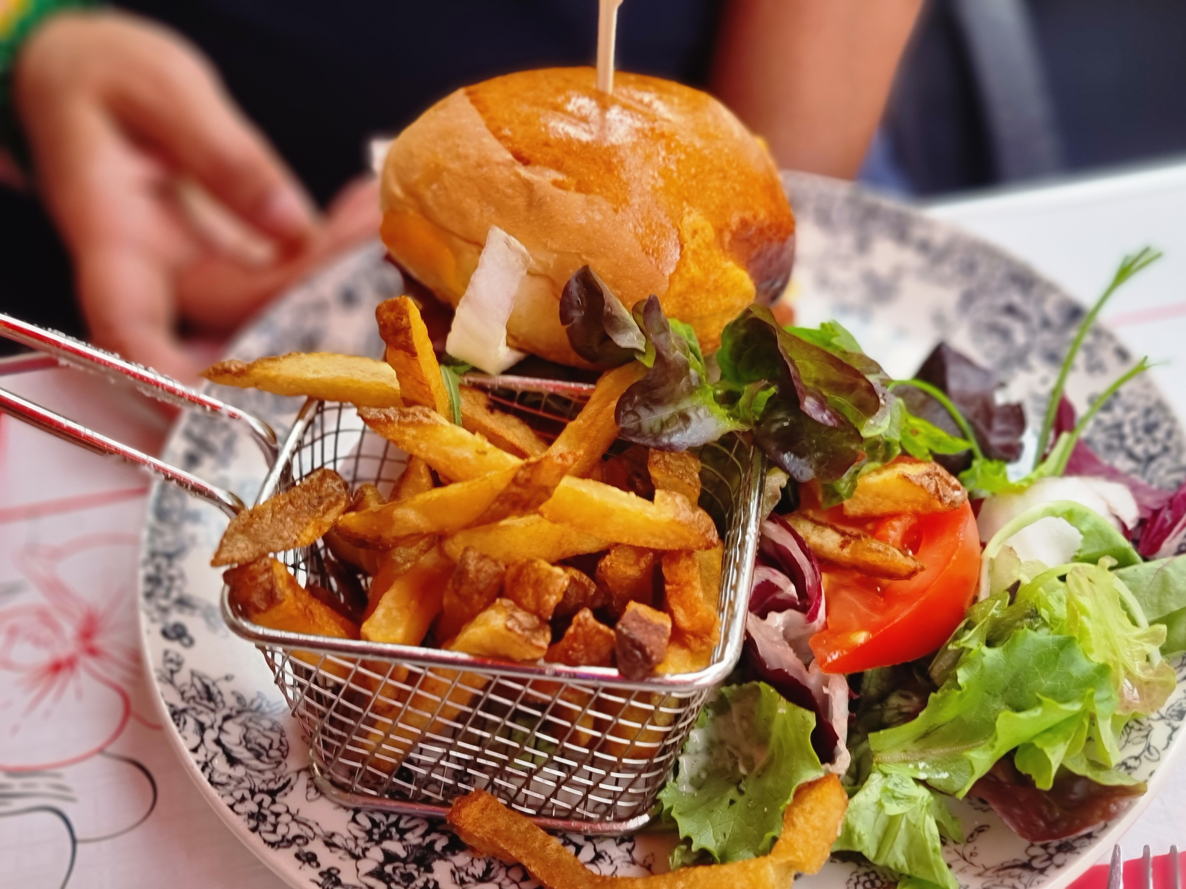 La nourriture est vraiment mauvaise. Salade toasts fanés frites brûlées vieilles