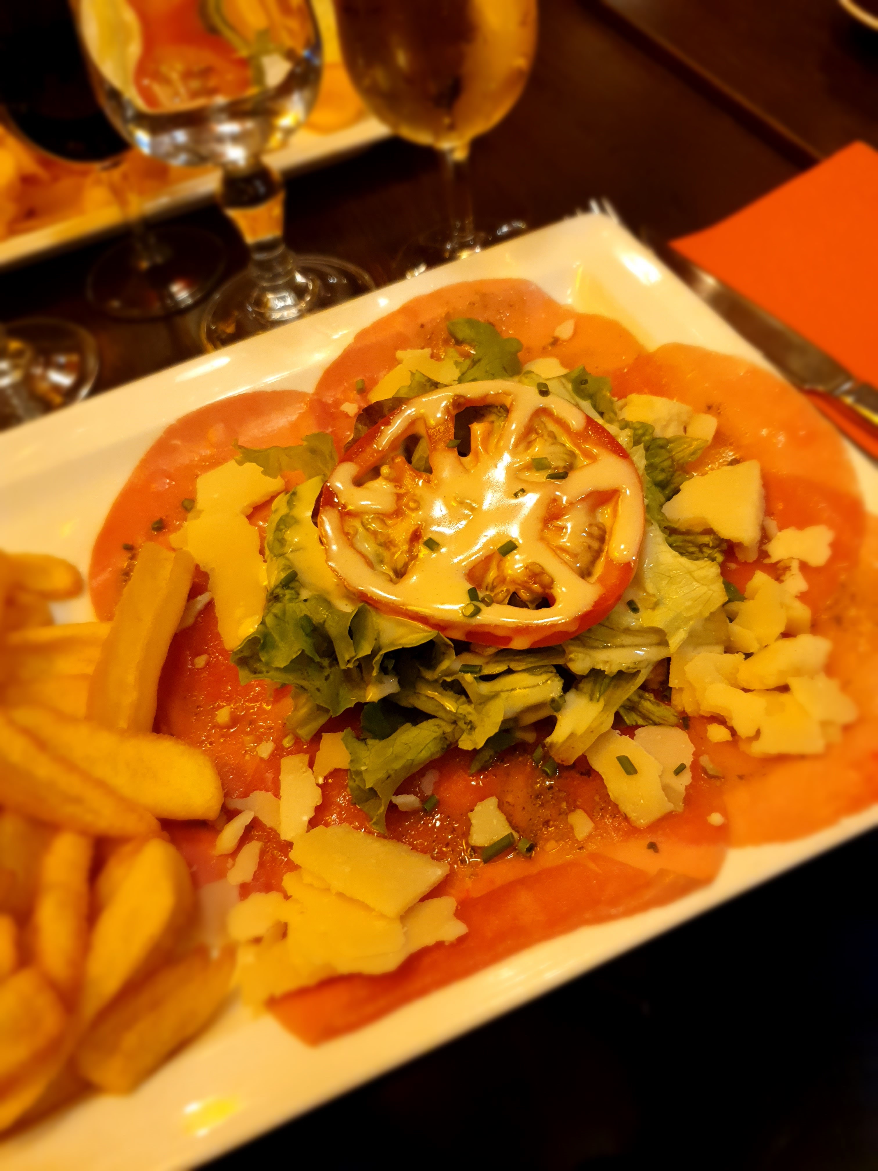 Nous habitions près du Grand Carnot, nous y passons donc deux soirées. Les cocktails et les spritzers sont bons, nous avons adoré les pâtes aux truffes, le tatar de bœuf était un peu insipide et beaucoup trop de viande, la portion pourrait être bien plus petite.