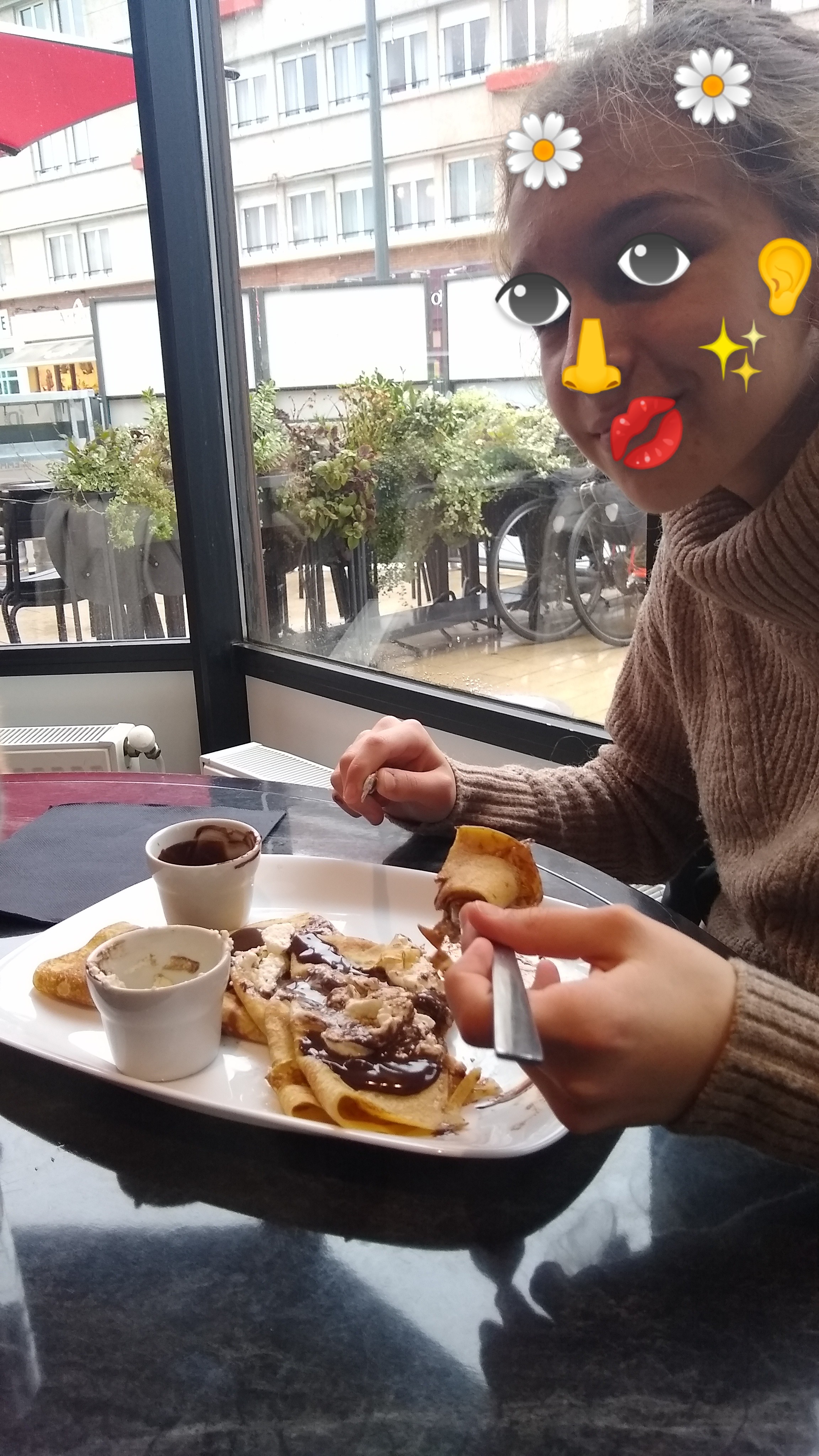 Ravies de nous réchauffer cette après midi pluvieuse devant un chocolat chaud et une bonne crêpe et une gaufre, les 2 étaient manifestement cuites depuis plusieurs jours et réchauffées au micro-onde, rendant la crêpe tellement caoutchouteuse qu'elle en était inmangeable ! La gaufre manquait de croustillant. Quelle déception !