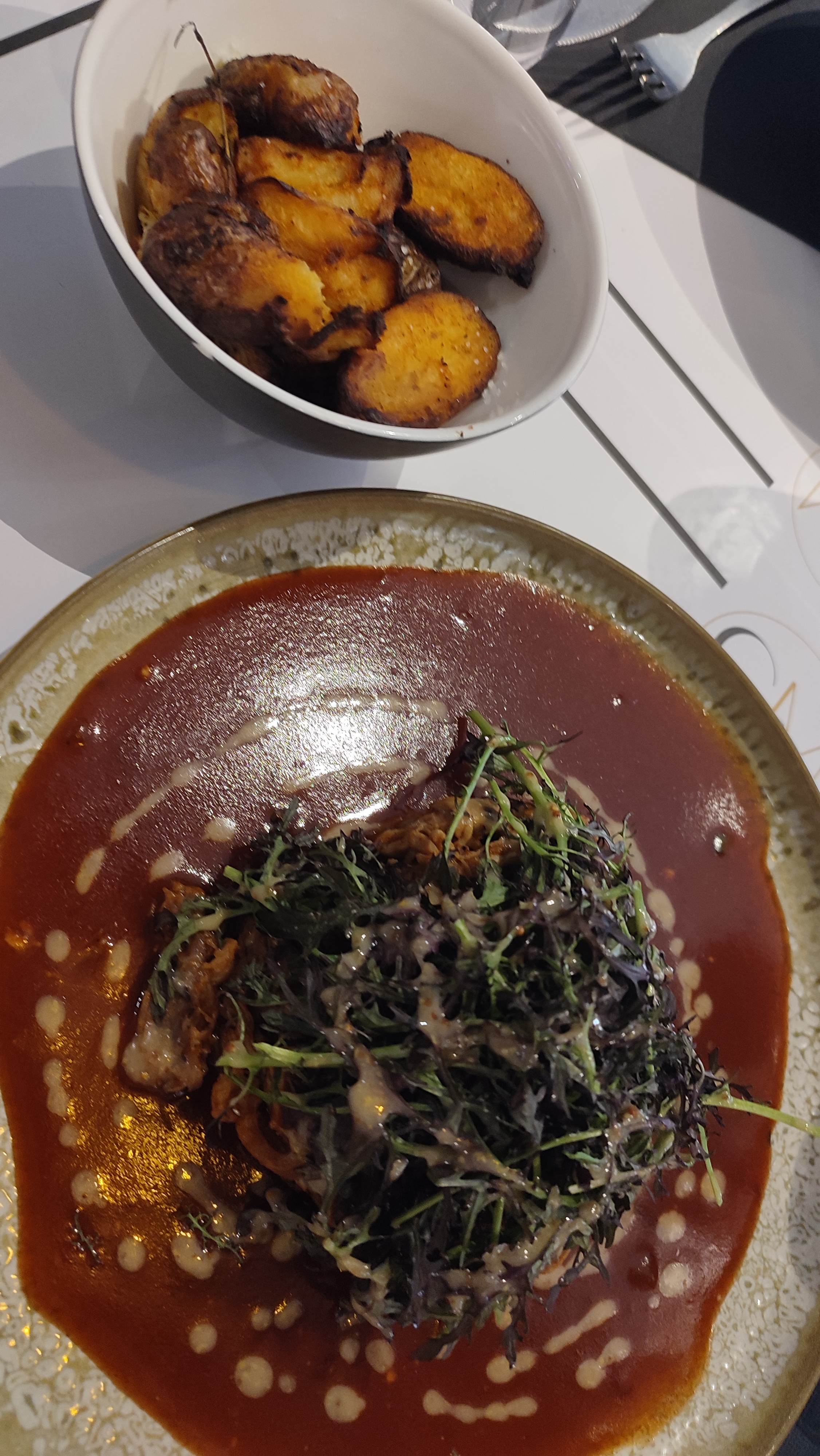 Bonjour L'entrée couteaux poêles trop caoutchouteux et beignent dans l'huile. Le plat effilochée de boeuf nage dans la sauce. Un peu déçu du menu étant donné les prix. À revoir