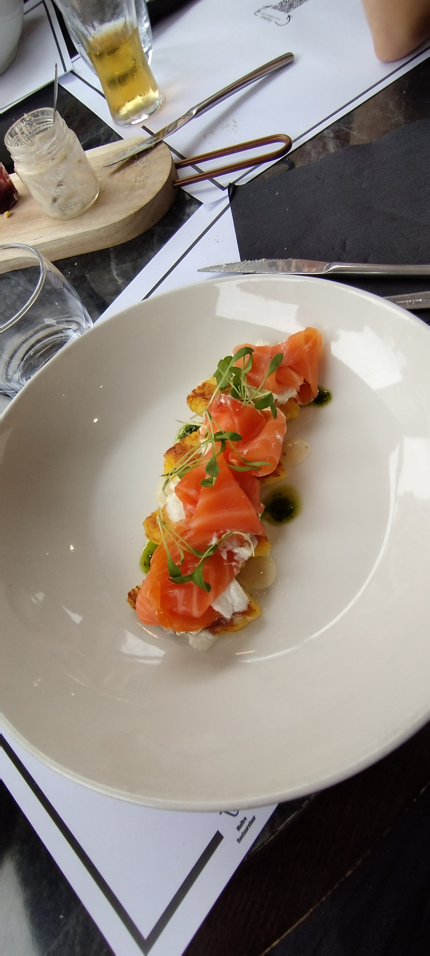 Nous avons passé un bon moment L'accueil est chaleureux, le jeune serveur à l'étage est très sympathique bien qu'un peu stressé. Il a envie de bien faire et ça se sent. Je recommande +++ Le plat coeur de saumon est un pur régal. Nous y reviendrons avec plaisir