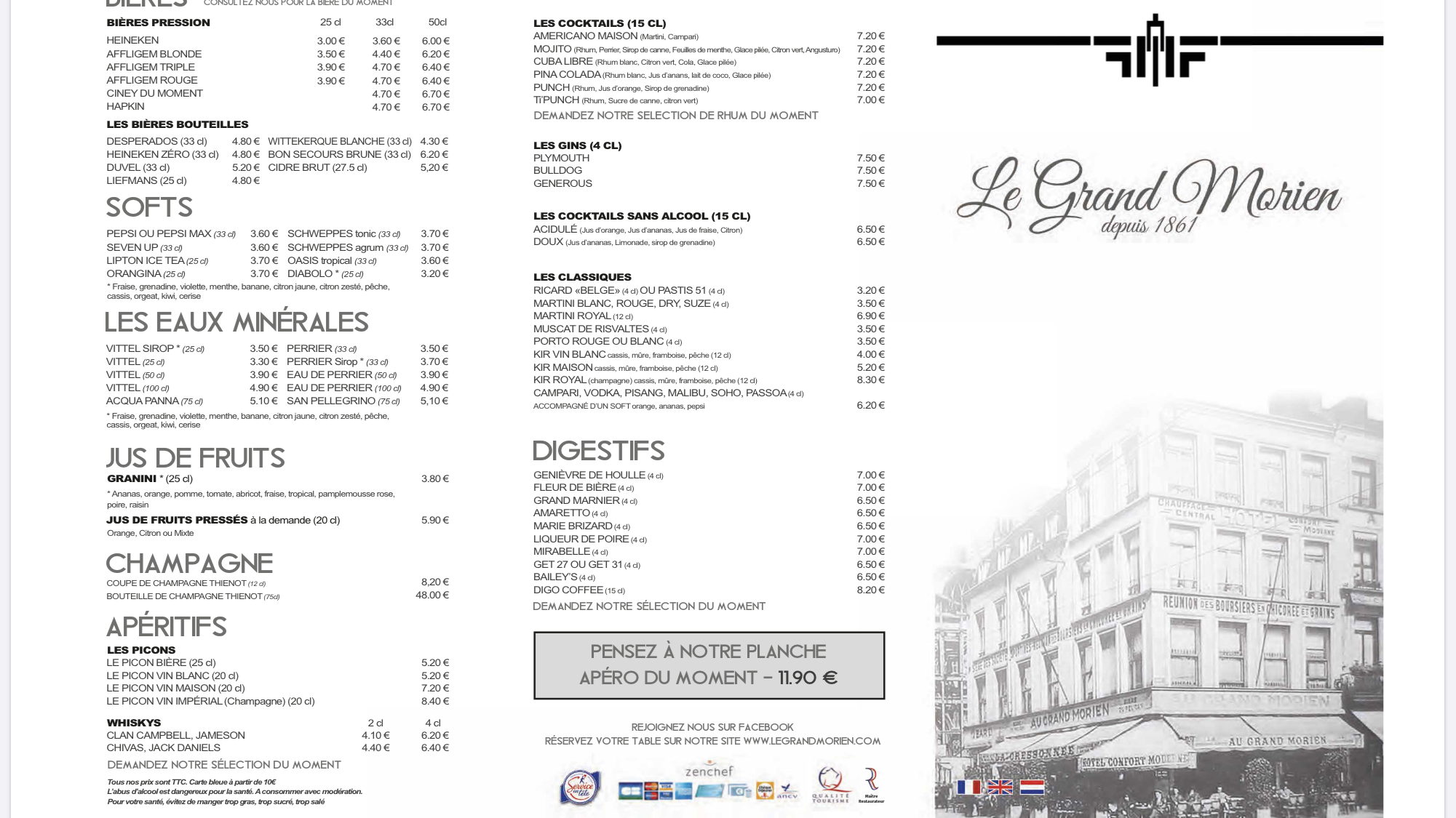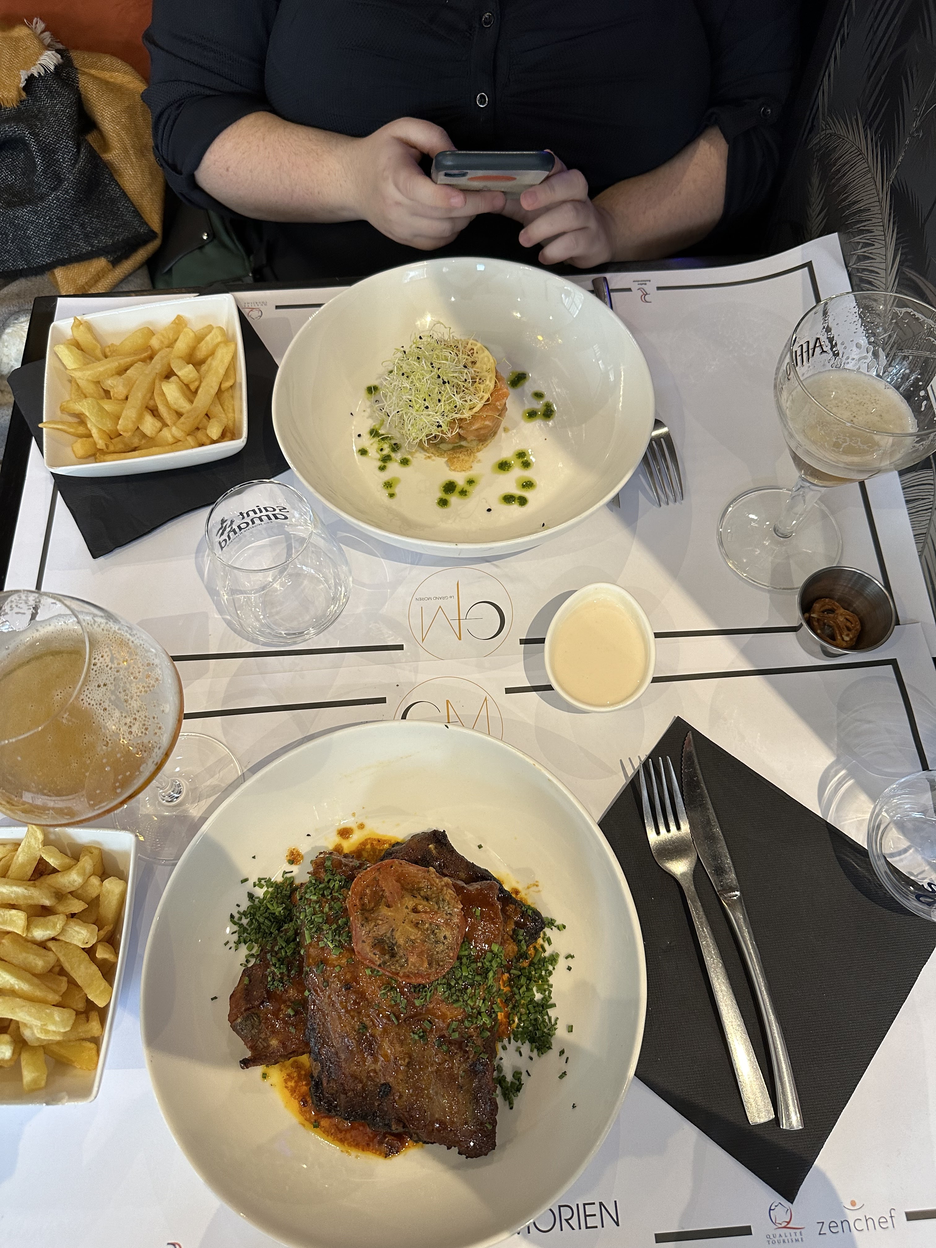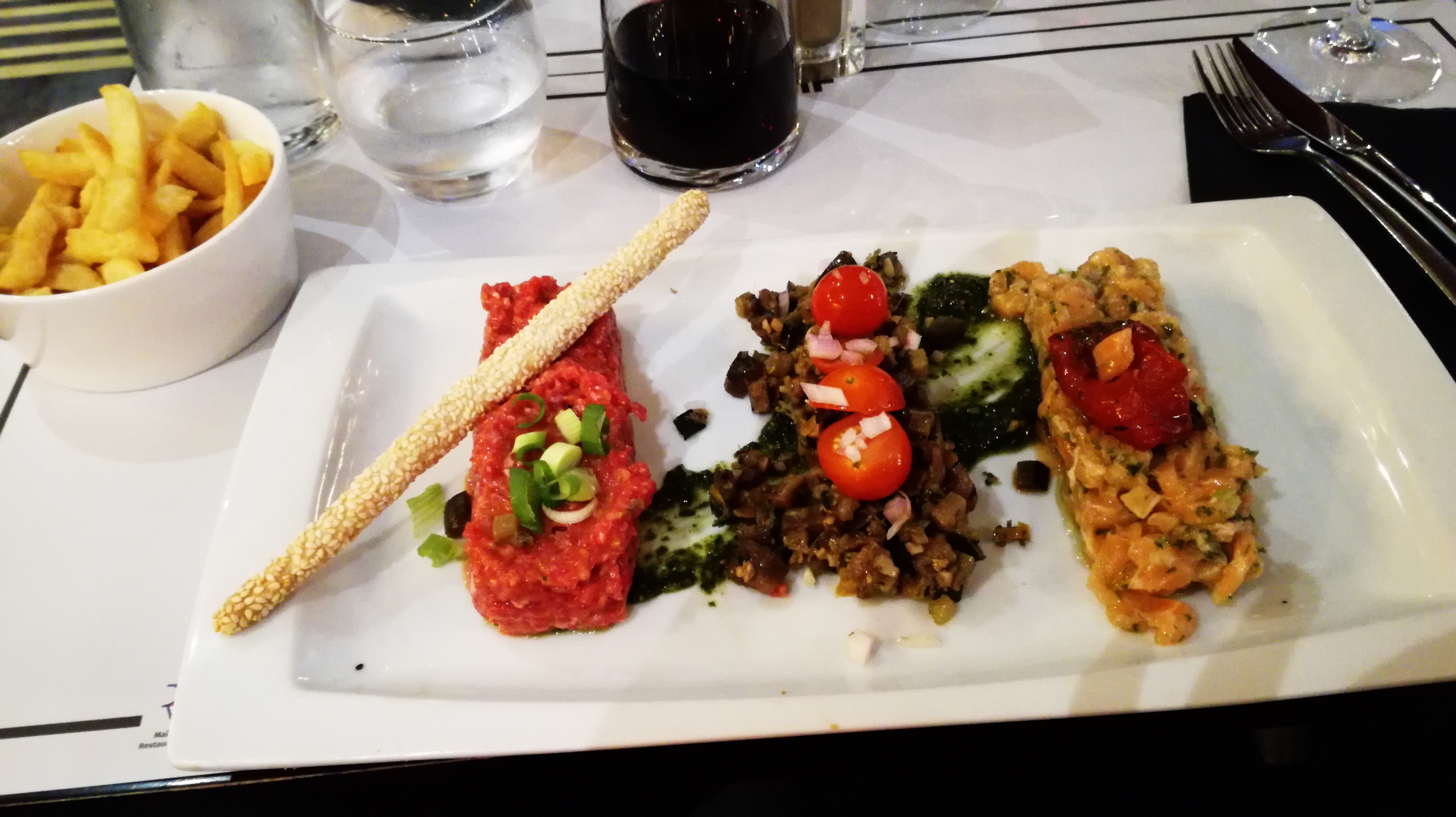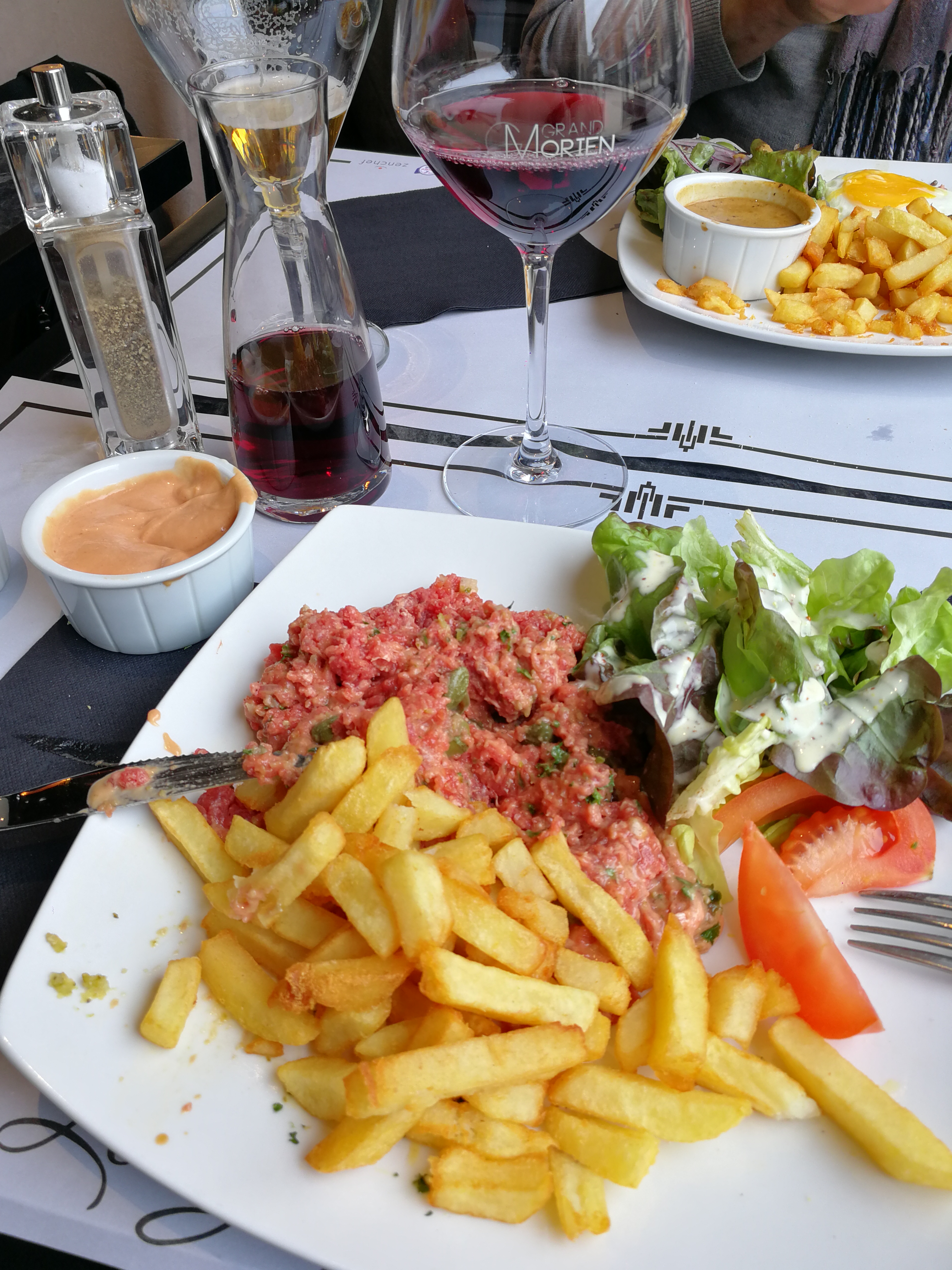 Nous avions un train à prendre et voulions nous restaurer juste avant de quitter Dunkerque. Nous sommes allés au restaurant « Le grand Morien » qui semble être une institution, une adresse incontournable et qui est vraiment très bien : décoration, serveurs habillés de façon traditionnelle brasserie, qualité dans l’assiette (tartare de saumon et l’assiette des 3 tartares, très bien préparés). Le tout avec un service impeccable et souriant de la part du serveur. Si on revient à Dunkerque, nous y reviendrons !