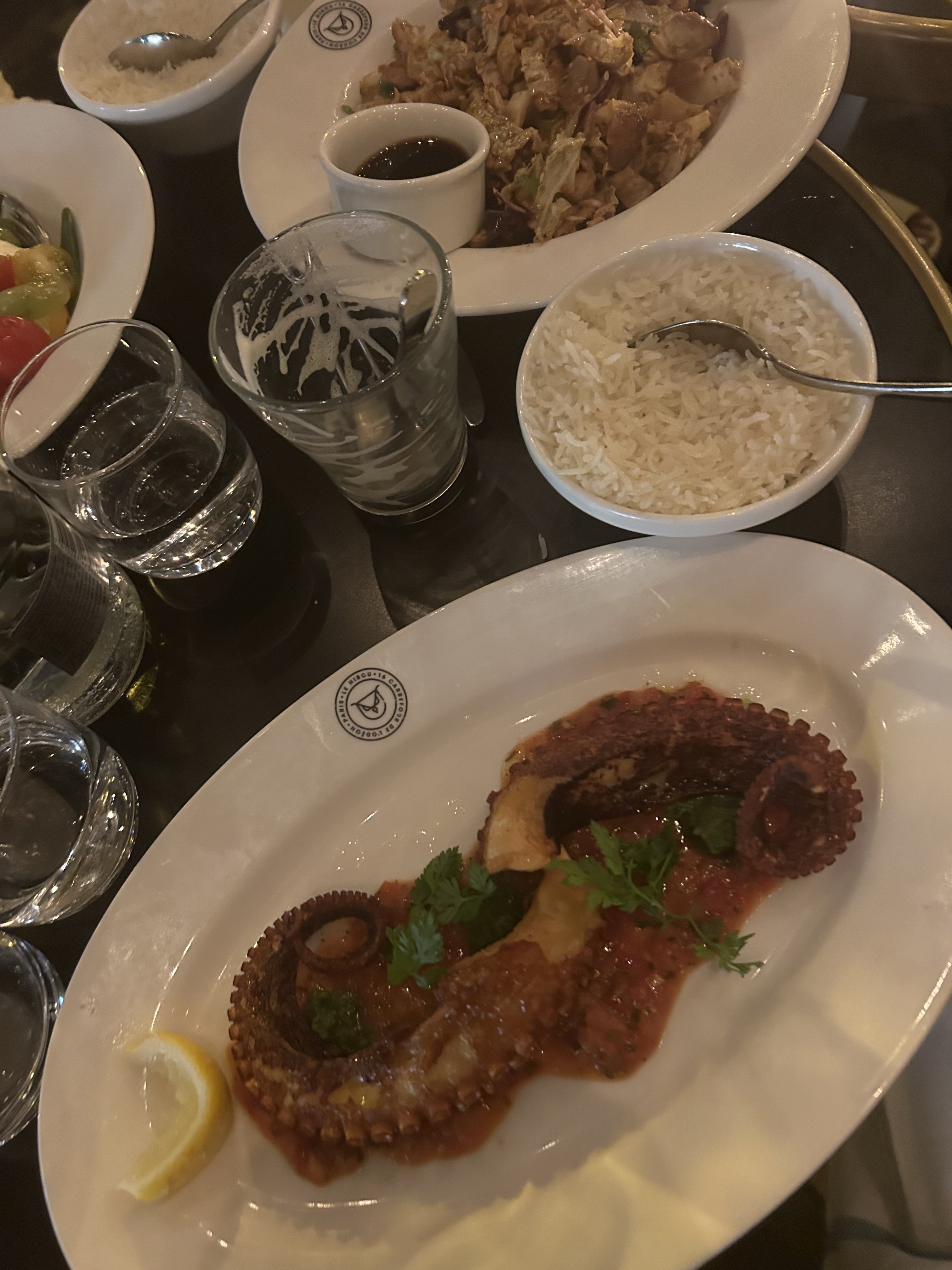 Tous les serveurs étaient très gentils et la nourriture était servie à temps malgré le fait qu'ils soient très occupés ! Ambiance agréable à l'extérieur donc la plupart des sièges étaient occupés. J'ai adoré le cocktail Maverick et le poulpe grillé est un MUST😍 Tous les serveurs parlaient anglais aussi !