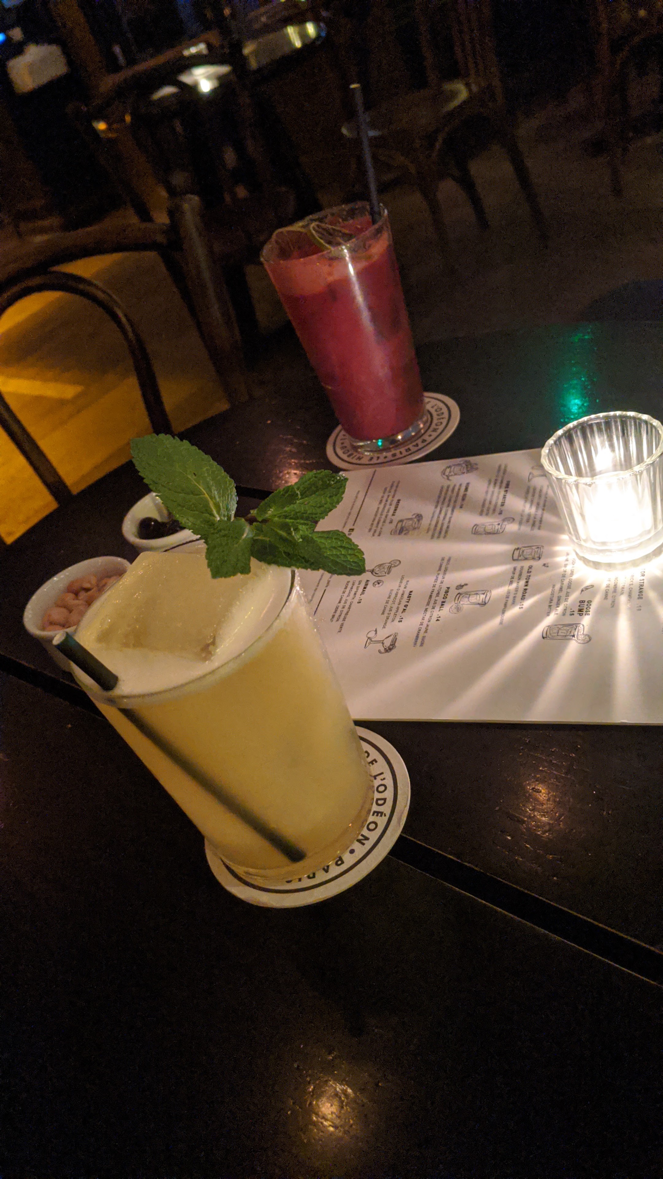 Prix parisiens (15 euros le cocktail avec beaucoup de glace) mais cocktails personnalisés très cools et mention spéciale à Clément et Margaux qui ont été des petites crèmes toute la soirée 💜💜