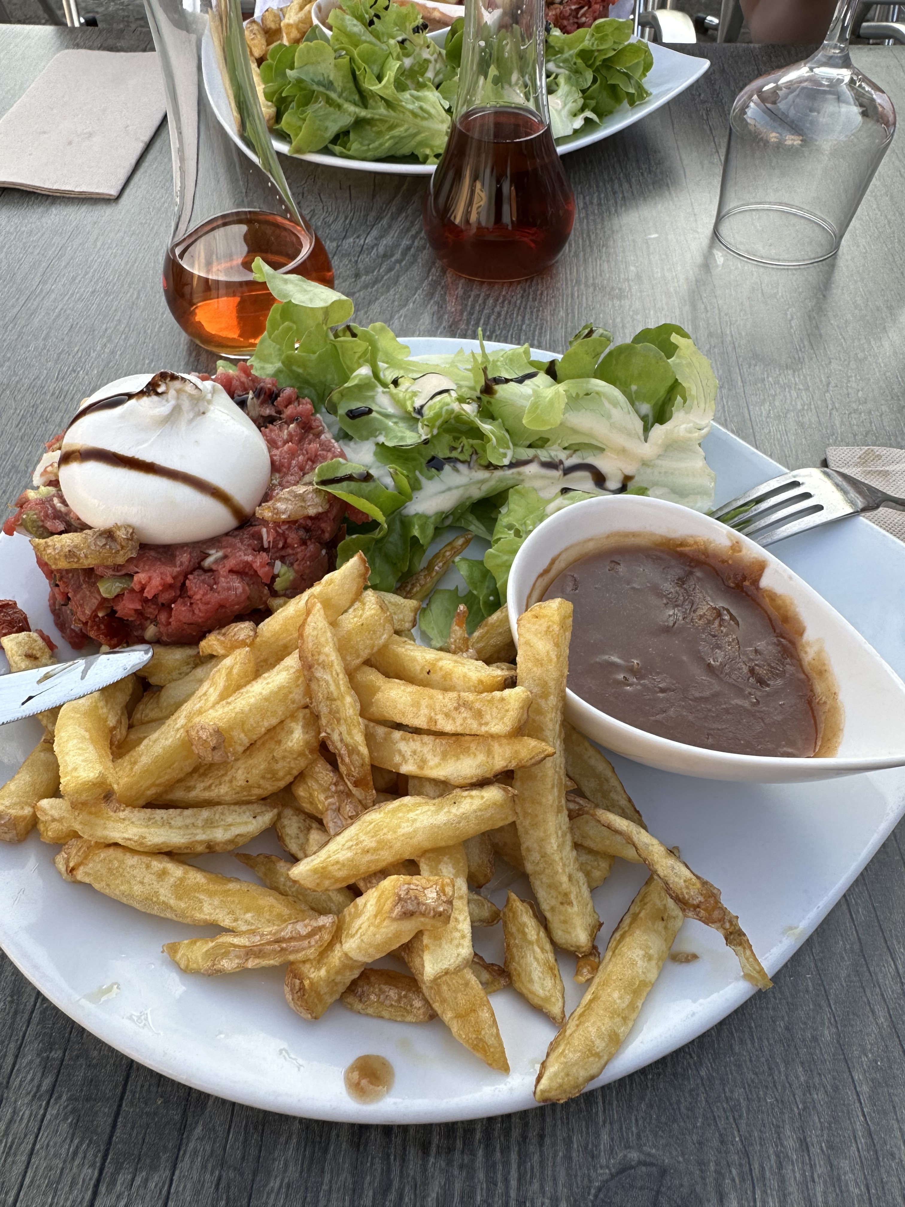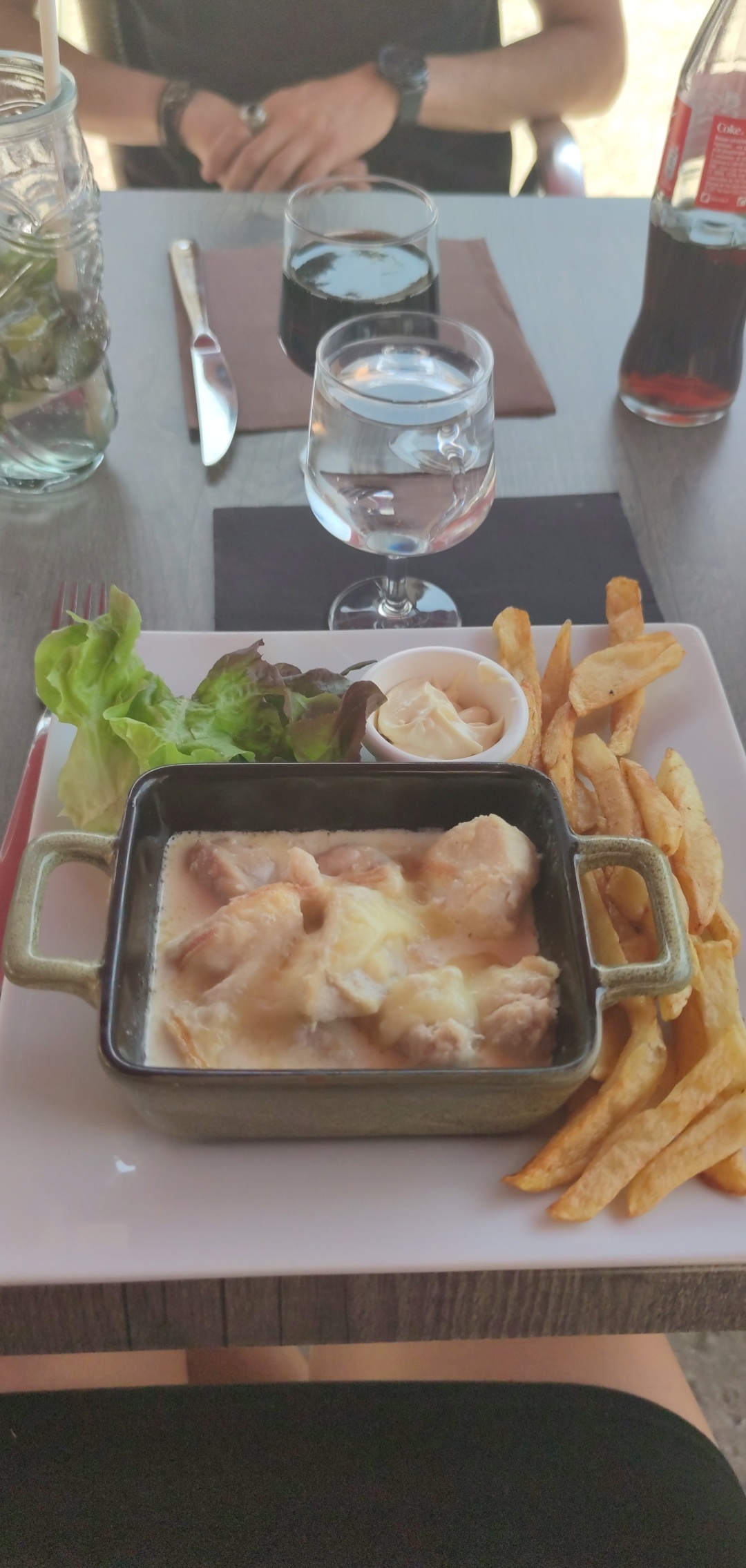 Nous y sommes allez début aout, pendant nos vacances, ce resto est très bien noté, donc on s'attendait a de bon plats. Mais quand on vois le cuisinier sortir de la cuisine pour installer les gens à table et aussi les servir, on se demande si embaucher une personne supplémentaire pendant la période des vacances ne serait pas un plus, pour maintenir la qualité de travail du cuisinier, qui ne peut pas être partout, cela pénalise ses plats. Les plats proposés semblaient bons (petite carte proposant environs 5 plats), mais ce jour là les pates étaient tiède limite froides, les légumes ont du être coupé au couteau, ils étaient dur et peu cuit, et les frites un peu trop cuite. Le poisson était lui en revanche assez bien cuit, la viande un peu dure. Je ne déconseille pas ce lieu, je suis sure que ce n'était peut être pas un bon jour pour y manger et nous avons été dans les premiers servis sur ce plat, donc je suppose que les aliments étaient surement mieux cuits pour les tablées suivantes. Nous n'avons pas pris de dessert sur place ayant été déçu des plats et nous sommes allez ailleurs pour le dessert.