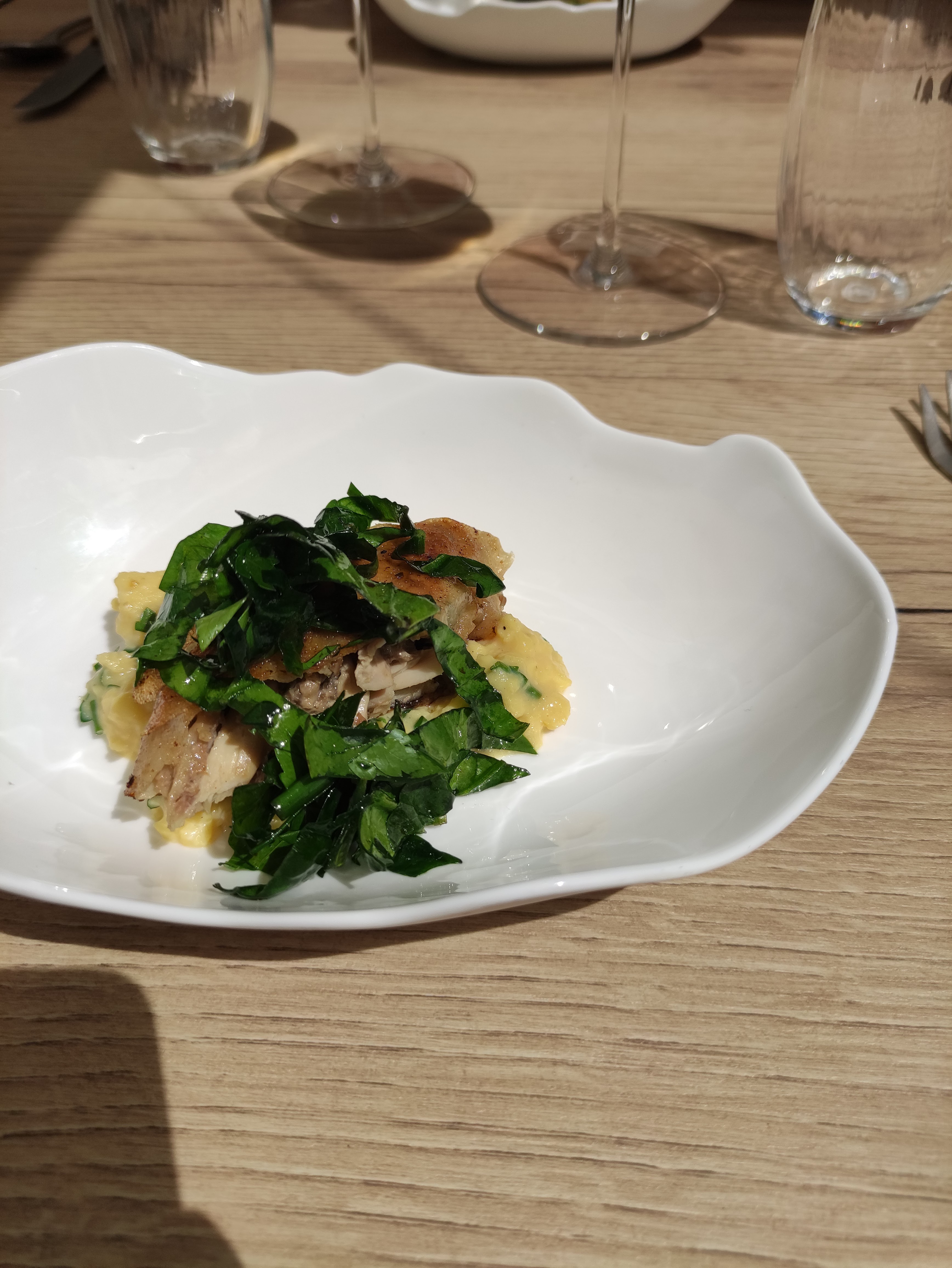 Tout était parfait. Un cadre très agréable, un accueil convivial, des plats surprenants et délicieux. Un bémol sur les couverts dignes d'une revue d'ustensiles de cuisine design mais absolument pas pratiques notamment la cuillère à soupe. A recommander