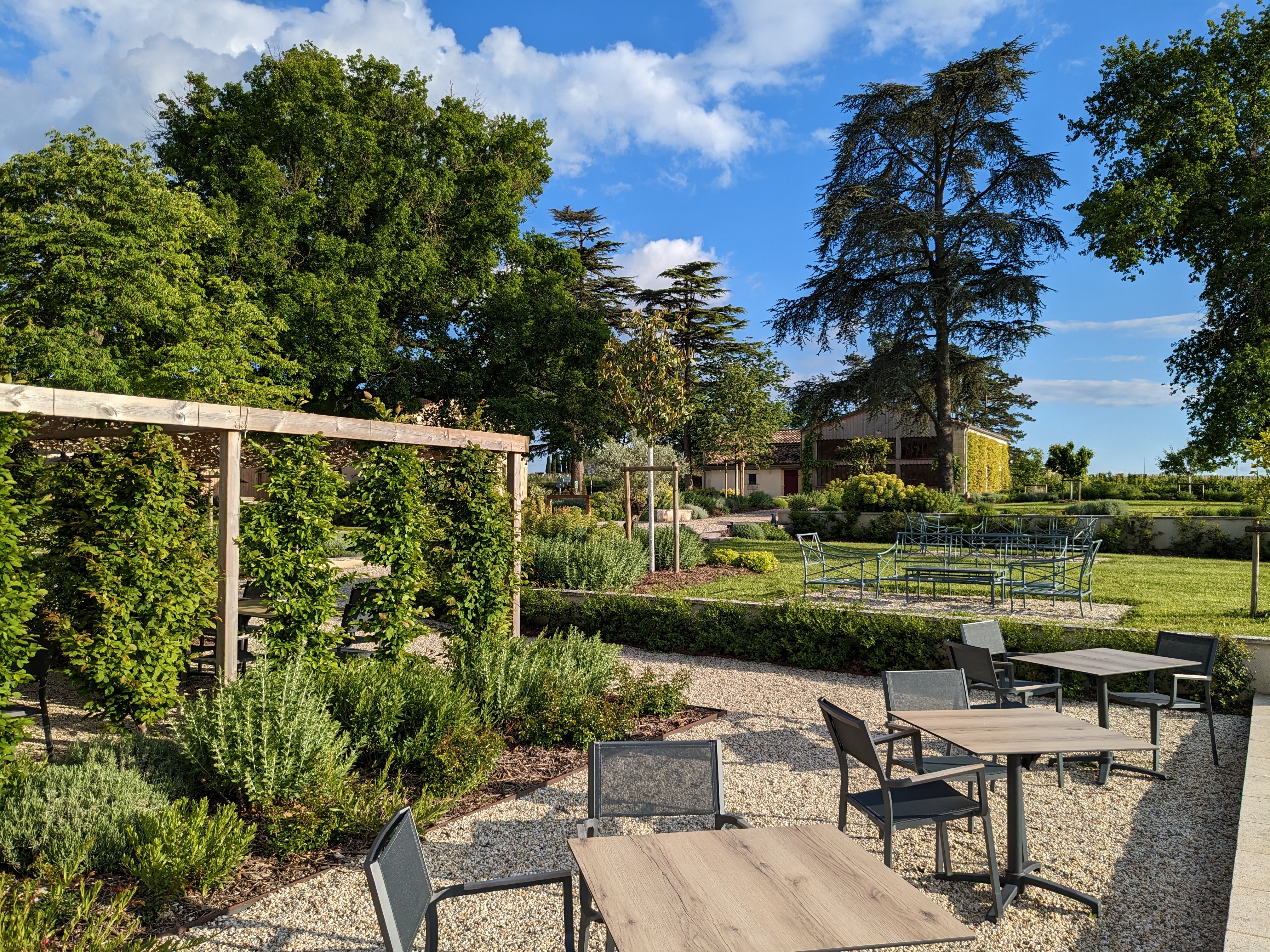 Sublime cadre . Entouré d un jardin magnifique et vue sur les vignes qui l entourent. Restaurant avec une équipe jeune et dynamique à l écoute du client . Cuisine formidable et savoureuse.