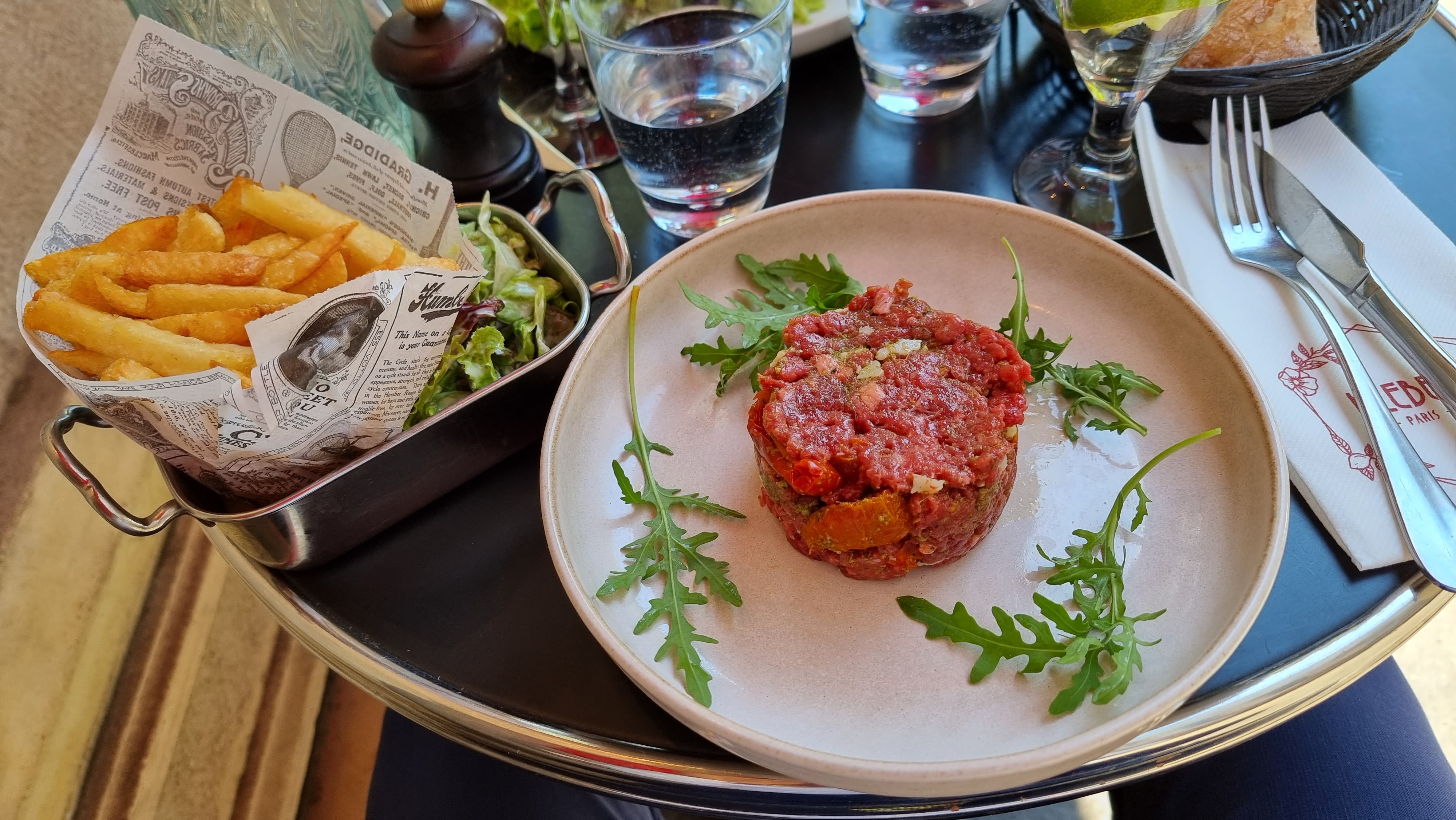 Endroit bien placé mais franchement, je ne trouve la nourriture déceptive d'autant plus si on la ramène au prix. J'ai pris un steak tartare. Il m'est arrivé une boule de steak avec juste de la ketchup (en guise de sauce) et quelques câpres. .. Devant moi: les traditionnels pots de sauces: ketchup, worcester sauce, Tabasco.. J'ai demandé de la moutarde, histoire de donner un peut goût. .et aussi quelques oignons hachés que j'ai obtenus. .ce fut un peu meilleur qu'au début.. mais sincèrement c'est le degré 0 de la cuisine.. (manque vraiment de liant!!, de l'oeuf par exemple !). Au debut j'ai même cru que cela était peut être dû à l'absence du chef en cuisine (je suis arrivée tard), mais non, la serveuse m'a affirmé que c'était toujours comme ça.. Pour finir sur quand meme une note positive: Les frites quant à elles sont bonnes.