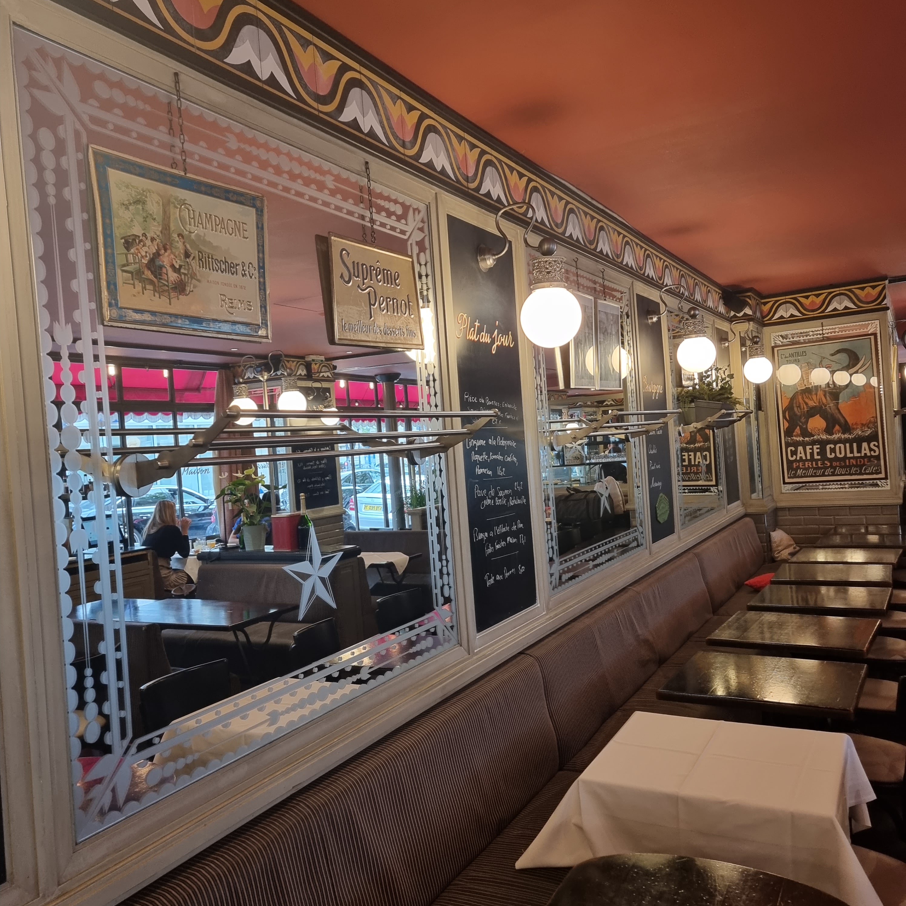 Ils sont très bien placés, belle terrasse ouverte hiver comme été. J'ai beaucoup apprécié leur decoration qui donne le signal d'une vraie brasserie parisienne. Le service est rapide. Par contre, ils sont chers nous sommes dans les beaux quartiers c'est vrai mais il y a un peu d'abus . J'ai pas demandé un sourire à la serveuse c'est visiblement pas au menu. Mais elle est efficace donc...